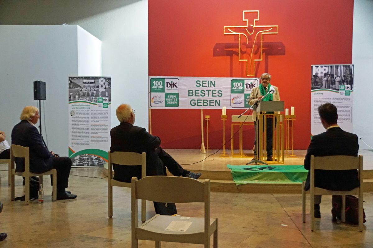 Würzburg (POW) Mit einem kleinen Festakt in der Hauskapelle des Kilianeums-Haus der Jugend in Würzburg hat der DJK-Diözesanverband Würzburg am Mittwoch, 16. September, sein 100. Gründungsjubiläum gefeiert. Die ursprünglich geplanten bunten Feste in Duisburg, Würzburg und Bamberg fielen dem Coronavirus zum Opfer, teilt der Verband mit.