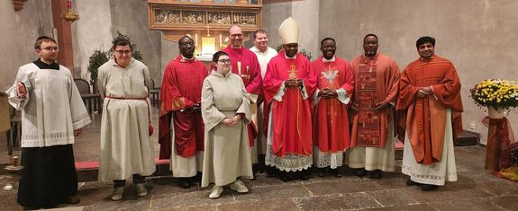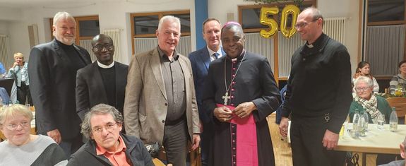 Dekan Kurt Wolf, Pfarrer Dr. Blaise Okpanachi und Gastbischof Antony Adaji von der Missionsgesellschaft des heiligen Paulus aus Nigeria, Bischof von Idah, zelebrierten gemeinsam den Dankgottesdienst, an dem zahlreiche Gläubige und Wegbegleiter teilnahmen. Im Mittelpunkt des gesamten Abends standen Dankbarkeit für und Rückblick auf fünf Jahrzehnte durch das Dekanatsbüro unterstütztes kirchliches Wirken in der Region. Haßfurts Bürgermeister Günther Werner sowie Michael Ziegler, stellvertretender Landrat des Landkreises Haßberge, überbrachten in ihren Grußworten herzliche Glückwünsche und würdigten die wertvolle Arbeit des Dekanats sowie aller haupt- und ehrenamtlich Engagierten. Mirjam Wolf, Leiterin des Dekanatsbüros, zeigte mit einer Präsentation die Entwicklung der vergangenen fünf Jahrzehnte auf. In Gesprächen mit Zeitzeugen und langjährigen Weggefährten wurden zudem prägende Momente und Meilensteine des kirchlichen Lebens noch einmal anschaulich in Erinnerung gerufen. Für die musikalische Begleitung des Empfangs im Pfarrsaal sorgten Ludwig Wolf und Sandra Lohs.