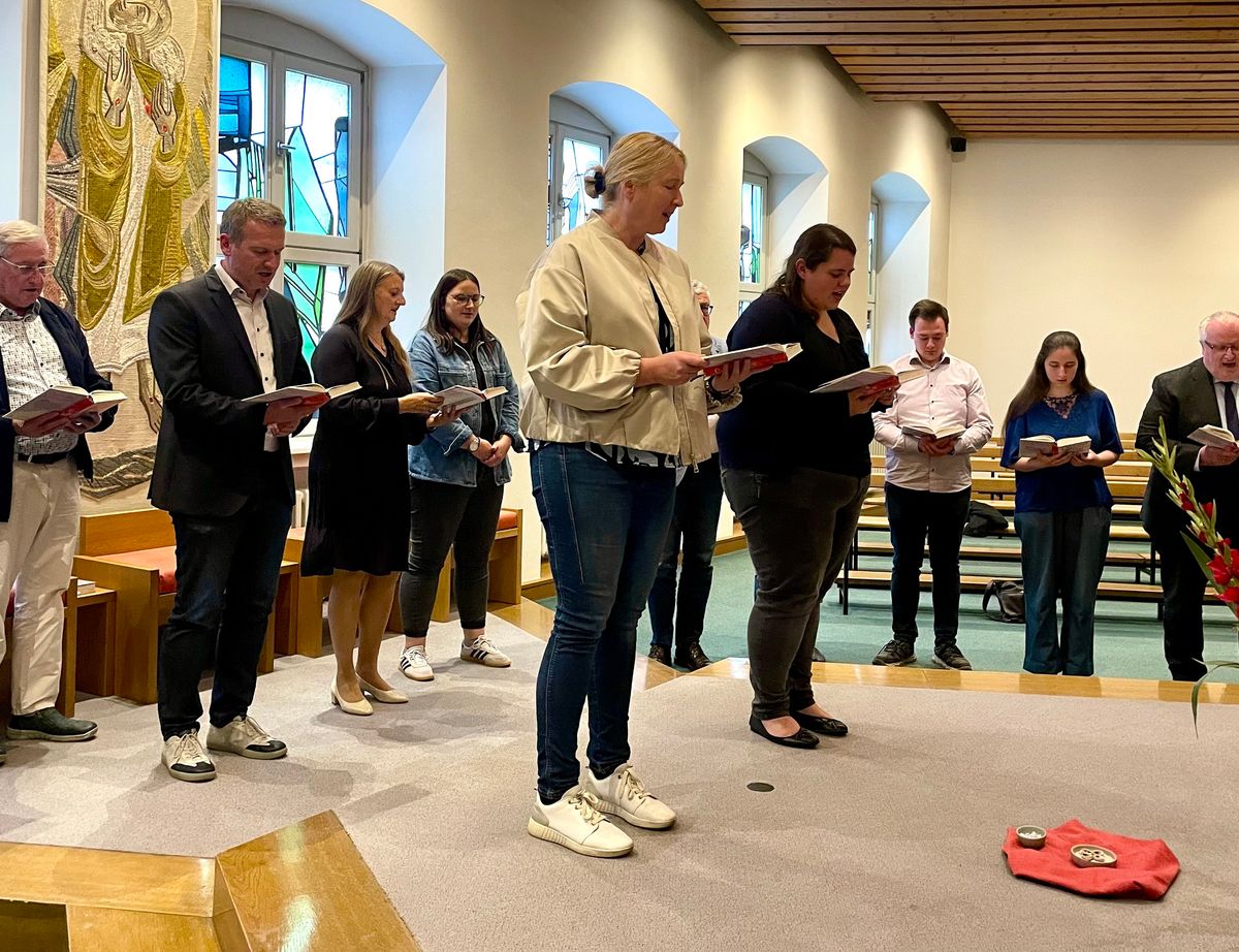 Johanna Och, Leiterin der Abteilung Personalgewinnung und Ausbildung, eröffnete den Gottesdienst und verband die biblische Geschichte von Bartimäus mit dem heutigen Anlass: „Mut ist nicht das Gegenteil von Angst. Mut ist Aufstehen trotz Angst, Mut ist der erste Schritt, den wir wagen.“ Sie betonte das Vertrauen in Gott und den eigenen Weg – passend für den Wechsel von Schoknecht und Göbel in ihre jeweiligen neuen Aufgabenfelder.