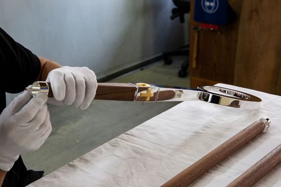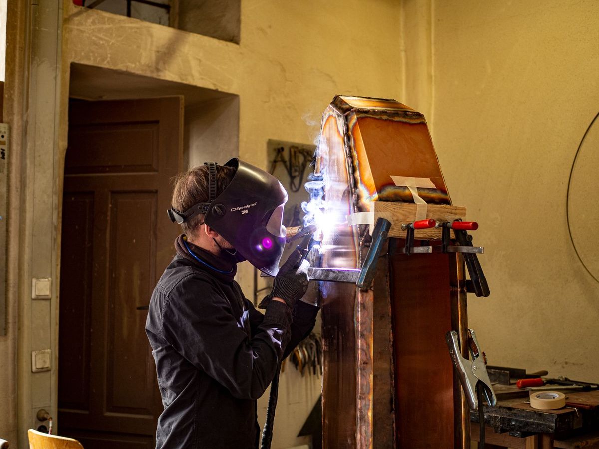 Sie besteht aus den Teilbetrieben Gold- und Silberschmiede, Buchbinderei und Druckerei sowie dem Kunstatelier. Die Kompetenzen der Klosterschmiede und Metallwerkstatt, Schreinerei, Spenglerei und Elektrowerkstatt werden einbezogen. „Mit der Klostermanufaktur wollen wir diesen Zusammenschluss der Betriebe nun institutionalisieren und mehr nach außen kommunizieren, was wir alles leisten können“, erklärt Geschäftsführer Pater Christoph Gerhard. Der Vorteil liege in den direkten Kontakten und kurzen Arbeitswegen. Ein erstes Produkt ist ein „Upcycling“-Holzbalken aus der Landwirtschaft des Klosters. Er kann mit Werken aus der Schmiede dekoriert werden und ist vor Ort über die Klosterbuchhandlung „Buch und Kunst im Klosterhof“ erhältlich. Derzeit arbeitet die Manufaktur an zwei Projekten für Kircheneinrichtungen, für die jeweils Tabernakel, Altar, Taufstele und Kanzel gefertigt werden. Bereits in der Vergangenheit arbeiteten die Betriebe zusammen. Neben internen Projekten wie der Umgestaltung des Torhausplatzes wurden externe Aufträge wie der Umbau der alten Synagoge in Mainstockheim realisiert. Dazu kommen zahlreiche Bischofsstäbe und Insignien, bei denen neben Gold- und Metallschmiedearbeiten auch Holz aus der Schreinerei geliefert wurde und die Buchbinderei ein passendes Etui fertigte. Künftig werden durch den Zusammenschluss weitere Projekte und Anfertigungen nach individuellen Kundenwünschen möglich sein. Das Portfolio reicht von Möbeln für den Innen- und Außenbereich aus Metall, Stahl oder Holz über Skulpturen, Brunnen, Lampen, Feuerschalen bis hin zu Kircheneinrichtungen oder Grabkreuzen. Mehr Informationen im Internet (https://www.abtei-muensterschwarzach.de/arbeiten/klostermanufaktur).