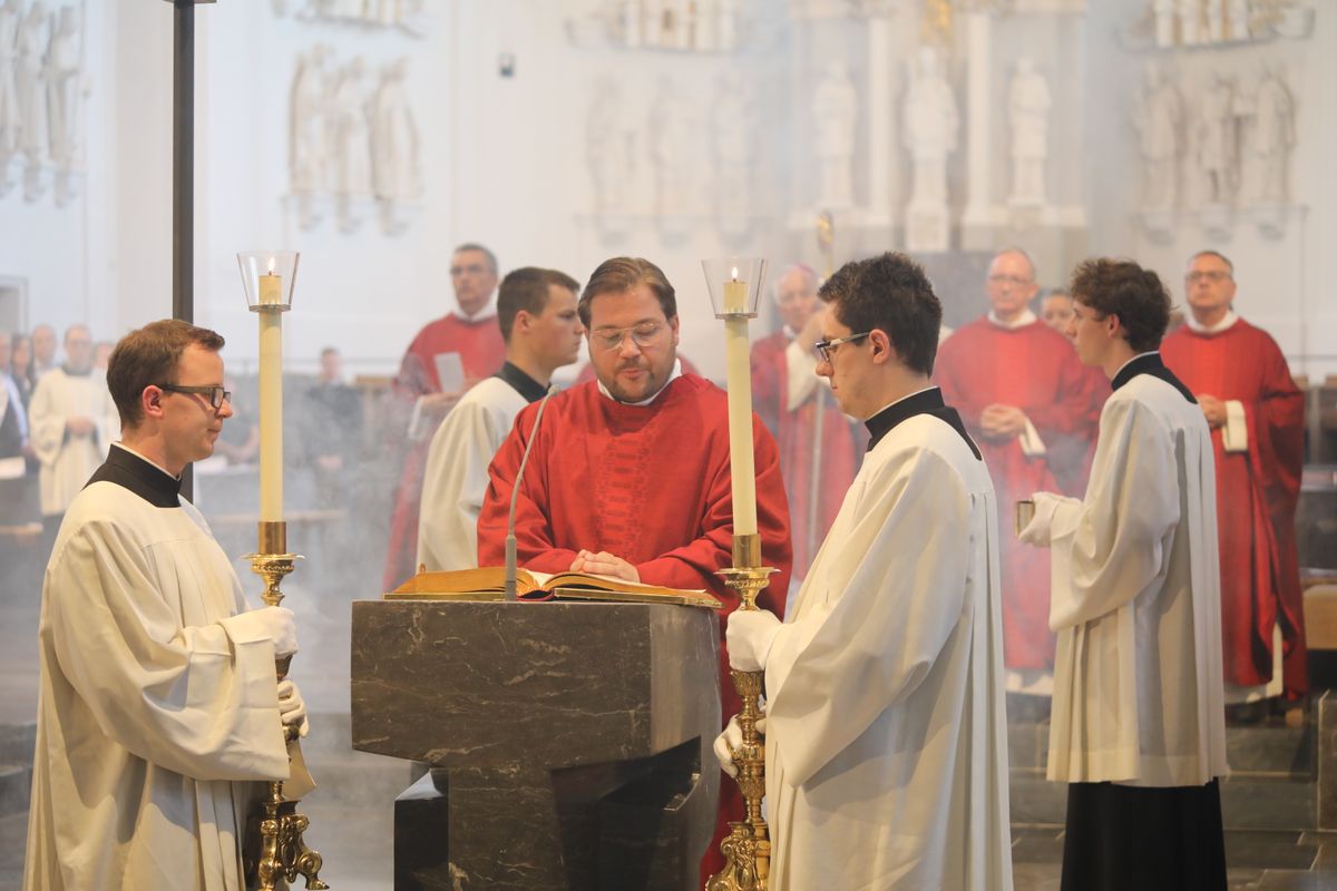 In seiner Predigt erinnerte der Weihbischof an die in seinen Augen treffendste Darstellung der Frankenapostel auf dem Kiliansschrein im Neumünster. Dort seien Kilian, Kolonat und Totnan in einfachen Kutten und zu kurz geratenen Gewändern, barhäuptig und barfüßig abgebildet. „In den Händen halten sie, was sie haben und was sie sind: Kilian trägt die Heilige Schrift, das Wort Gottes. Kolonat reicht Brot und Wein, vielleicht auch nur Brot und Wasser. Totnan hält eine Kerze in der Hand, deren Licht er mit seiner Rechten beschützt.“