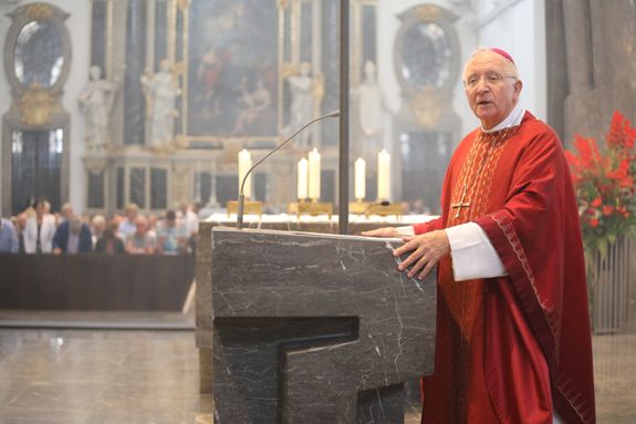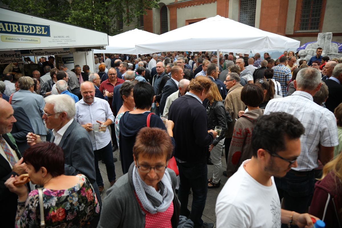 Weihbischof Ulrich Boom feiert mit rund 1200 Personen am Tag der Räte und Politiker Gottesdienst. Eine Begegnung auf dem Kiliansplatz schloss sich an.