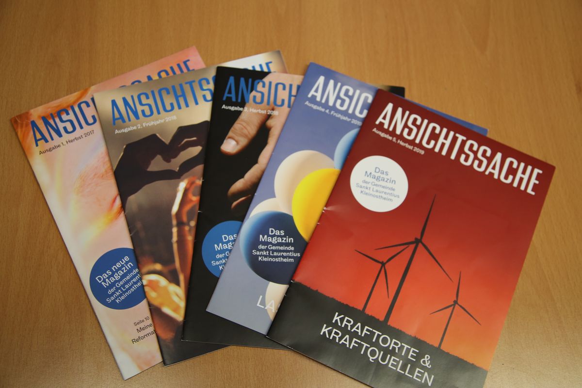 Kleinostheim (POW) Pfarrbriefe gibt es in vielen Gemeinden. Oft mit der Gottesdienstordnung und einigen Berichten über Ereignisse in der Pfarrei. Die Pfarrei Sankt Laurentius in Kleinostheim geht seit Herbst 2017 einen neuen Weg. Sie erstellt ein thematisch orientiertes Pfarrmagazin. In einem Format zwischen A4 und A5, bunt und hochwertig produziert. Nicht ohne Grund. „Das Magazin soll sich vom gewöhnlichen Pfarrbrief abheben, auffallen und Menschen neugierig machen“, erklärt das Team von „Ansichtssache“. Daher auch der Name: Er soll viele verschiedene Meinungen widerspiegeln. Die Themenvielfalt reicht von Dankbarkeit über Zärtlichkeit bis zu Kraftorten und -quellen. Also Themen, die alle Menschen kennen und betreffen. „Es sollte kein biederer Pfarrbrief sein, sondern ein ansprechendes neues Format haben, das Interesse weckt für pastorale Themen und Anliegen.“