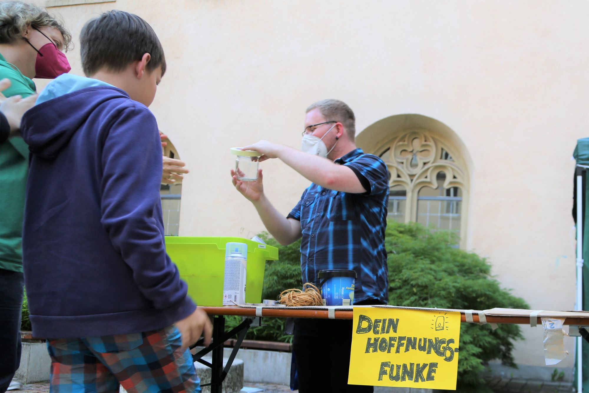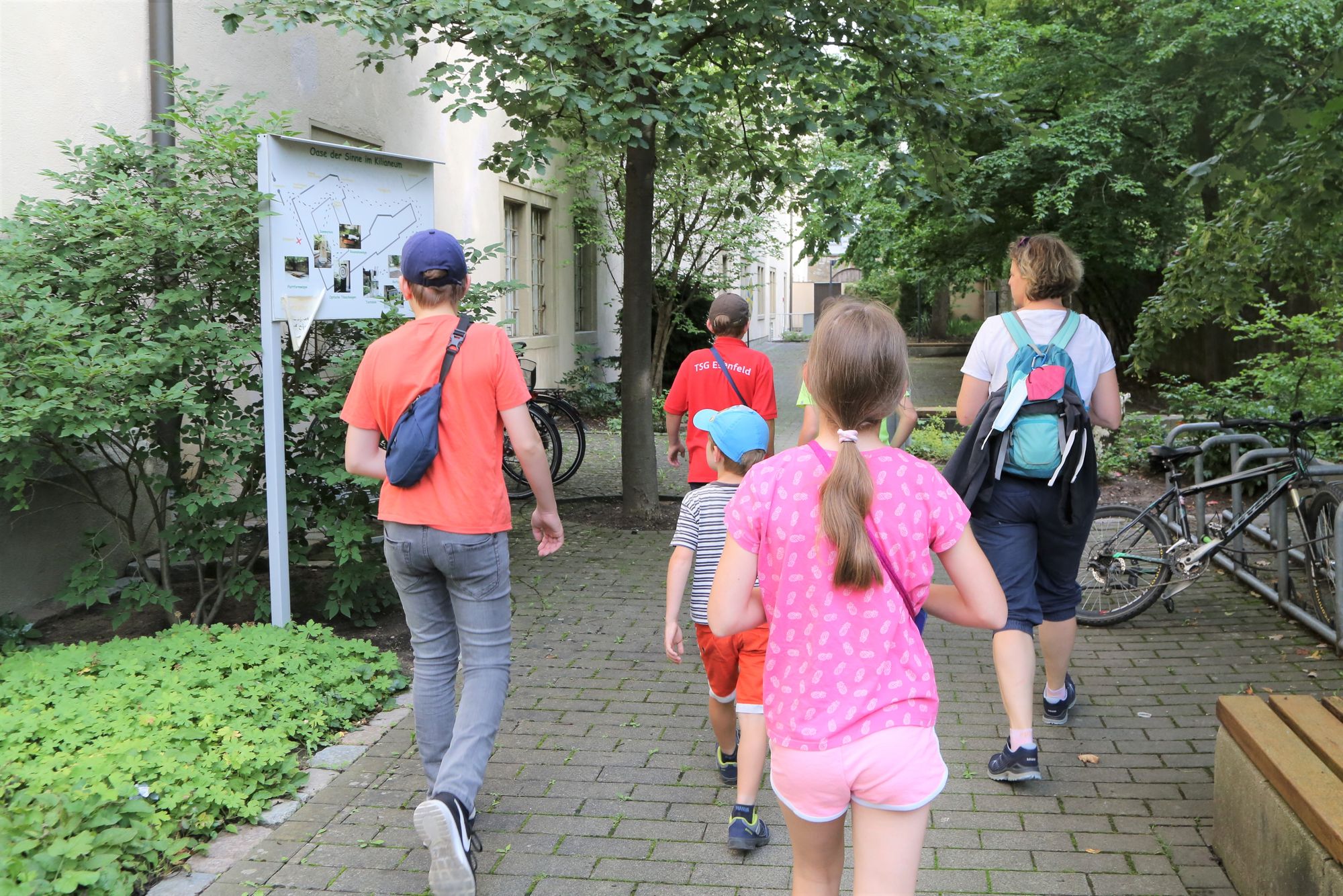 Würzburg (POW) Joggend und rätselnd sind Kinder und Jugendliche auf den Spuren des heiligen Kilian am Samstagnachmittag, 10. Juli, unterwegs gewesen. Der Kiliani-Tag der Jugend fand dieses Jahr coronabedingt dezentral statt. Insgesamt standen sechs Veranstaltungen der Kirchlichen Jugendarbeit (kja) zur Auswahl. Die Regionalstelle Würzburg ließ den Teilnehmerinnen und Teilnehmern die Wahl: „Actionbound“ oder „Sightjogging“. Abgerundet wurden die Aktivitäten mit einem Gottesdienst in der Jugendkirche und im Innenhof des Kilianeums-Haus der Jugend. Rund zwei Dutzend Jugendliche feierten diesen mit. Jugendseelsorgerin Birgit Hohm organisierte die Aktivitäten in Würzburg und stand dem dezentralen Tag der Jugend zunächst skeptisch gegenüber: „Ich konnte mir das zunächst gar nicht vorstellen, aber durch den Austausch mit den Kollegen und Kolleginnen und dem Gebet von Diözesanjugendseelsorger Stephan Schwab, das an allen Orten gebetet wird, stehen wir doch in Verbindung.“