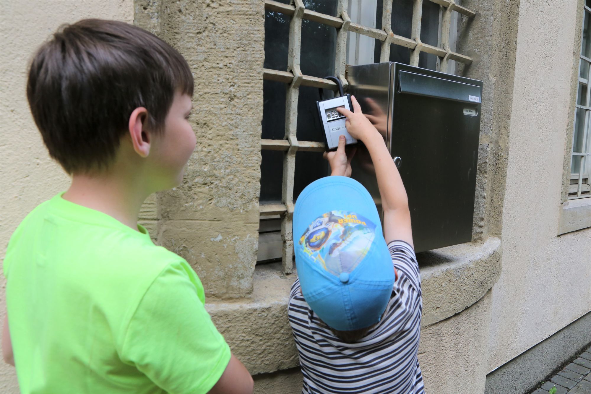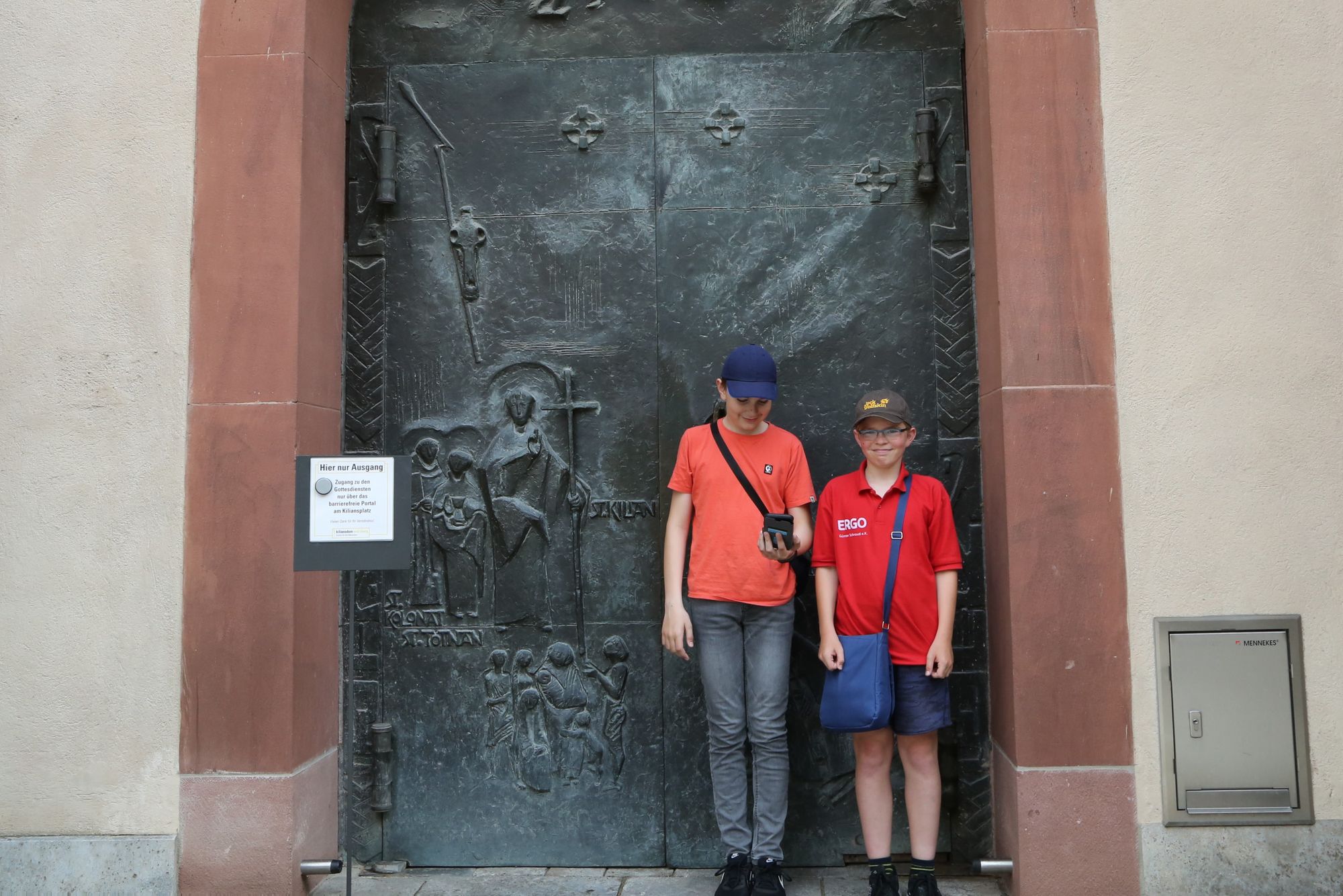 An der vierten Station lernten die Fünf den ersten Bischof des Bistums Würzburg kennen: Bischof Burkard. Da die Zeit bis zum Gottesdienst drängte, erfüllten die Kinder und Jugendlichen schnell alle Aufgaben und eilten zur nächsten und letzten Station. Hier bot die App an, das Kilianslied anzuhören. „Das kennen wir doch schon“, war die Meinung der Gruppe dazu. Alle stimmten das Lied an und machten sich auf den Weg zur Schatztruhe. Das Schönste an dem Nachmittag war aber nicht der Schatz, der am Ende gefunden wurde, sondern „dass wir alle zusammen den Tag verbracht haben“, urteilte Philipp. Die Fünf lösten die Rätsel und Aufgaben fast alle richtig – echte Kilianskenner eben.
