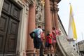 Bei der ersten Station angekommen, zeigte die App eine Videobotschaft der Kammerzofe Anna an. Anna hat im Herzoghaus gearbeitet. Sie echauffierte sich in fränkischem Dialekt darüber, dass der heilige Kilian die Ehe der Herzogin für ungültig hielt. Nach dem Video folgte ein Quiz mit Fragen wie zum Beispiel: „Wie hieß die Frau von Herzog Retzbach?“ Sobald die Fünf die zweite Station erreichten, zeigte das Handy die nächste Botschaft an: Padraig war Begleiter der Mönche Kilian, Kolonat und Totnan. Er erklärte mit melodischem irischen Akzent, warum die Frankenapostel damals von Irland weggegangen sind: „Sie haben sich als Ziel gesetzt, den christlichen Glauben in Würzburg voranzutreiben.“ Bei dem darauffolgenden Quiz lautete eine Frage: „Was hält der heilige Totnan auf der Marienbrücke in den Händen?“ Nach kurzer Absprache raste Fidelis zu besagter Statue, um nachzusehen – echte Teamplayer eben.