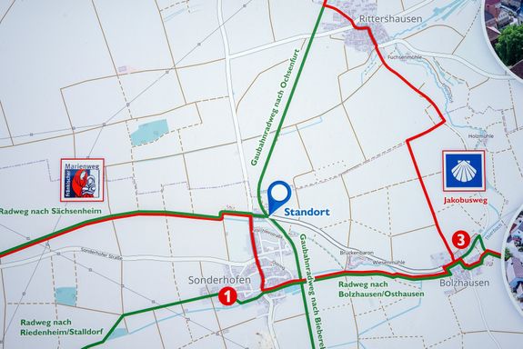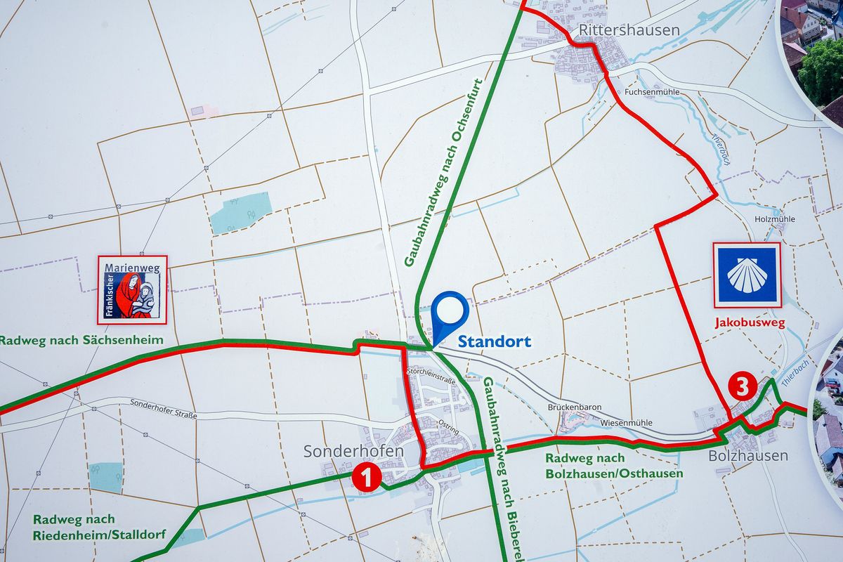 Am Startpunkt gibt es keine Parkplätze, deshalb das Auto am besten in Ochsenfurt abstellen. Alternativ: gleich mit dem Rad anreisen (Anschluss an den Main-Radweg bei Ochsenfurt und an den Taubertalradweg bei Bieberehren) oder per Regionalzug. Zurück geht es entweder auf dem gleichen Weg, dann mit leichtem Gefälle. Oder von Ende April bis Anfang Oktober mit dem Maintalsprinter (Fahrradmitnahme im Anhänger). Der Flyer ist in der Tourist-Information Ochsenfurt, in den Rathäusern der am Weg liegenden Gemeinden sowie als Download auf der KLB-Homepage (https://klb-wuerzburg.de/initiativen/radeln-fuer-demokratie) erhältlich.