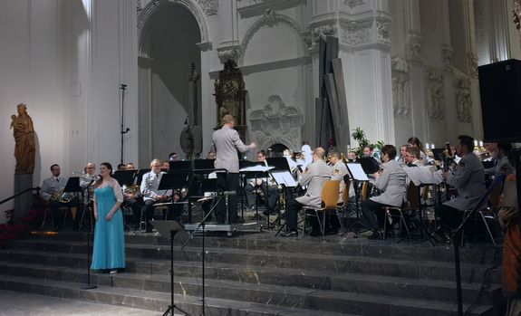 Mehr als 800 Zuhörer besuchten die Veranstaltung. Hauptfeldwebel Thomas Hümmer-Althöhn führte durch das Programm. Domdekan Günter Putz machte bei seiner Begrüßung die große Verbundenheit der Bevölkerung mit dem Käppele deutlich. Schirmherr Würzburgs Oberbürgermeister Christian Schuchardt betonte in seiner Ansprache die hohe Wertschätzung, die das Käppele als bauliches und spirituelles Kleinod in Stadt und Land genießt. Die Auswahl der Stücke, die zum Teil auch von allen Akteuren gemeinsam dargeboten wurden, hatte ein breites Spektrum von Klangfarben mit verschiedenen Bläserbesetzungen bis hin zum großen 50-köpfigen symphonischen Blasorchester, vom Barock bis zur Moderne, von zart bis gravitätisch. Das Publikum spendete frenetischen Applaus. „Es war uns eine Ehre, hier im Dom in großer Besetzung für einen guten Zweck spielen zu dürfen“, sagte Oberstleutnant Kahle. „Ich danke allen für die großartige Unterstützung der anstehenden Innenrenovierung“, erklärte Treutlein, der seit fünf Jahren Wallfahrtsrektor am Würzburger Käppele ist.