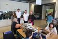 Bischof Dr. Franz Jung feierte mit in den Werkstätten der Lebenshilfe in Schmerlenbach einen Gottesdienst und ließ sich dann die verschiedenen Arbeitsbereiche zeigen. Zahlreiche Werkstattmitarbeiterinnen und -mitarbeiter nutzten die Gelegenheit für ein Foto mit dem Bischof.