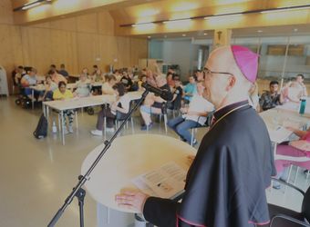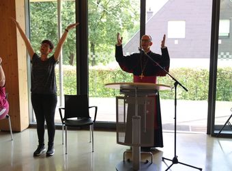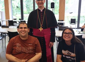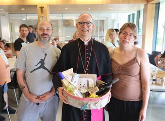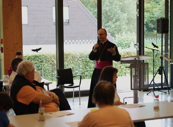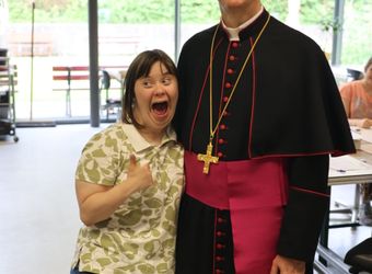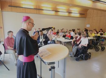 Bischof Dr. Franz Jung feiert in den Werkstätten der Lebenshilfe Schmerlenbach einen Kiliani-Gottesdienst mit Menschen mit Behinderung