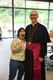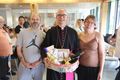 Nach dem Schlusssegen überreichten Tamara Losensky und Sven Fischer vom Werkstattbeirat Bischof Jung zum Dank für seinen Besuch einen Präsentkorb mit Produkten, die in den Werkstätten der Lebenshilfe hergestellt werden.