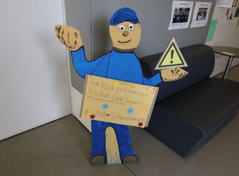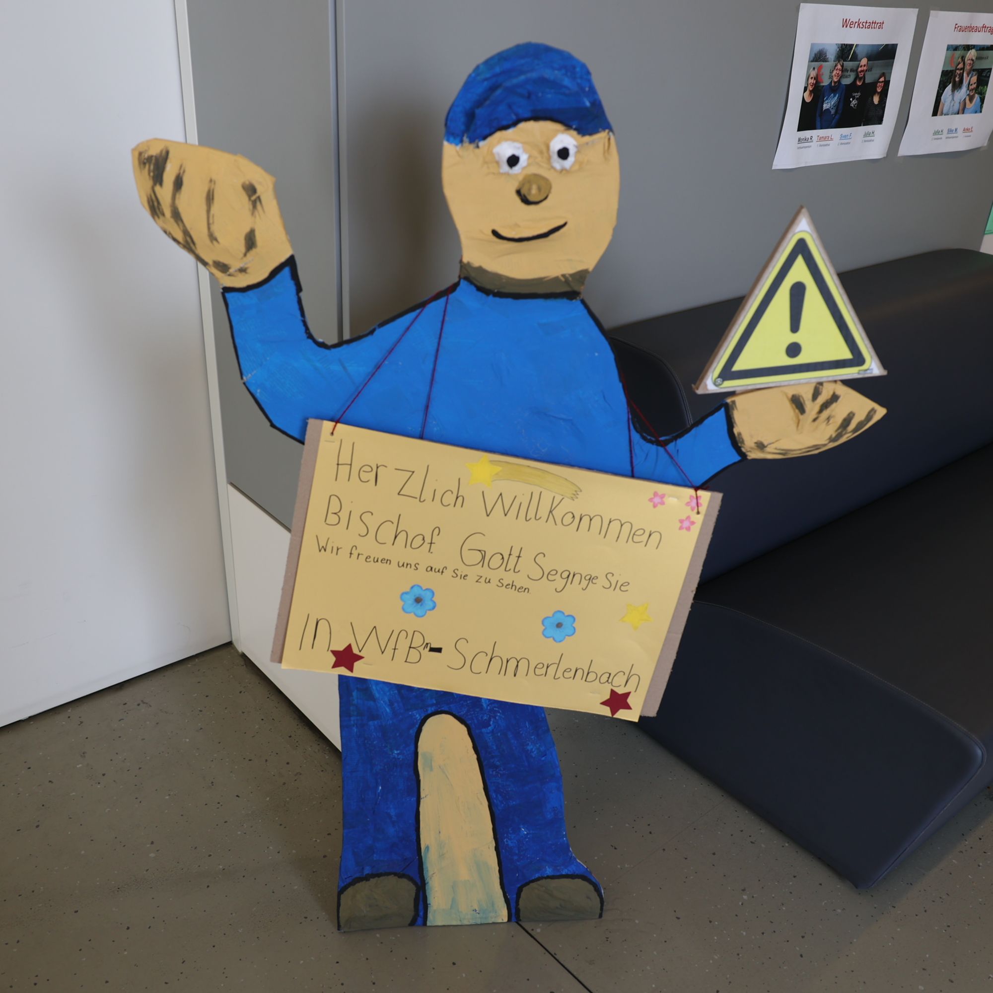 Dieses Schild erwartete den Bischof im Eingangsbereich.