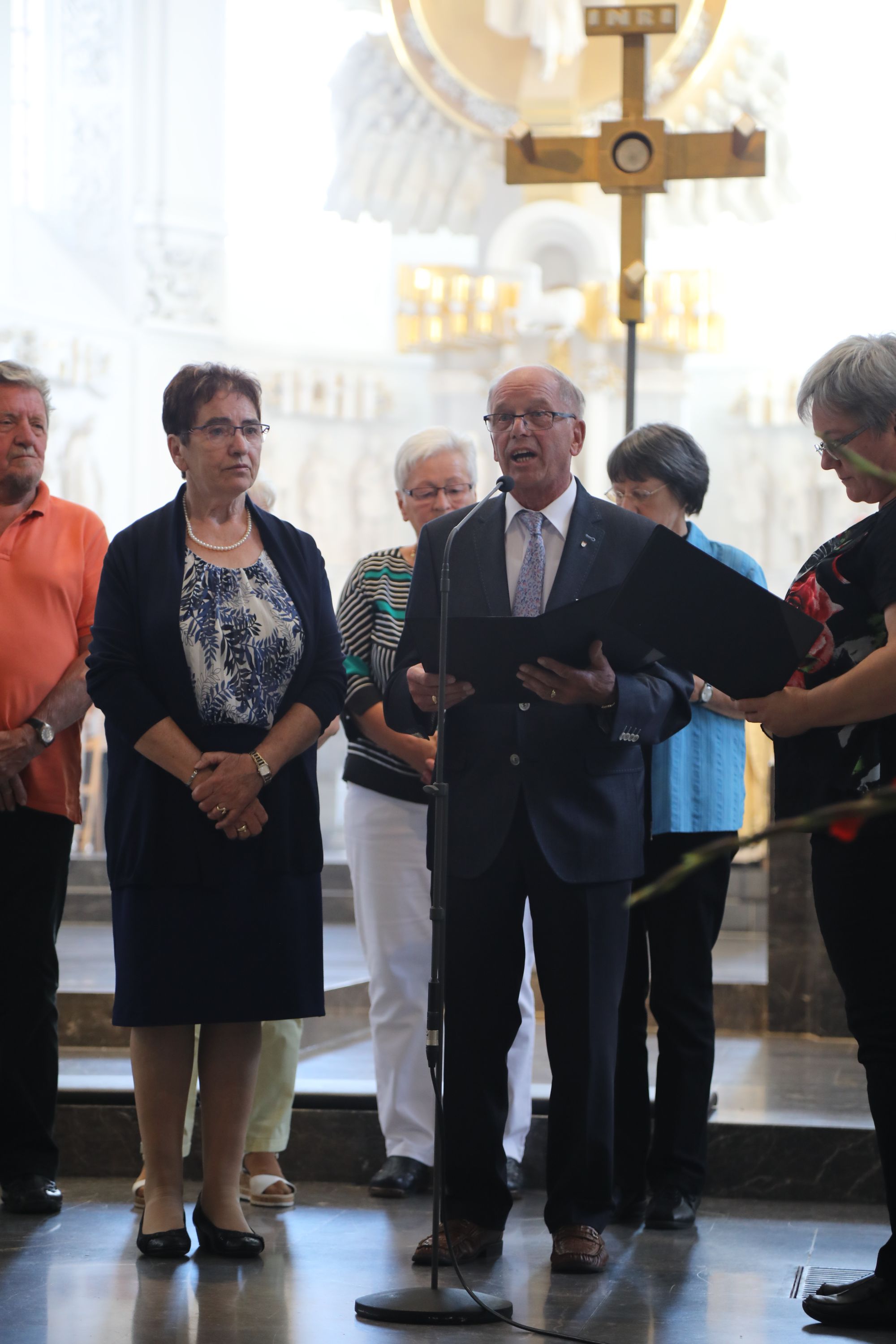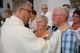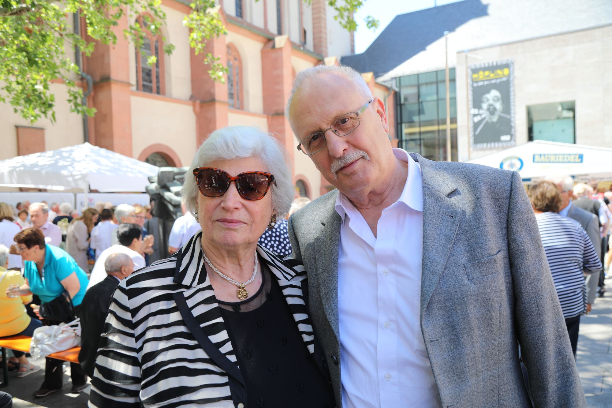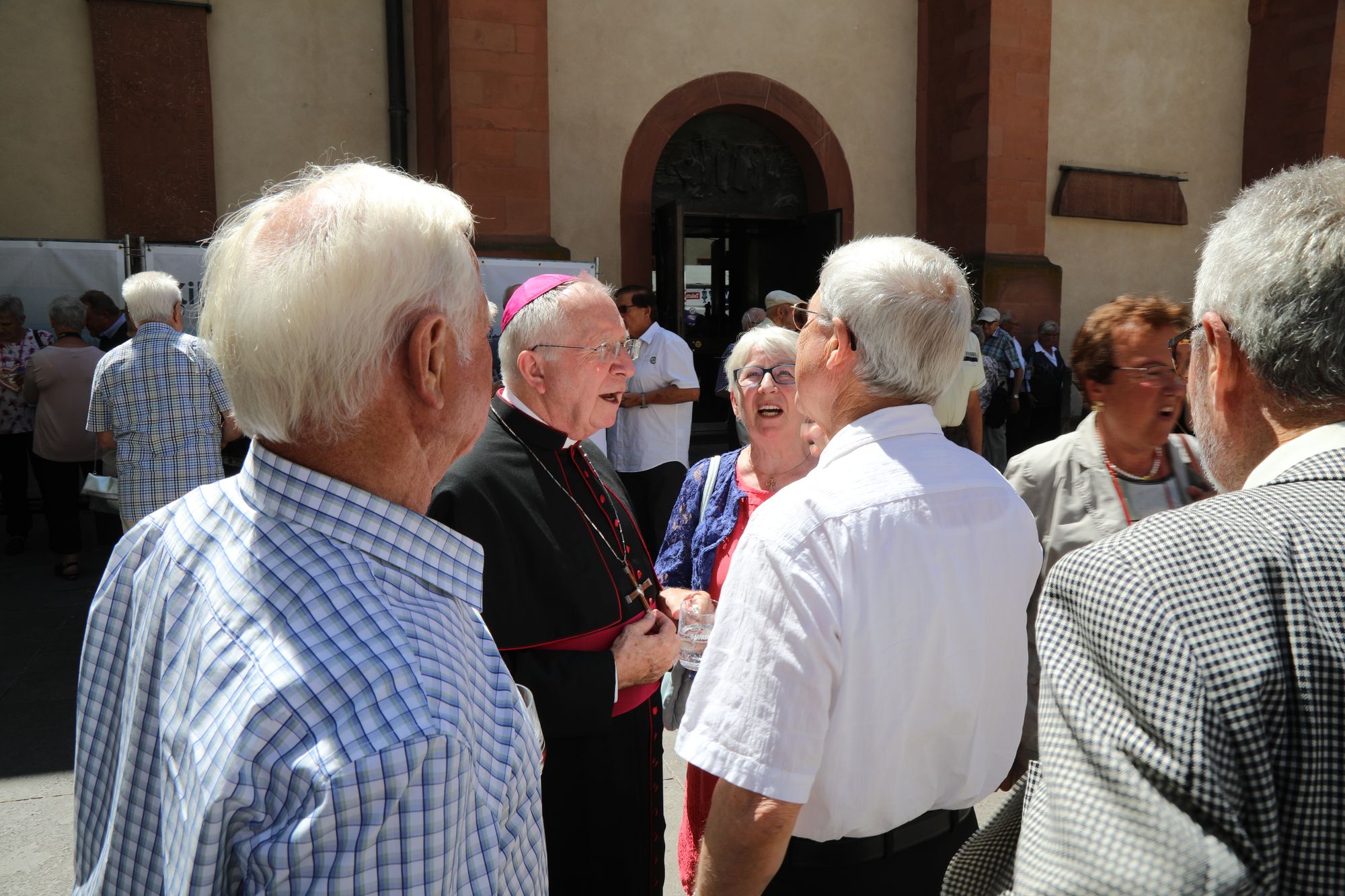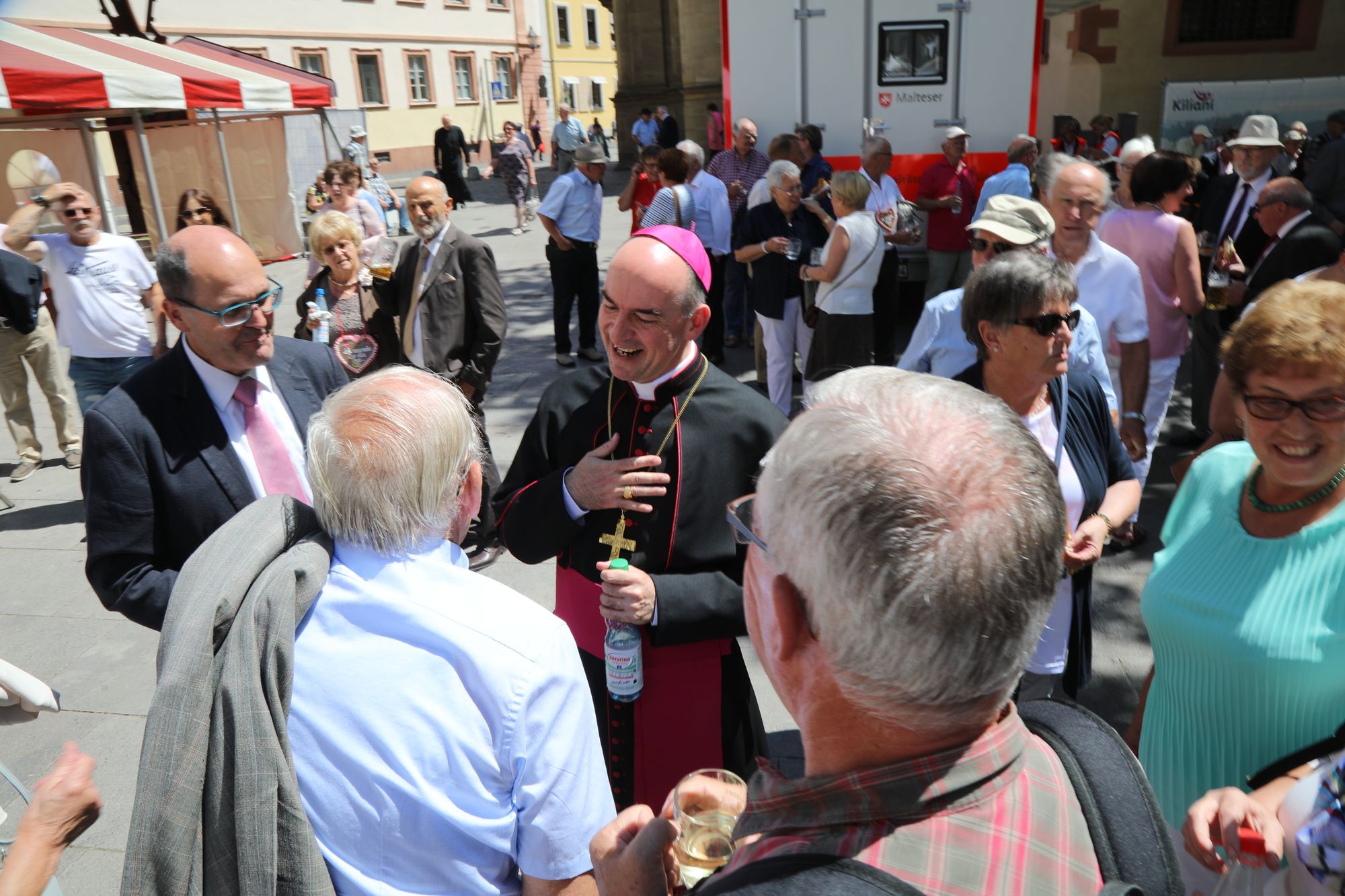 Auf dem Kiliansplatz zwischen Dom und Neumünster war bei Sonnenschein und sommerlichen Temperaturen anschließend Zeit für Begegnungen. Als Tipp aus fünf Jahrzehnten ihrer Ehe nannten Monika (69) und Hugo Emmert (74) aus Ochsenfurt: „Man muss zueinander stehen und auch einmal zurückstecken können.“ Die beiden erzählten, wie wichtig es bei der gemeinsamen Arbeit in Landwirtschaft und Weinberg gewesen sei, sich aufeinander verlassen zu können. „Unser Glaube hat uns in schwierigen Zeiten viel Kraft gegeben.“