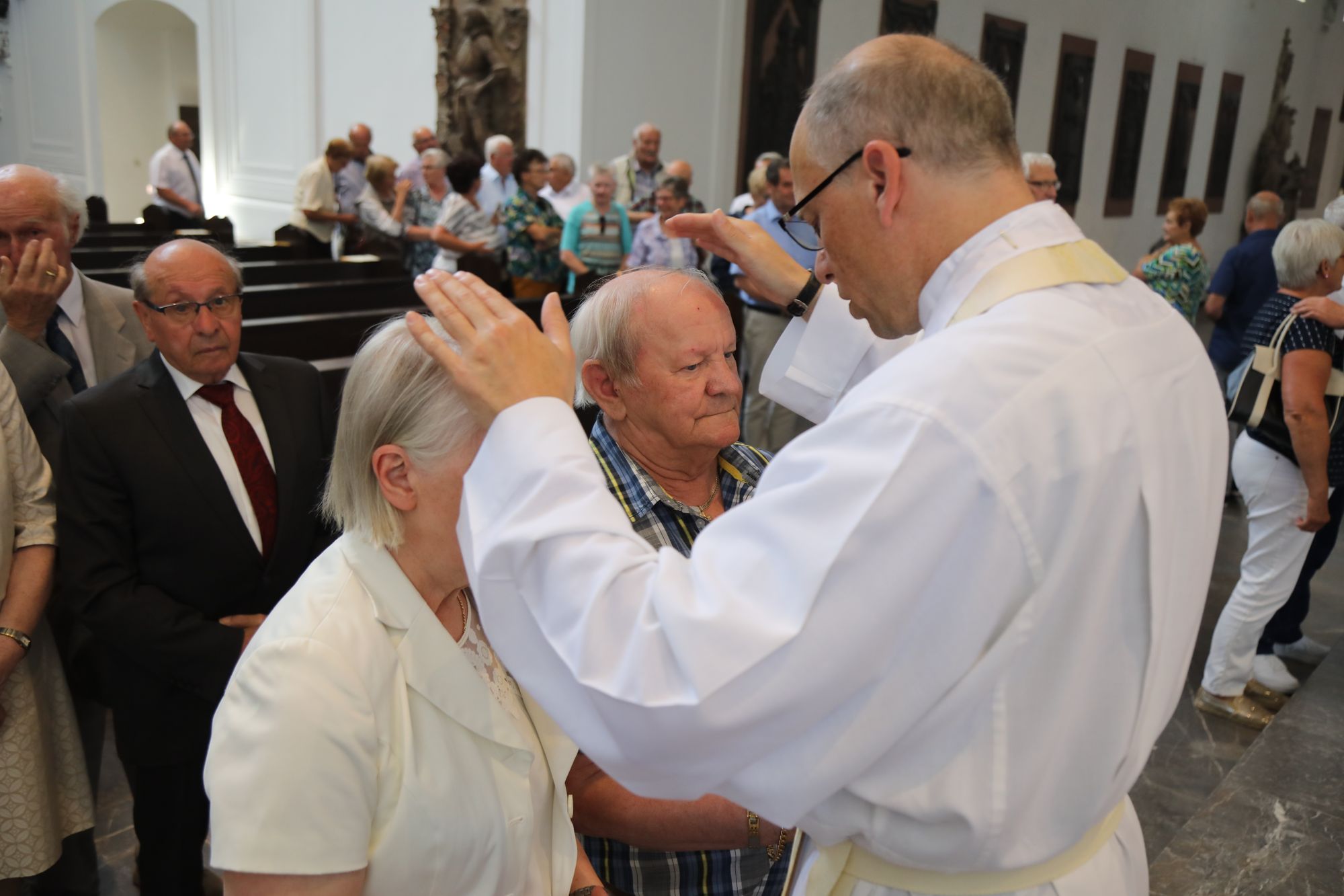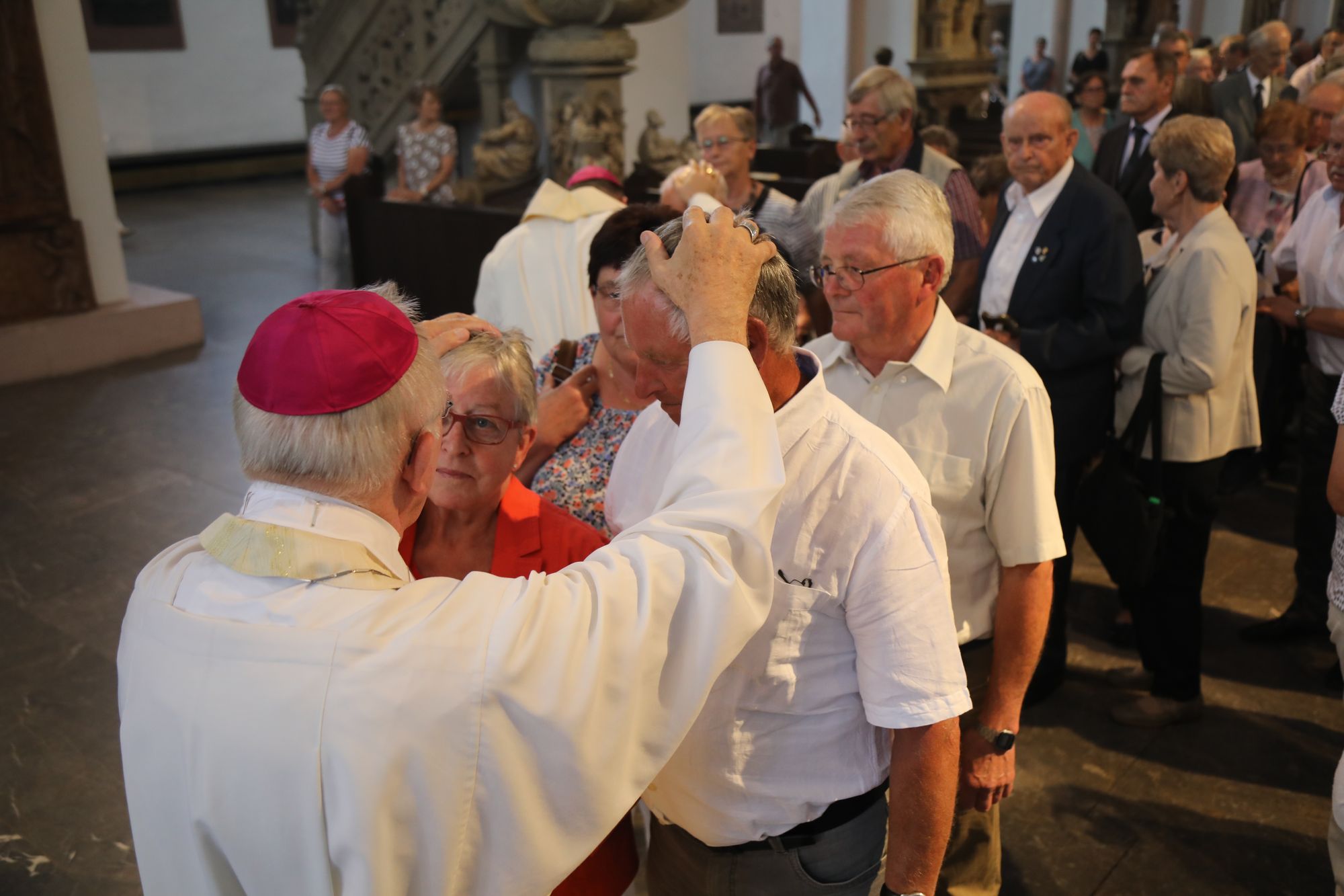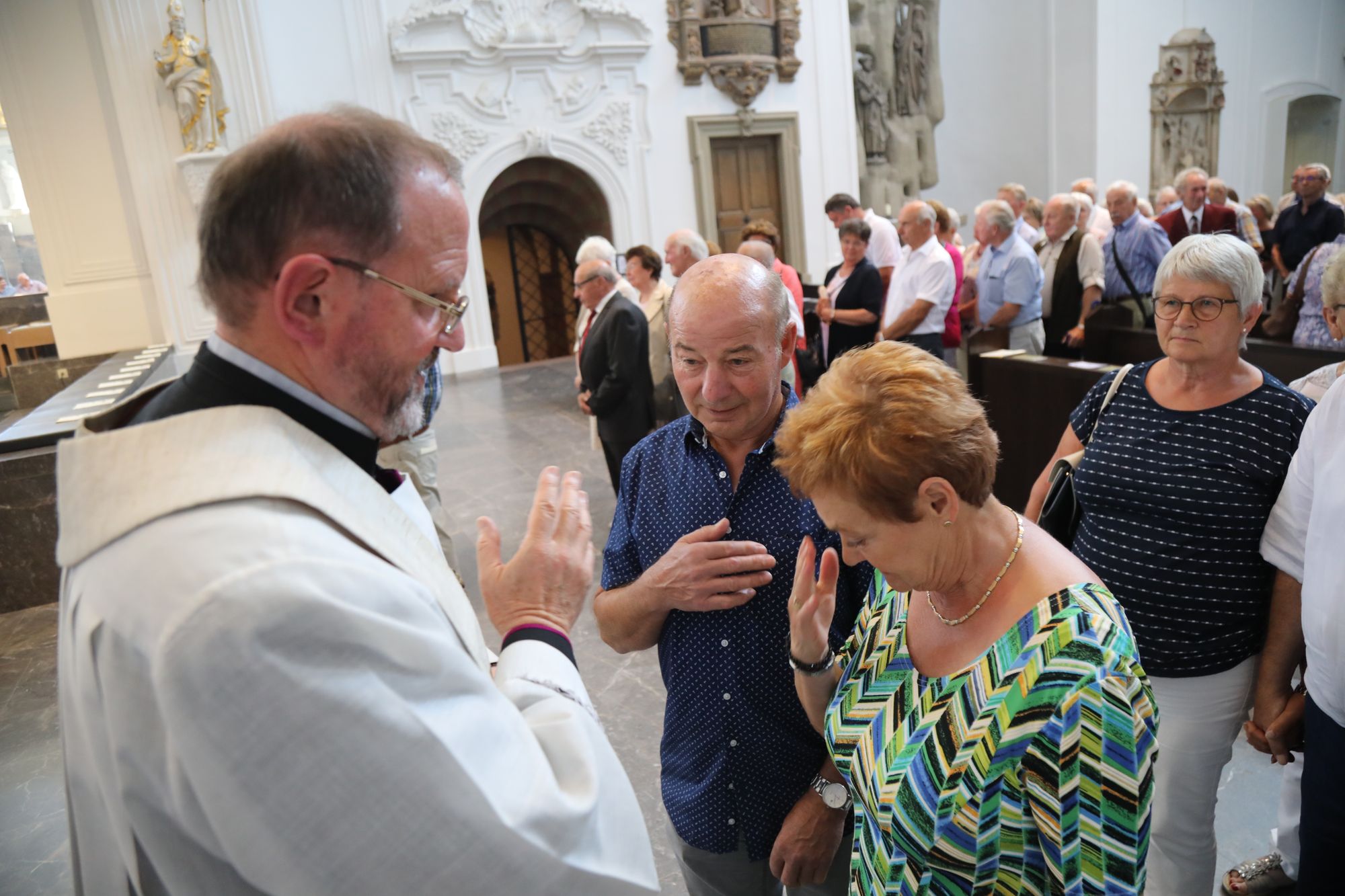 Der Festgottesdienst war der diesjährigen Kiliani-Wallfahrtswoche vorgeschaltet. Diese steht unter dem Motto „Denn Gott hat uns nicht einen Geist der Verzagtheit gegeben, sondern den Geist der Kraft, der Liebe und der Besonnenheit“. Gemeinsam erneuerten die Jubelpaare im Dom ihr Eheversprechen. Nach dem Gottesdienst ließen sich die Ehepartner von Weihbischof Boom, Bischof Dr. Franz Jung, Domkapitular Christoph Warmuth sowie weiteren Priestern und Diakonen segnen.