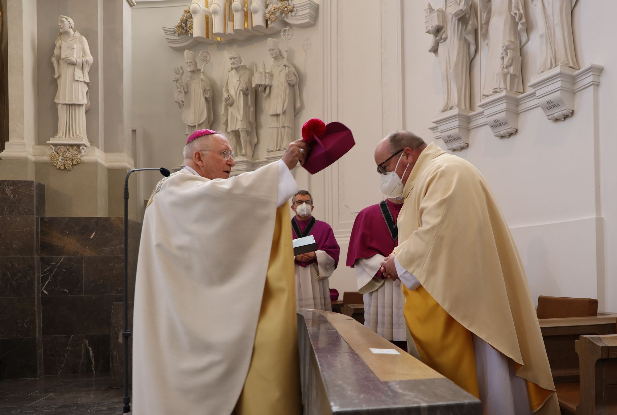 In seiner Ansprache dankte Gessner Bischof und Domkapitel für das entgegengebrachte Vertrauen. Er zitierte aus der Predigt des Bischofs bei der Chrisammesse vor wenigen Wochen, in der dieser zu Geschwisterlichkeit statt nur Mitbrüderlichkeit aufgerufen hatte. „Das Domkapitel muss vorleben, was wir von anderen erwarten“, betonte Gessner.