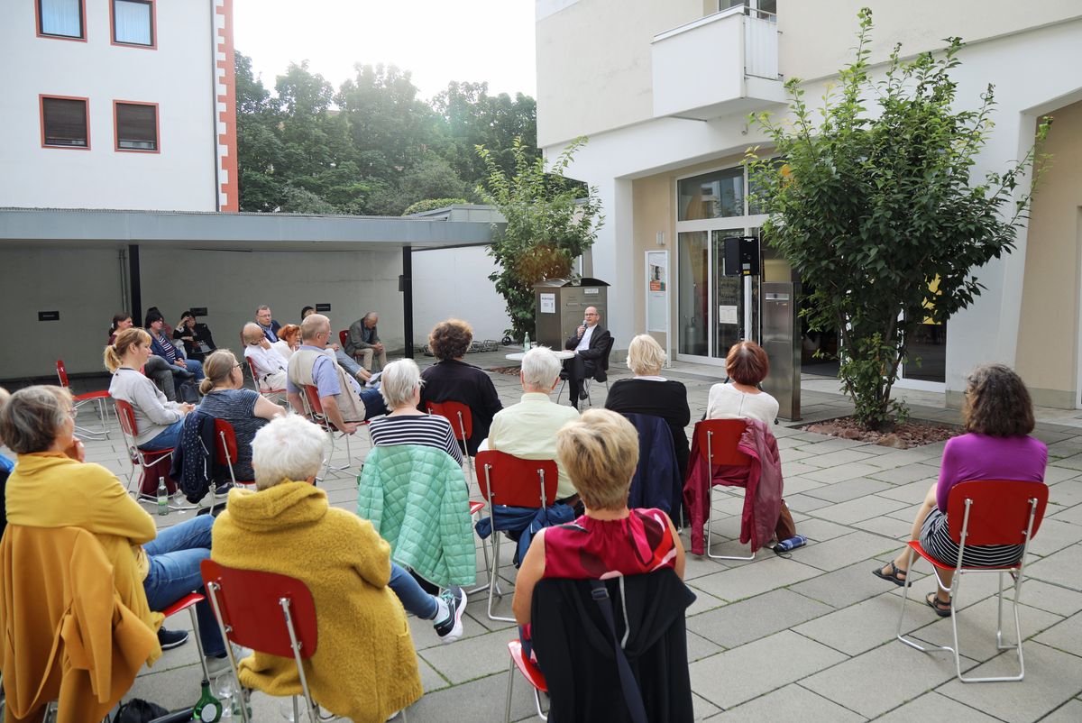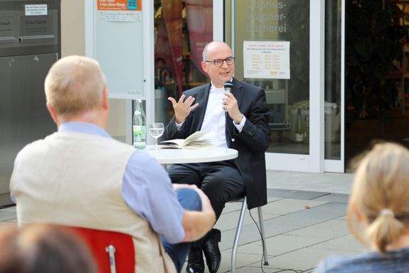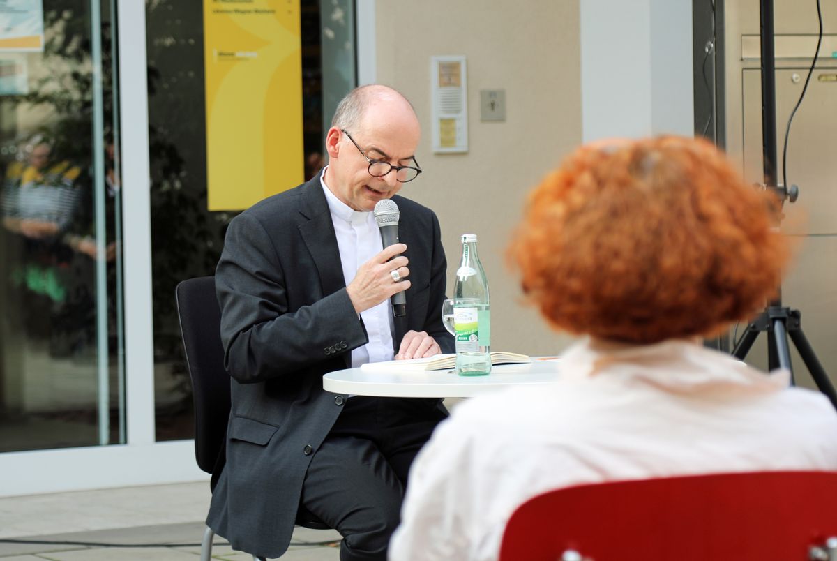 Er habe das Buch im vergangenen Jahr zum ersten Mal gelesen und es mittlerweile fast drei Mal gelesen, erzählte der Bischof: „Erst wenn man merkt, wie kunstvoll die einzelnen Dinge miteinander verwoben sind und wie die Themen im Buch wiederkehren, erschließt sich seine Schönheit.“ In der ausgewählten Passage besucht Thomas Enzinger zum zweiten Mal die Hauptperson Lina, die mit ihrer Tochter auf einem Bergbauernhof lebt. Der Star zweier Bergfilme, dem in der Stadt die Frauen nachlaufen, teilt für einige Tage ihren Alltag und verbringt schließlich eine Nacht mit ihr. Eine echte Chance hat er bei Lina jedoch nicht, und nach drei Tagen verlässt er den Hof für immer. In der anschließenden intensiven Diskussion überlegte Bischof Jung gemeinsam mit den Zuhörerinnen und Zuhörern, was Lina zu ihrem Verhalten bewegt und welche Rolle einige der wiederkehrenden Motive spielen, etwa das Mondlicht oder „die schöne Insel im Weltmeer“. Das Publikum dankte ihm nach fast eineinhalb Stunden Lesung und Austausch mit langem Applaus.