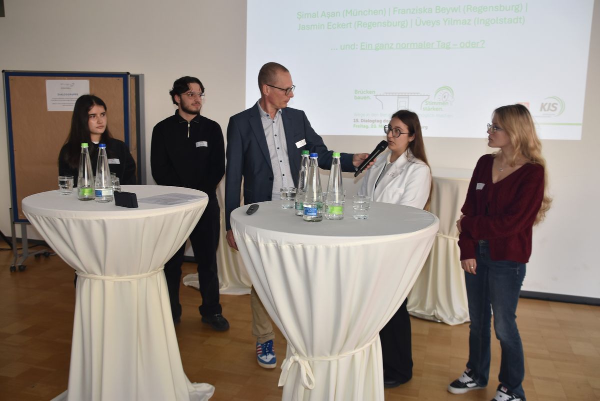 Besonders eindrücklich waren die Berichte vier junger Menschen aus der Praxis: Eine ehemalige Au-pair-Frau aus der Türkei schilderte bürokratische Hürden trotz guter Sprachkenntnisse, eine Auszubildende in Reha-Maßnahme berichtete von Lernunterstützung und Zuversicht, eine Jugendliche im sozialpädagogischen Wohnen lobte das Vorbild ihrer Betreuerin, und ein Schüler aus Ingolstadt erzählte, wie ihn die Jugendsozialarbeit an Schulen (JaS) nachhaltig verändert habe. Allen gemeinsam war die Erfahrung, dass eine Bezugsperson, die an sie glaubt, entscheidend sein kann.