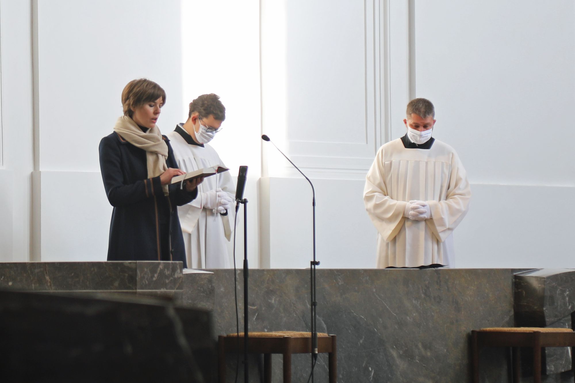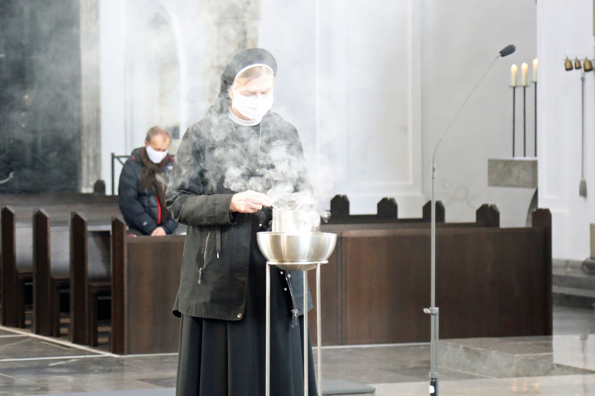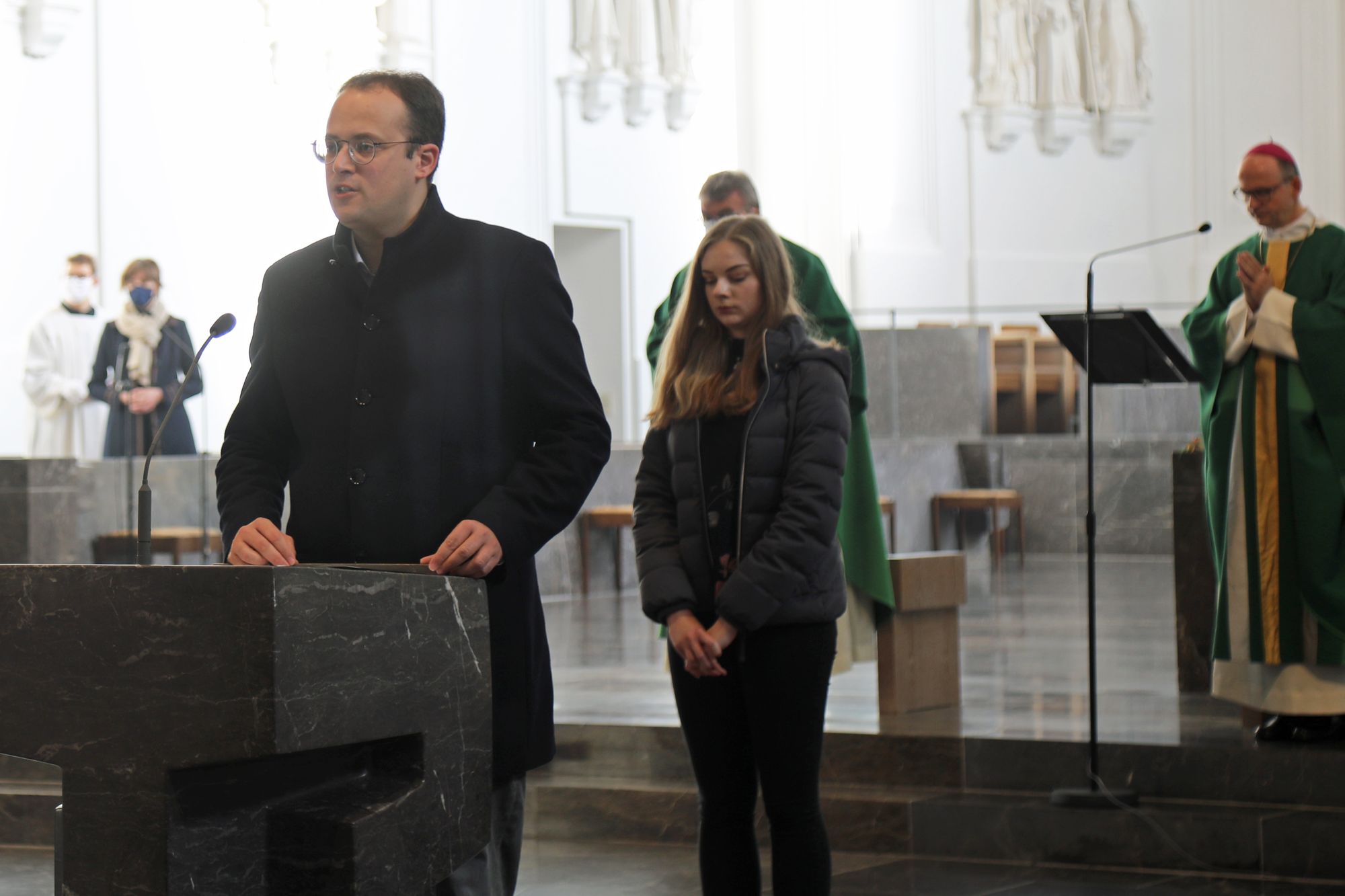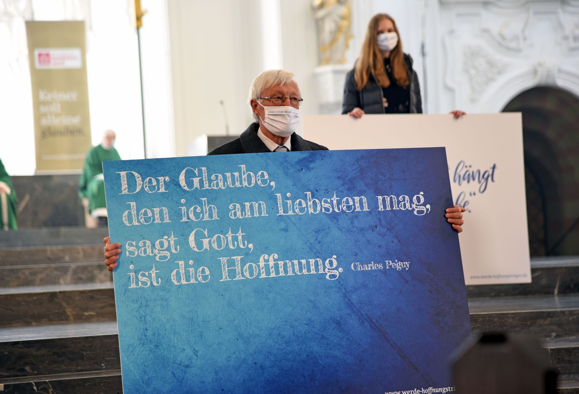 Eröffnet wurde die Aktion zu Beginn des Gottesdienstes durch den Generalsekretär des Bonifatiuswerkes, Monsignore Georg Austen, mit Schwester Lydia Kaps vom Kinder- und Jugendzentrum Don Bosco in Magdeburg. „Trotz Corona geht die Arbeit in unseren Hilfsprojekten weiter. Dabei gibt es notwendige pastorale und soziale Projekte, die gerade in dieser herausfordernden Zeit Menschen auf unterschiedliche Weise unterstützen, die es zu fördern gilt. Viele Menschen sind auf unser Gebet und unsere Solidarität angewiesen. Der Spagat von Abstand halten und Nähe suchen, von Hoffnung geben und Solidarität zeigen, gehört in Gebet, Wort und Tat erkennbar zusammen. Vielleicht werden wir als Kirche nicht mehr von allen als systemrelevant angesehen, aber durch unsere konkrete Hilfe sind wir mehr und in diesem Sinn existenzrelevant für den Menschen“, sagte Monsignore Austen. Corona heiße nicht, dass wir alleine glauben.