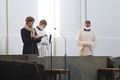 Eröffnet wurde die Aktion zu Beginn des Gottesdienstes durch den Generalsekretär des Bonifatiuswerkes, Monsignore Georg Austen, mit Schwester Lydia Kaps vom Kinder- und Jugendzentrum Don Bosco in Magdeburg. „Trotz Corona geht die Arbeit in unseren Hilfsprojekten weiter. Dabei gibt es notwendige pastorale und soziale Projekte, die gerade in dieser herausfordernden Zeit Menschen auf unterschiedliche Weise unterstützen, die es zu fördern gilt. Viele Menschen sind auf unser Gebet und unsere Solidarität angewiesen. Der Spagat von Abstand halten und Nähe suchen, von Hoffnung geben und Solidarität zeigen, gehört in Gebet, Wort und Tat erkennbar zusammen. Vielleicht werden wir als Kirche nicht mehr von allen als systemrelevant angesehen, aber durch unsere konkrete Hilfe sind wir mehr und in diesem Sinn existenzrelevant für den Menschen“, sagte Monsignore Austen. Corona heiße nicht, dass wir alleine glauben.