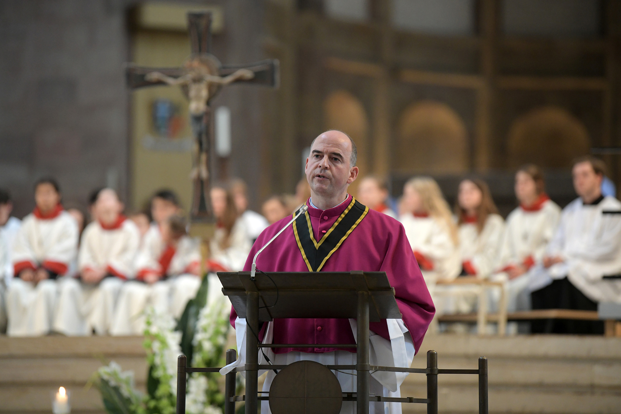 Speyer (POW) Mit einer feierlichen Pontifikalvesper im Speyerer Dom hat das Bistum Speyer am Montagabend, 14. Mai, Abschied von seinem Generalvikar Dr. Franz Jung genommen. Das schreibt das Bistum in einer Pressemitteilung. „Viele Priester, Seelsorger, Mitarbeiter und Gläubige aus dem gesamten Bistum sind heute nach Speyer gekommen, weil der Abschied sie berührt und sie Dank sagen möchten für den kraftvollen Einsatz, den Sie zum Aufbau der Kirche im Bistum Speyer geleistet haben“, würdigte Bischof Dr. Karl-Heinz Wiesemann das Wirken Jungs, der nahezu zehn Jahre die Verwaltung des Bistum Speyer geleitet hat.