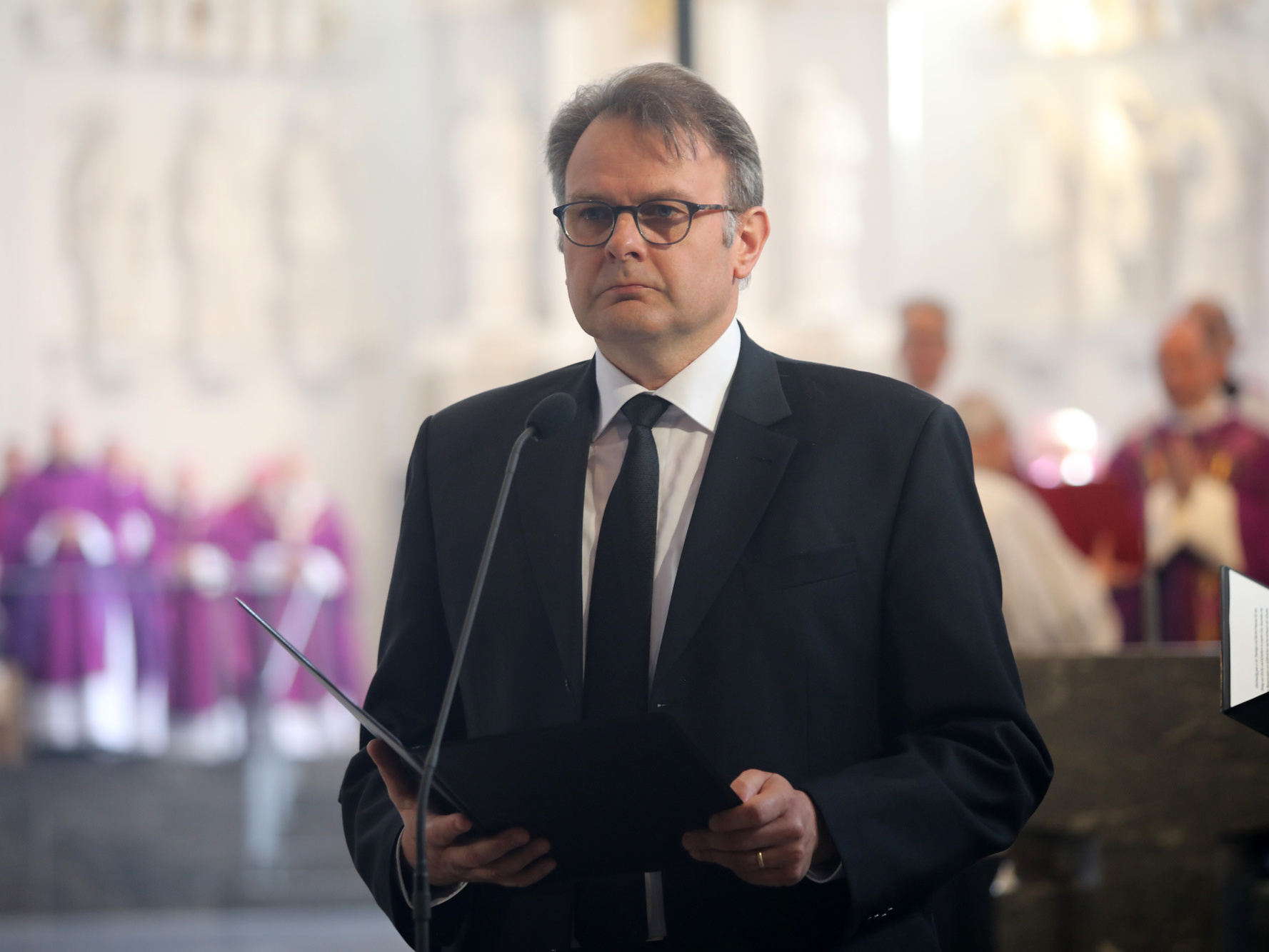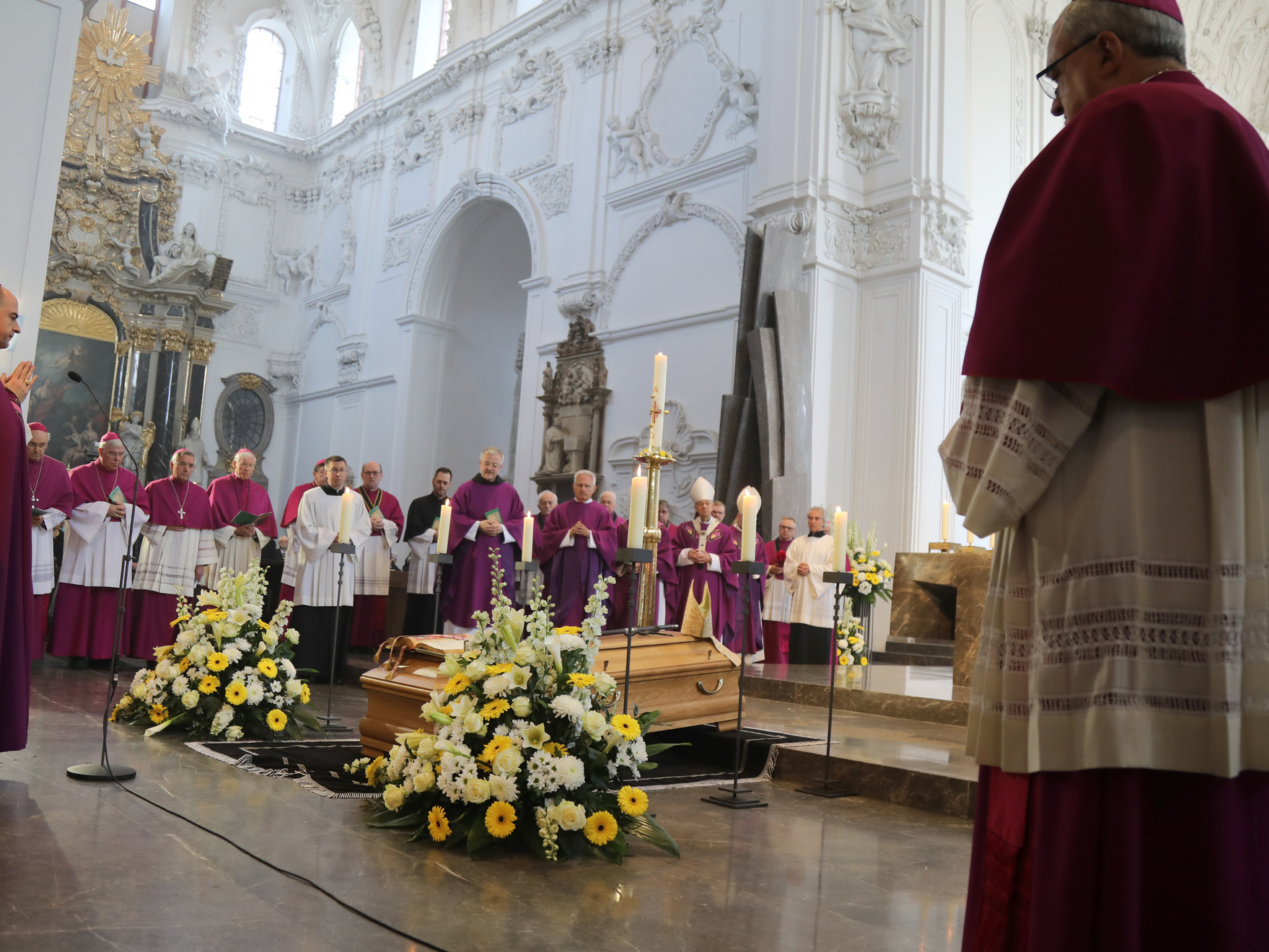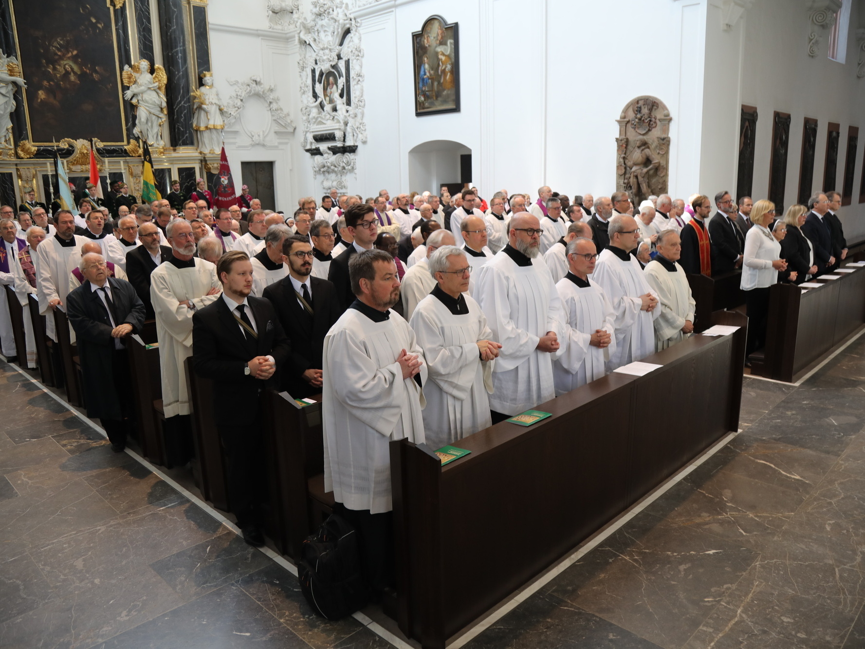 Für die musikalische Gestaltung des Gottesdiensts sorgten der Würzburger Domchor und Camerata Würzburg unter der Leitung von Domkapellmeister Professor Christian Schmid unter anderem mit dem Requiem in d-moll, KV 626, von Wolfgang Amadeus Mozart und „Jesus bleibet meine Freude“, BWV 147, von Johann Sebastian Bach. Solisten waren Anna Feith (Sopran), Yvonne Albes (Alt), Oliver Kringel (Tenor) und Sven Fürst (Bass). Die Domorgel spielte Professor Stefan Schmidt, Kantorin war Angela Lixfeld.