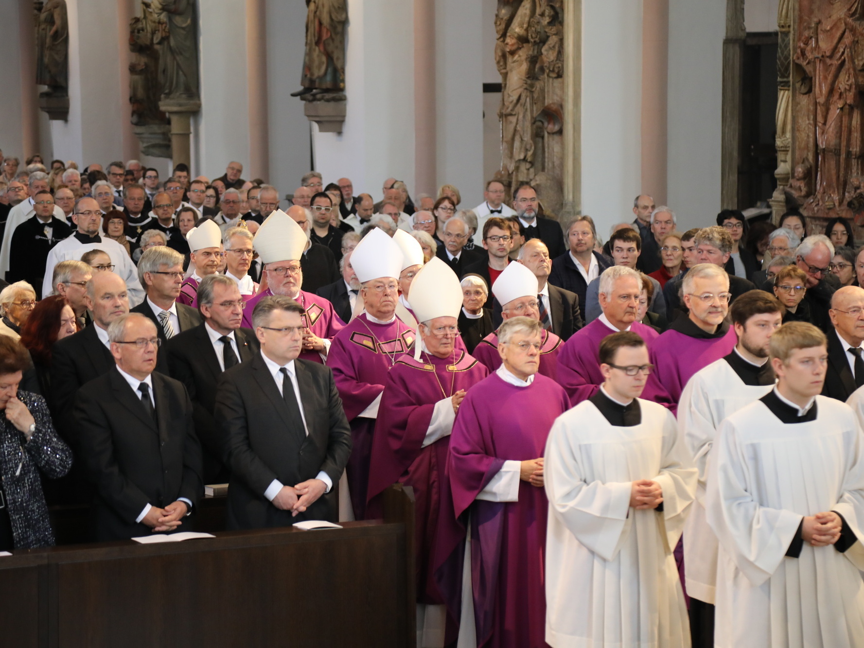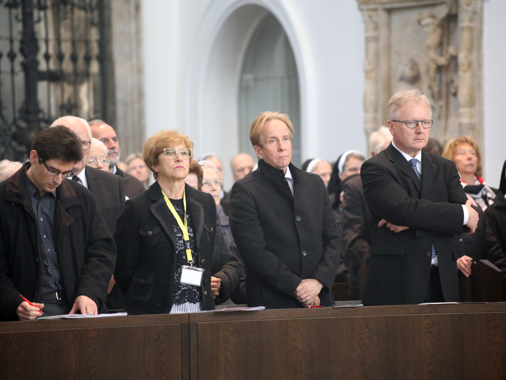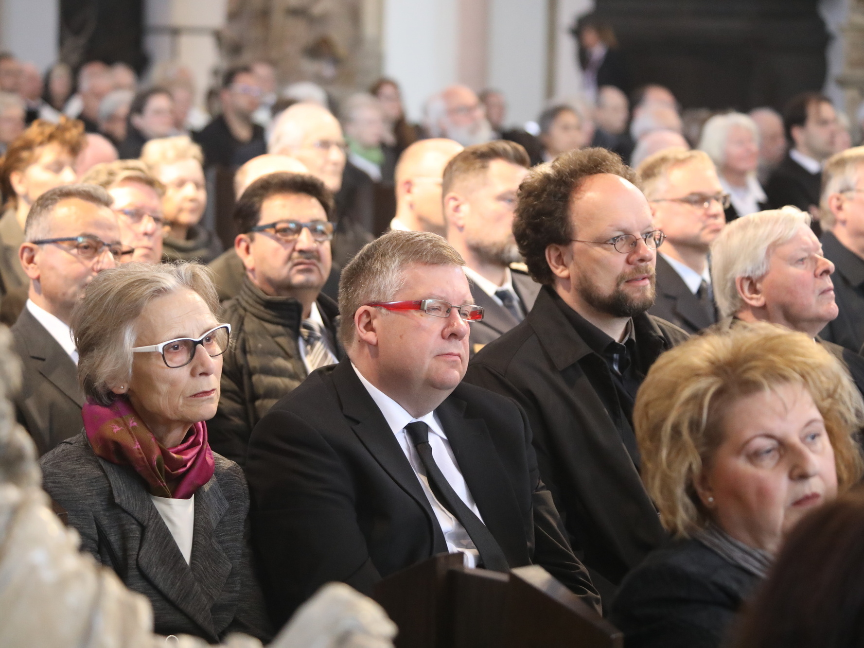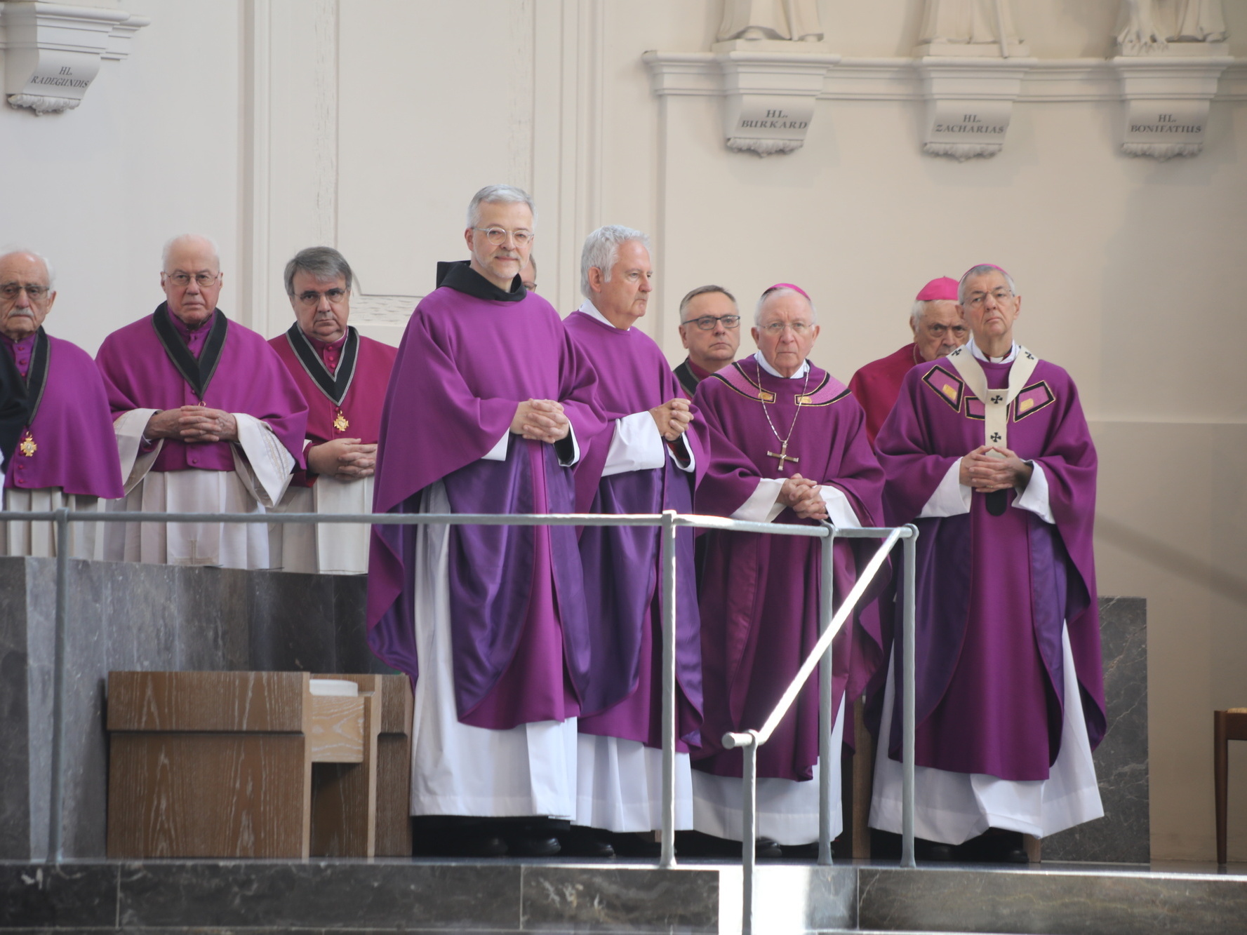 Auch in den Fürbitten wurde Bezug auf das vielfältige Wirken von Bischof Scheele genommen. So beteten die Gläubigen für alle Theologen, für die christlichen Glaubensgeschwister, für alle, die in der Musik die Herrlichkeit Gottes verkünden. Um Gottes Hilfe gebetet wurde auch für alle Kunstschaffenden und die Menschen, die in und durch die Kunst etwas von Gottes Heil entdecken. Außerdem für Irland, die Heimat der Frankenapostel, und die Menschen in den Partnerbistümern Mbinga und Óbidos sowie alle, denen Bischof Scheele verbunden war wie seiner Familie im Sauerland, den Menschen im Erzbistum Paderborn und allen bereits verstorbenen Weggefährten.