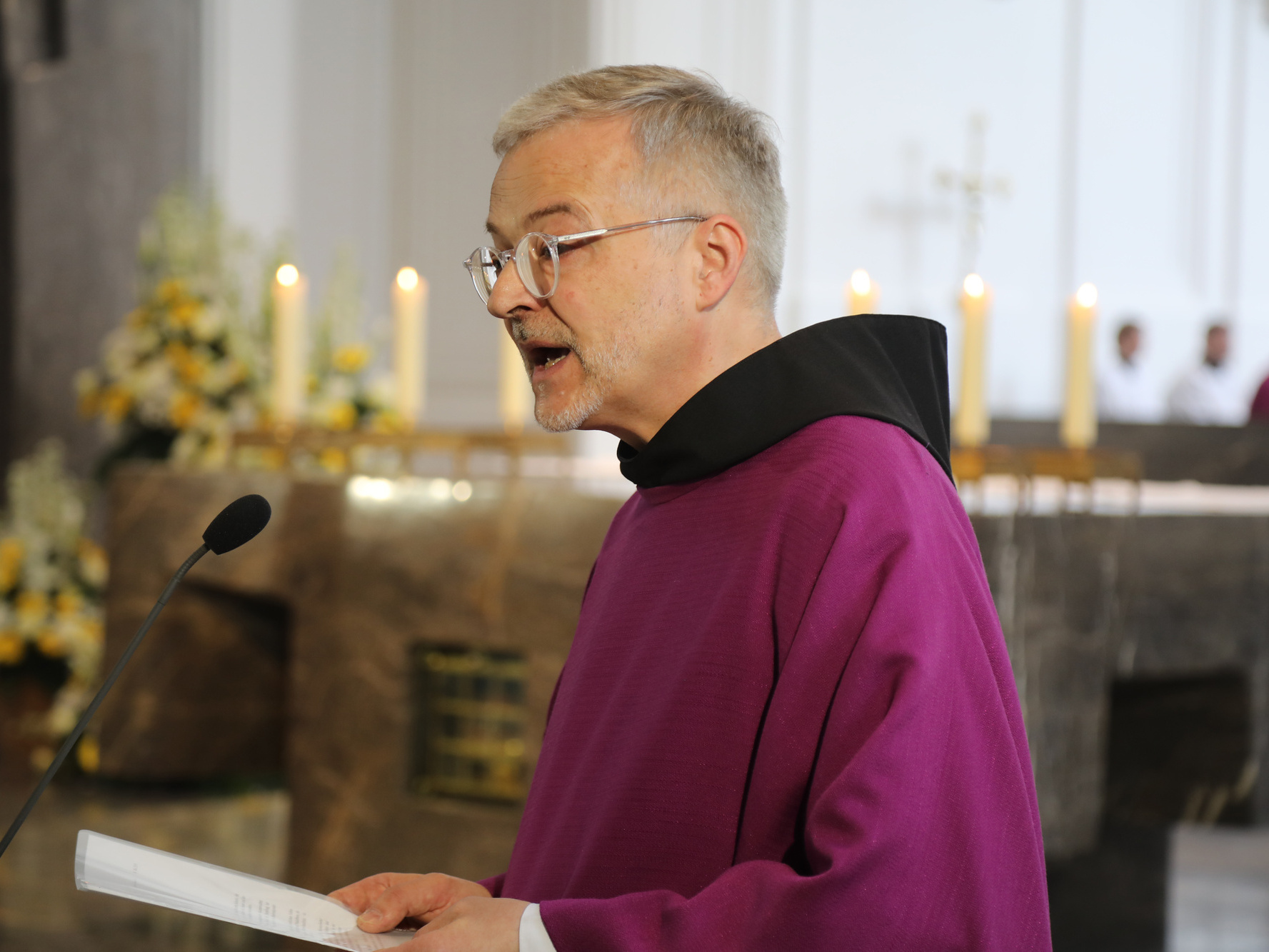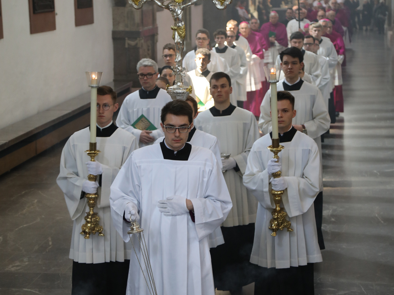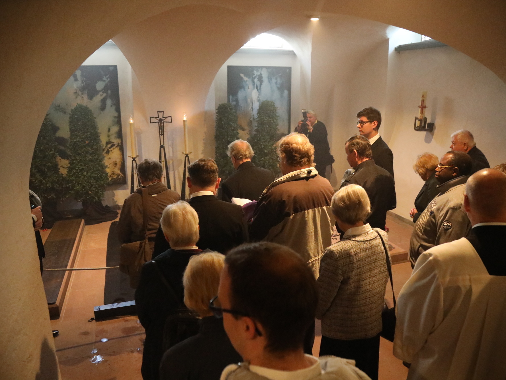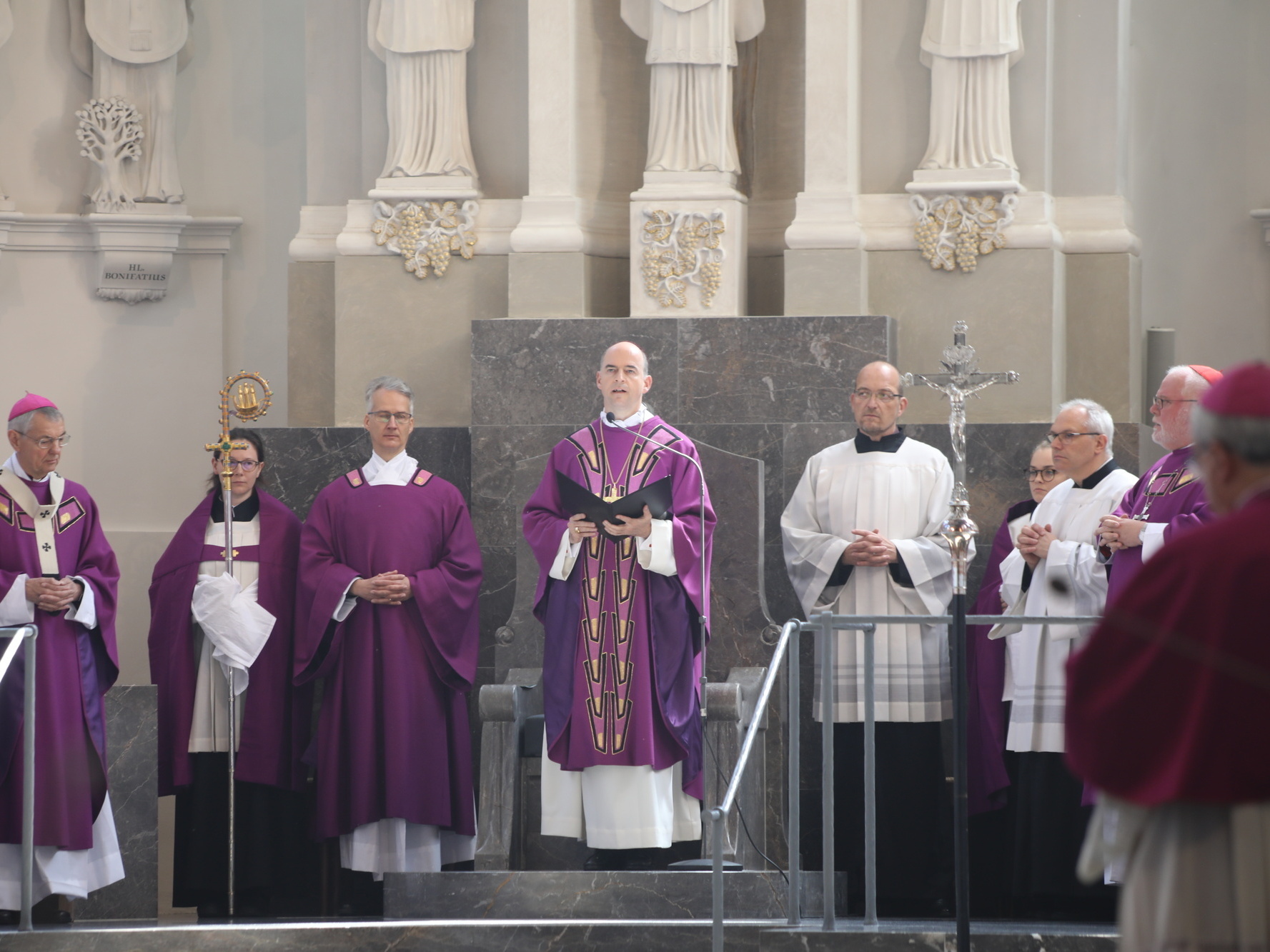 Auch in den Fürbitten wurde Bezug auf das vielfältige Wirken von Bischof Scheele genommen. So beteten die Gläubigen für alle Theologen, für die christlichen Glaubensgeschwister, für alle, die in der Musik die Herrlichkeit Gottes verkünden. Um Gottes Hilfe gebetet wurde auch für alle Kunstschaffenden und die Menschen, die in und durch die Kunst etwas von Gottes Heil entdecken. Außerdem für Irland, die Heimat der Frankenapostel, und die Menschen in den Partnerbistümern Mbinga und Óbidos sowie alle, denen Bischof Scheele verbunden war wie seiner Familie im Sauerland, den Menschen im Erzbistum Paderborn und allen bereits verstorbenen Weggefährten.
