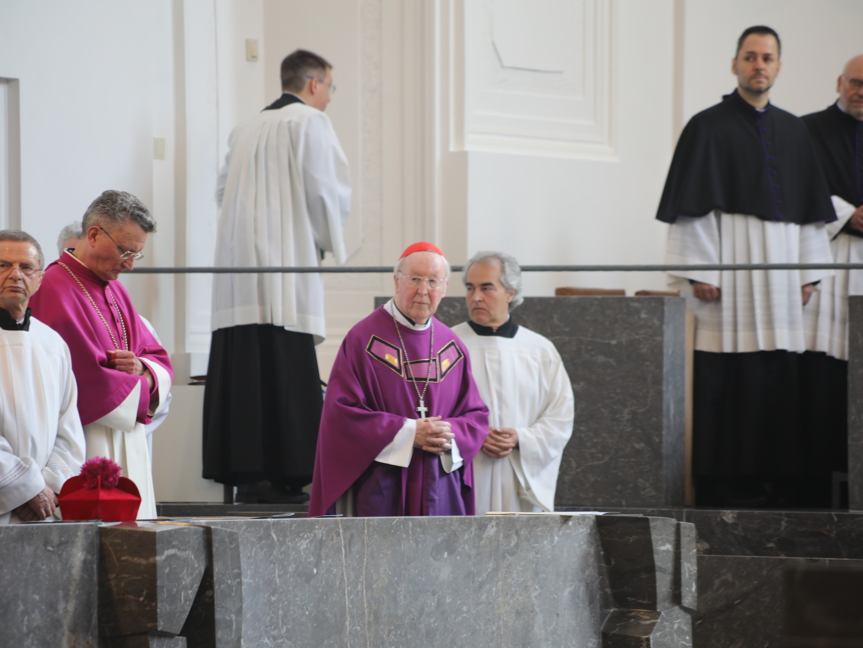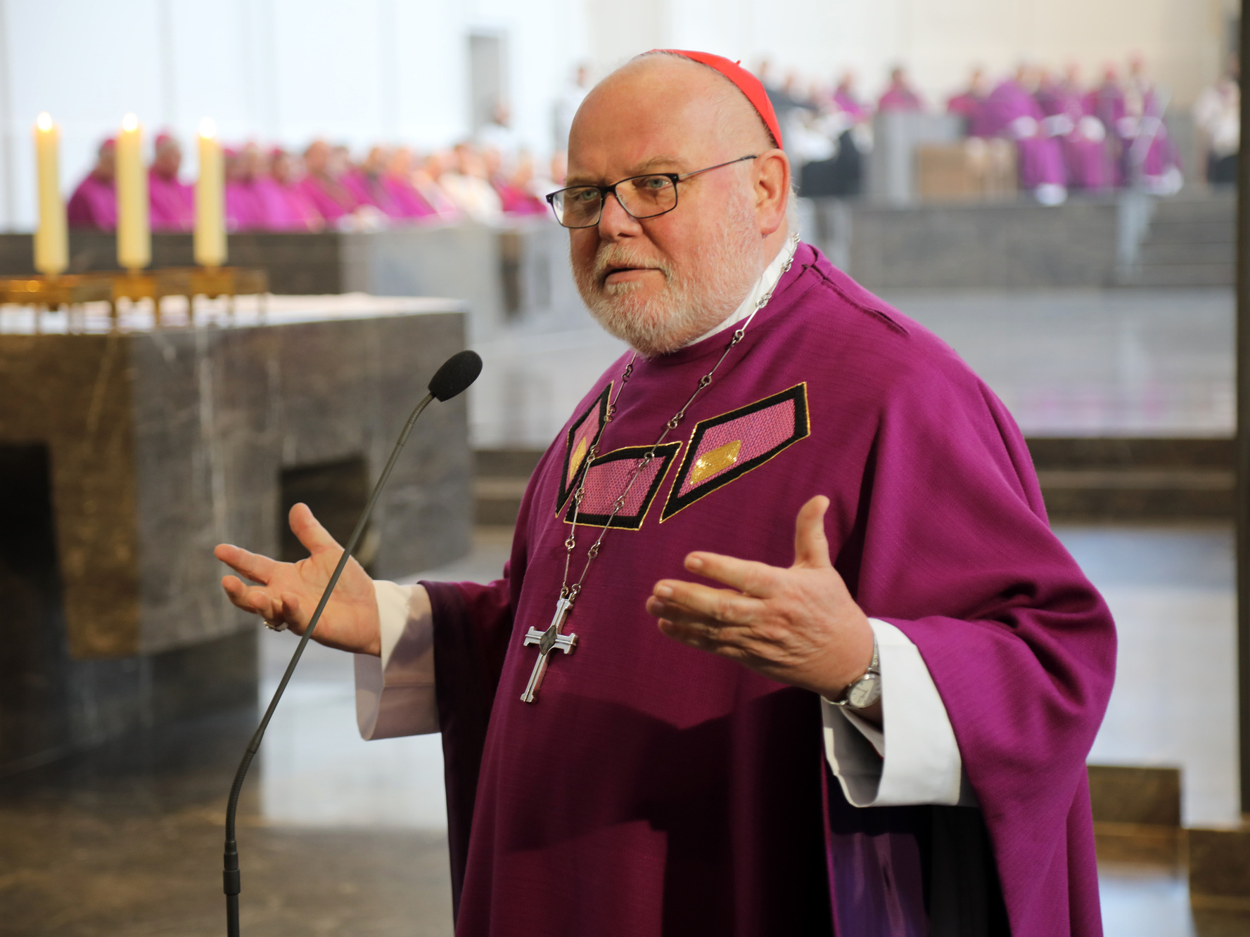 Als einen starken, neugierigen und humorvollen Menschen beschrieb Kardinal Marx in seinem emotionalen Grußwort nach dem Schlussgebet den Verstorbenen. „Er hat mich schon als junger Student beeindruckt“, sagte der Kardinal über seinen früheren Dogmatik-Professor. Scheele habe zu den Menschen gehört, die einen weiten Horizont haben. Dazu habe die Theologie mit ihren großen Herausforderungen gehört, aber auch die Kunst, die Musik, das Fußballspiel. In der Deutschen Bischofskonferenz sei Bischof Scheele über Jahrzehnte der Mann der Ökumene gewesen. „Er wird unser Wegbegleiter bleiben. Die Weitervereinigung der Christen bleibt ein Auftrag“, versprach der Kardinal. Bischof Scheele habe in seinem Lebensbeispiel gezeigt, wie ein großer Bischof sein müsse, „weitherzig, großmütig, menschenfreundlich, offen“, beschrieb Kardinal Marx. „Lieber Paul-Werner, danke für Deinen Dienst in der Kirche, danke für die vielen Jahre Deines Lebens- und Glaubenszeugnisses. Du gehst weiter mit uns, in einer neuen Weise.“