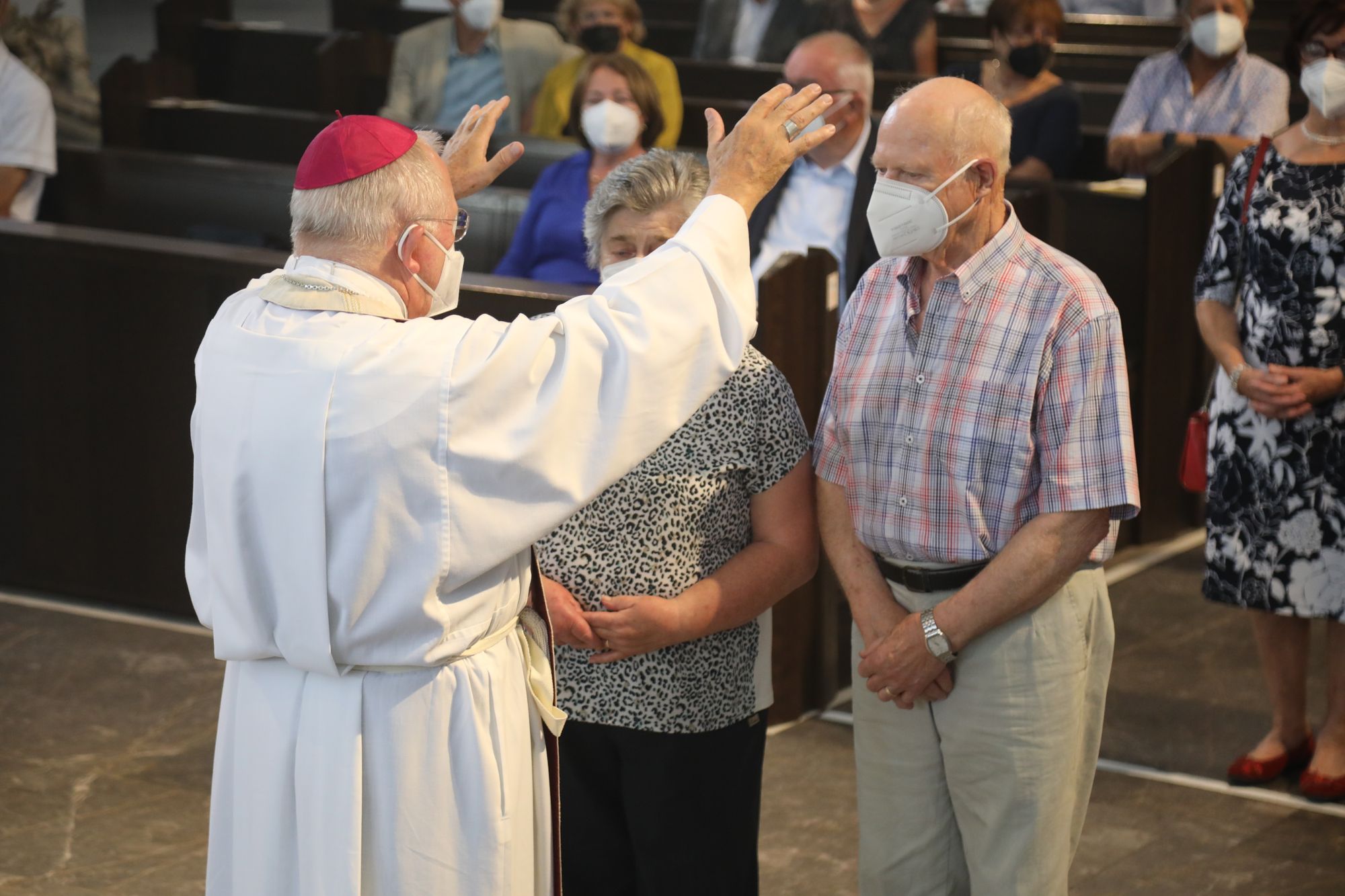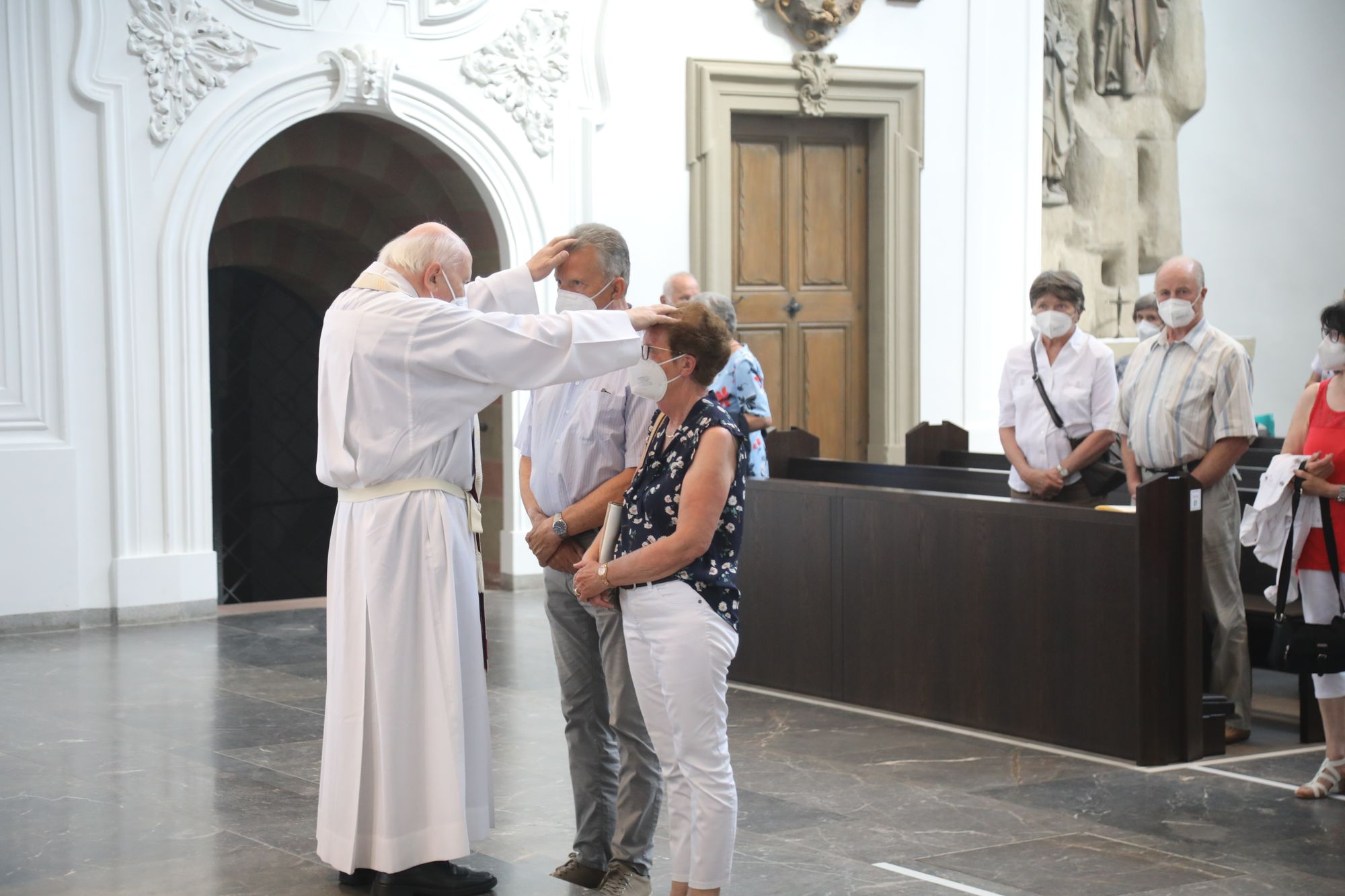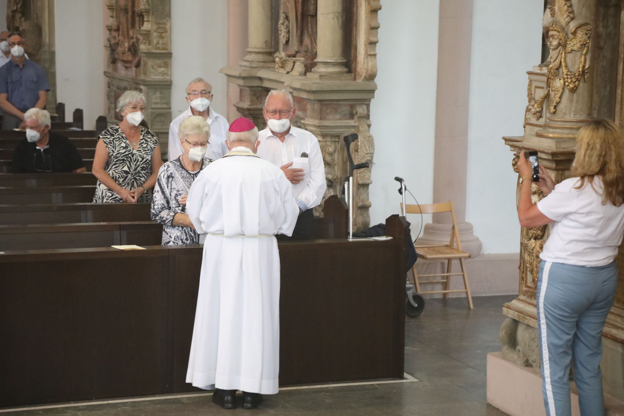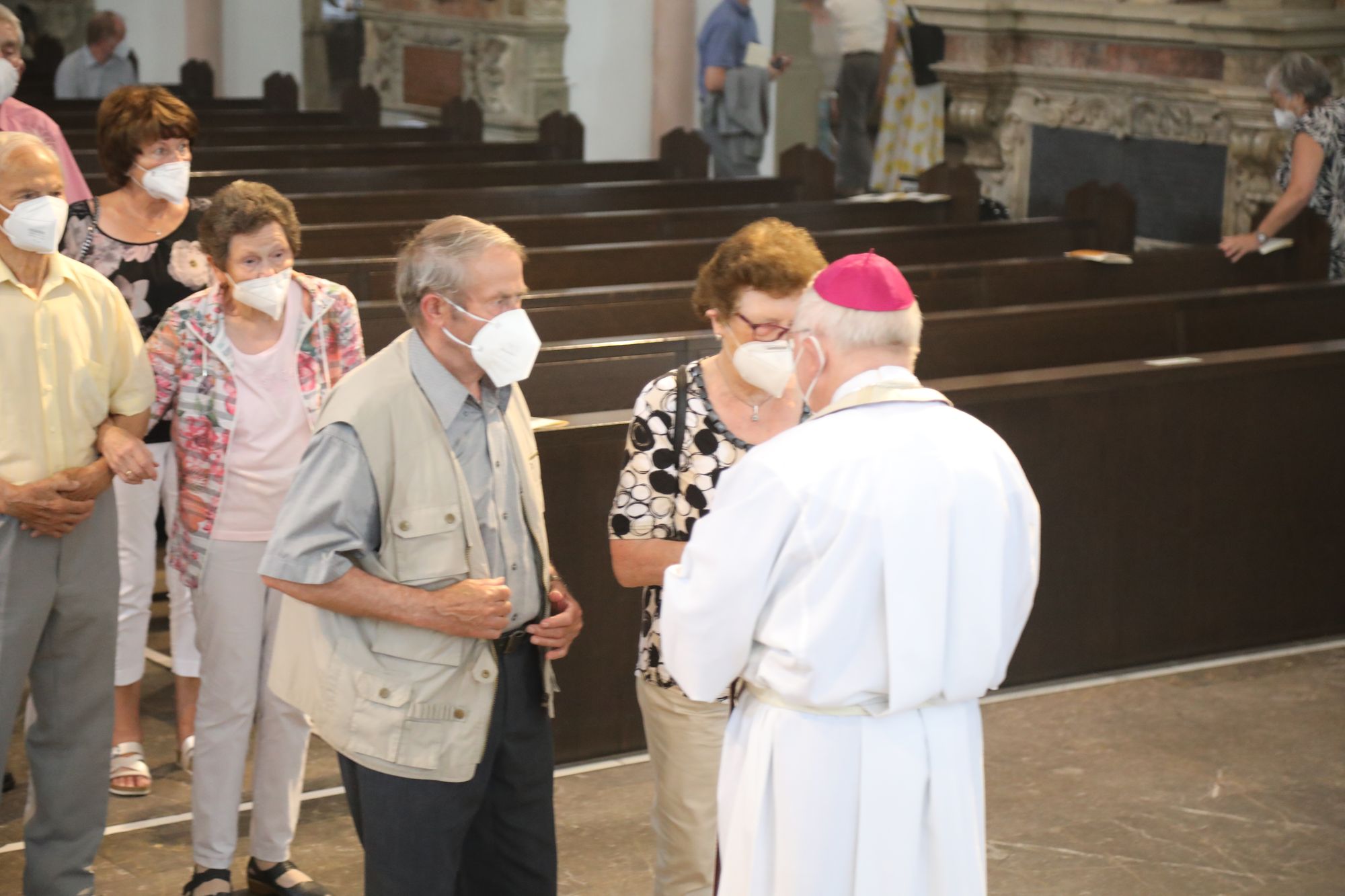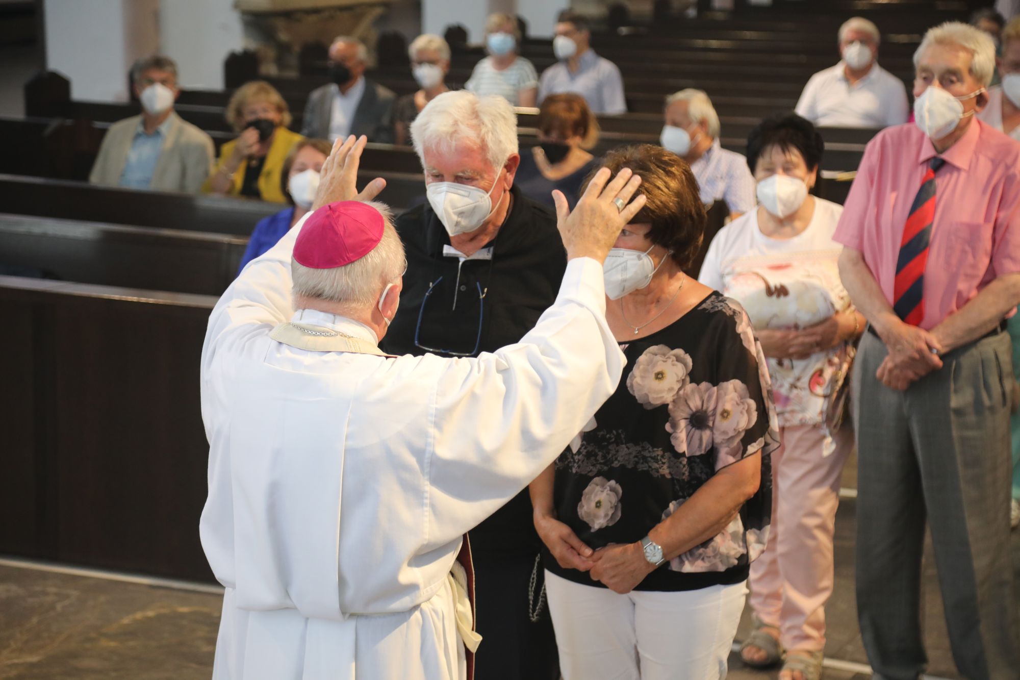 Eingeladen waren Ehejubilare, die in den Jahren 2020 und 2021 ihr goldenes, diamantenes oder eisernes Ehejubiläum feiern. Nach dem Gottesdienst ließen sich die Ehepartner von Weihbischof Boom und weiteren Priestern und Diakonen segnen. Die übliche Begegnung auf dem Kiliansplatz im Anschluss an den Gottesdienst musste aufgrund der Coronapandemie entfallen. Der Dankgottesdienst für Ehejubilare war der achte von insgesamt 18, die vor der diesjährigen Kiliani-Wallfahrtswoche unter den aktuellen Corona-Schutzmaßnahmen stattfinden.