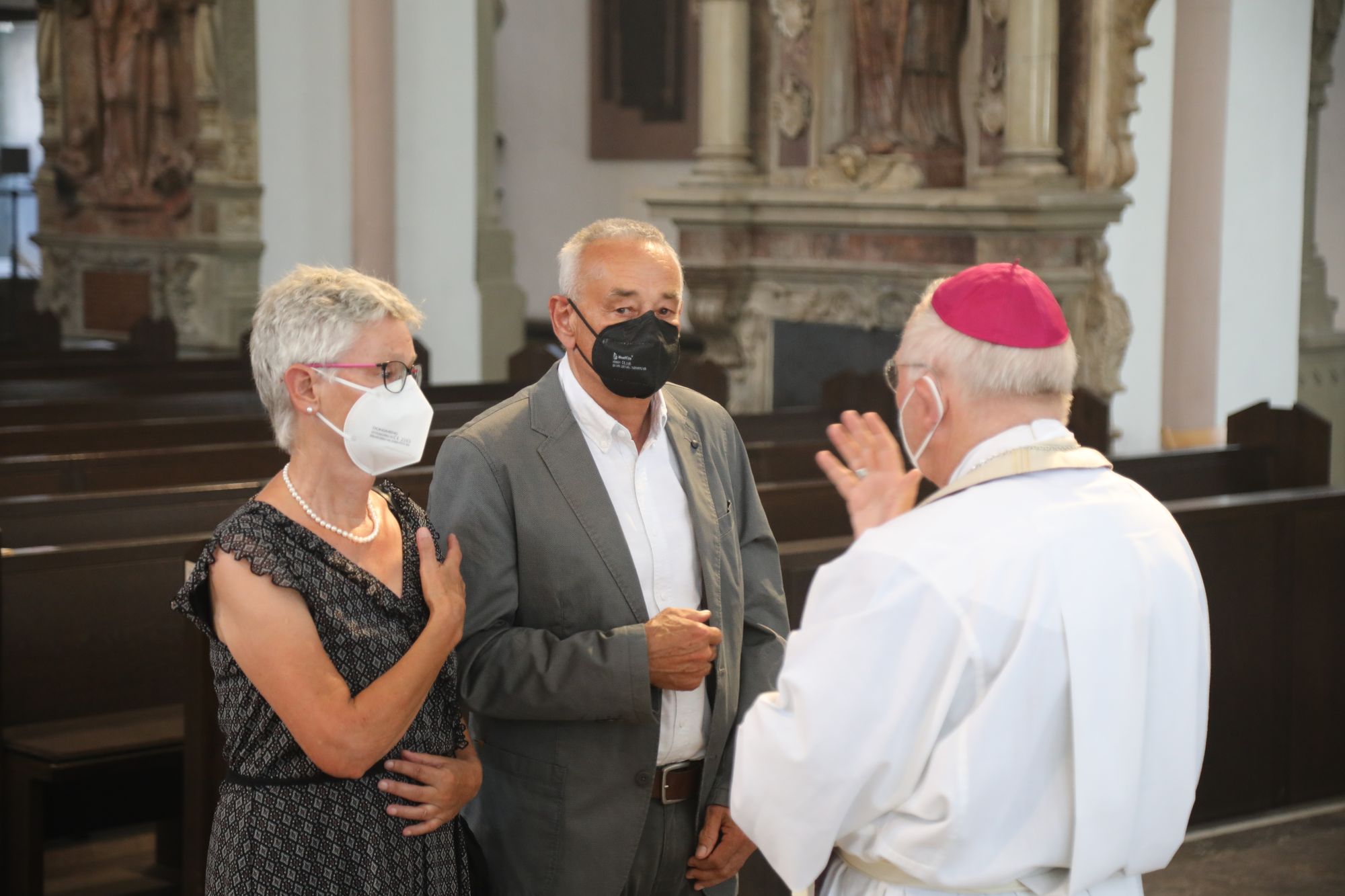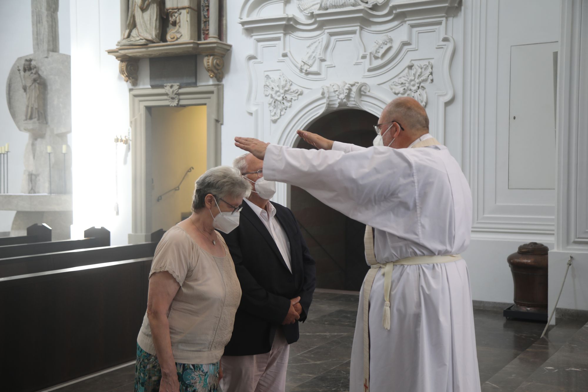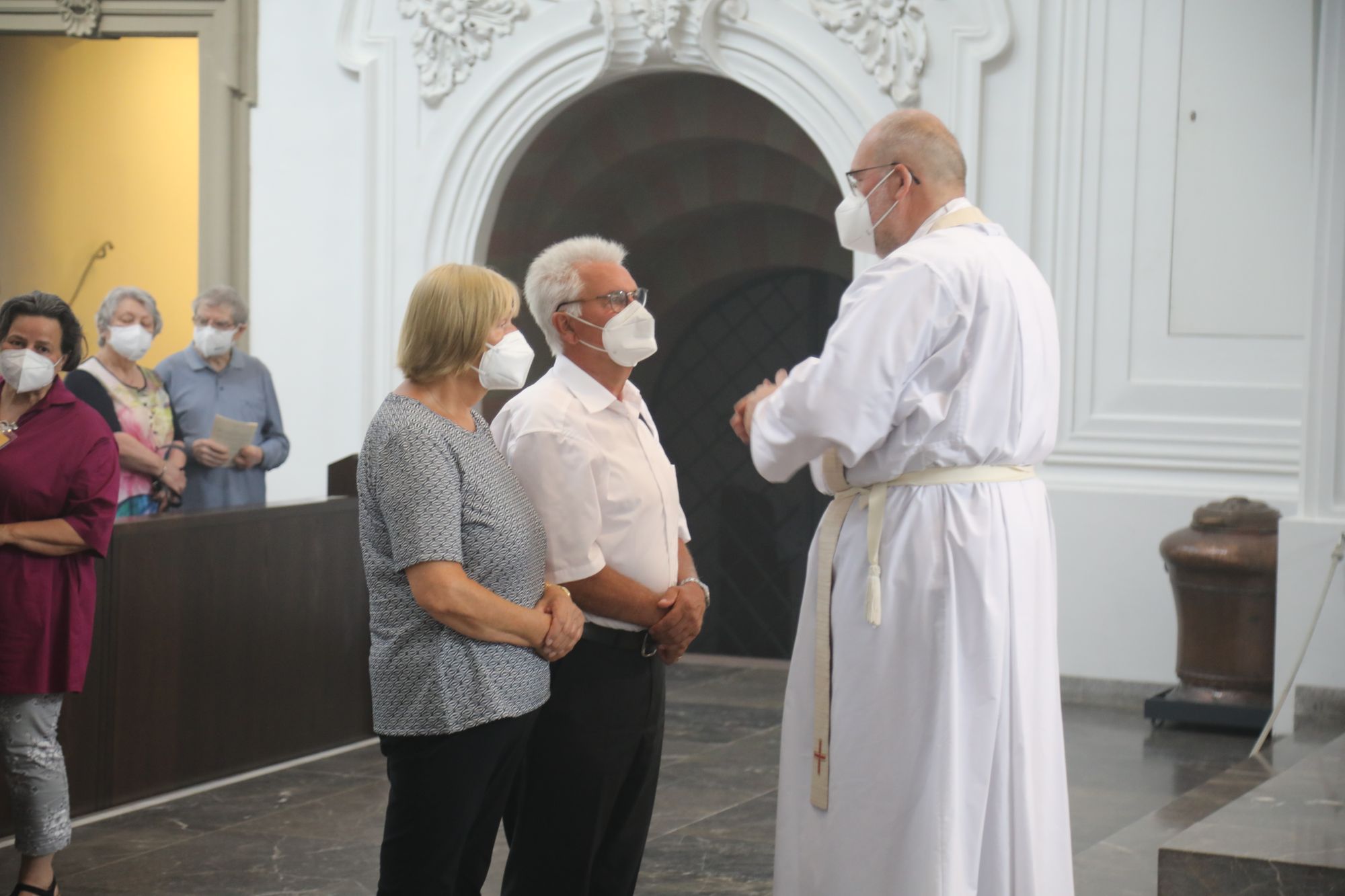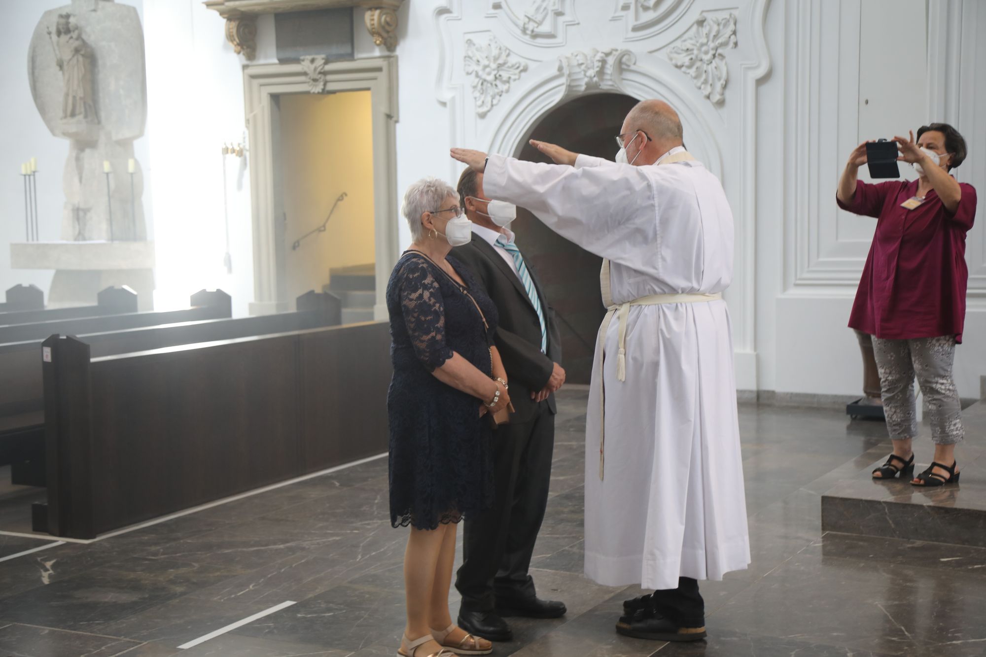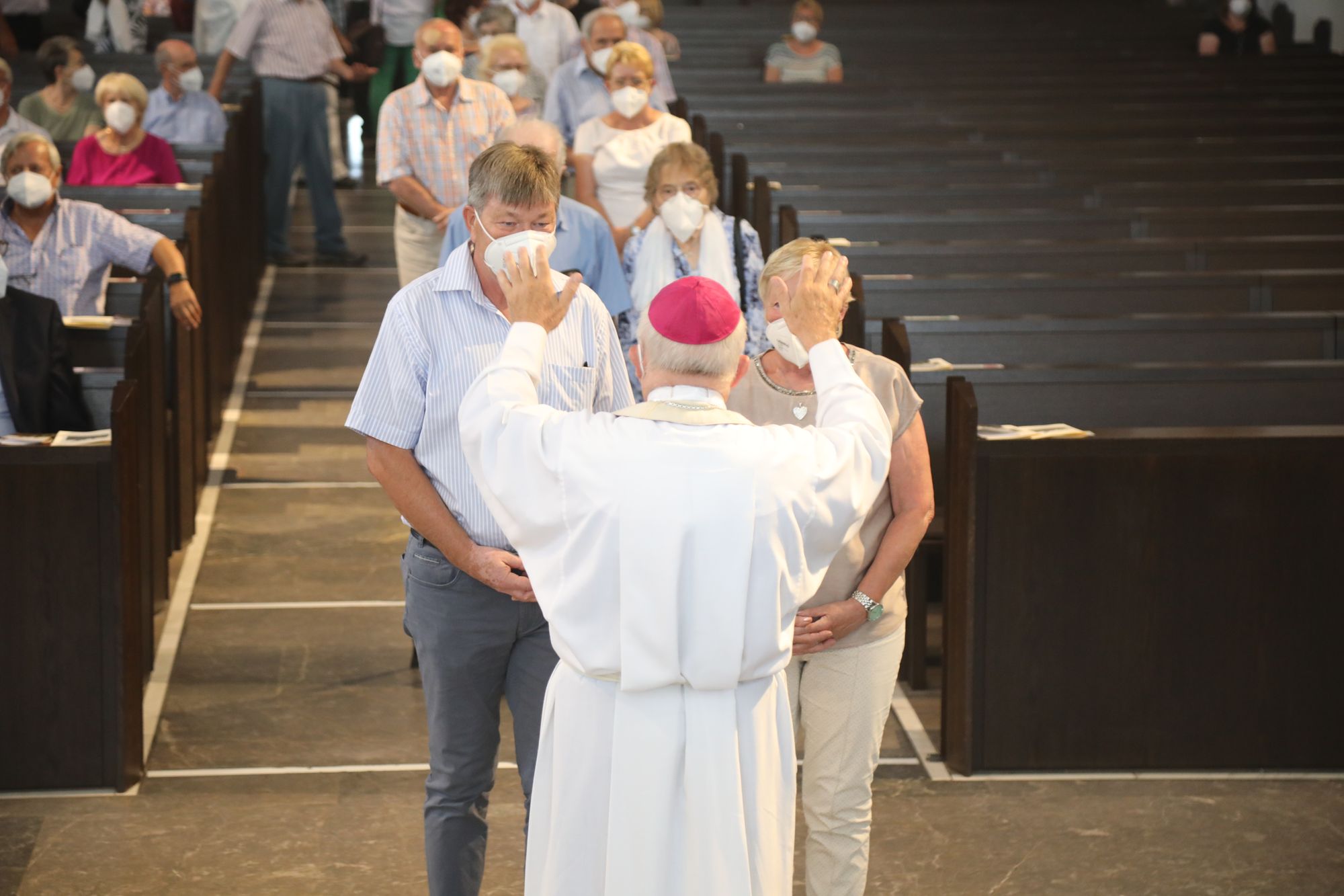 Eingeladen waren Ehejubilare, die in den Jahren 2020 und 2021 ihr goldenes, diamantenes oder eisernes Ehejubiläum feiern. Nach dem Gottesdienst ließen sich die Ehepartner von Weihbischof Boom und weiteren Priestern und Diakonen segnen. Die übliche Begegnung auf dem Kiliansplatz im Anschluss an den Gottesdienst musste aufgrund der Coronapandemie entfallen. Der Dankgottesdienst für Ehejubilare war der achte von insgesamt 18, die vor der diesjährigen Kiliani-Wallfahrtswoche unter den aktuellen Corona-Schutzmaßnahmen stattfinden.
