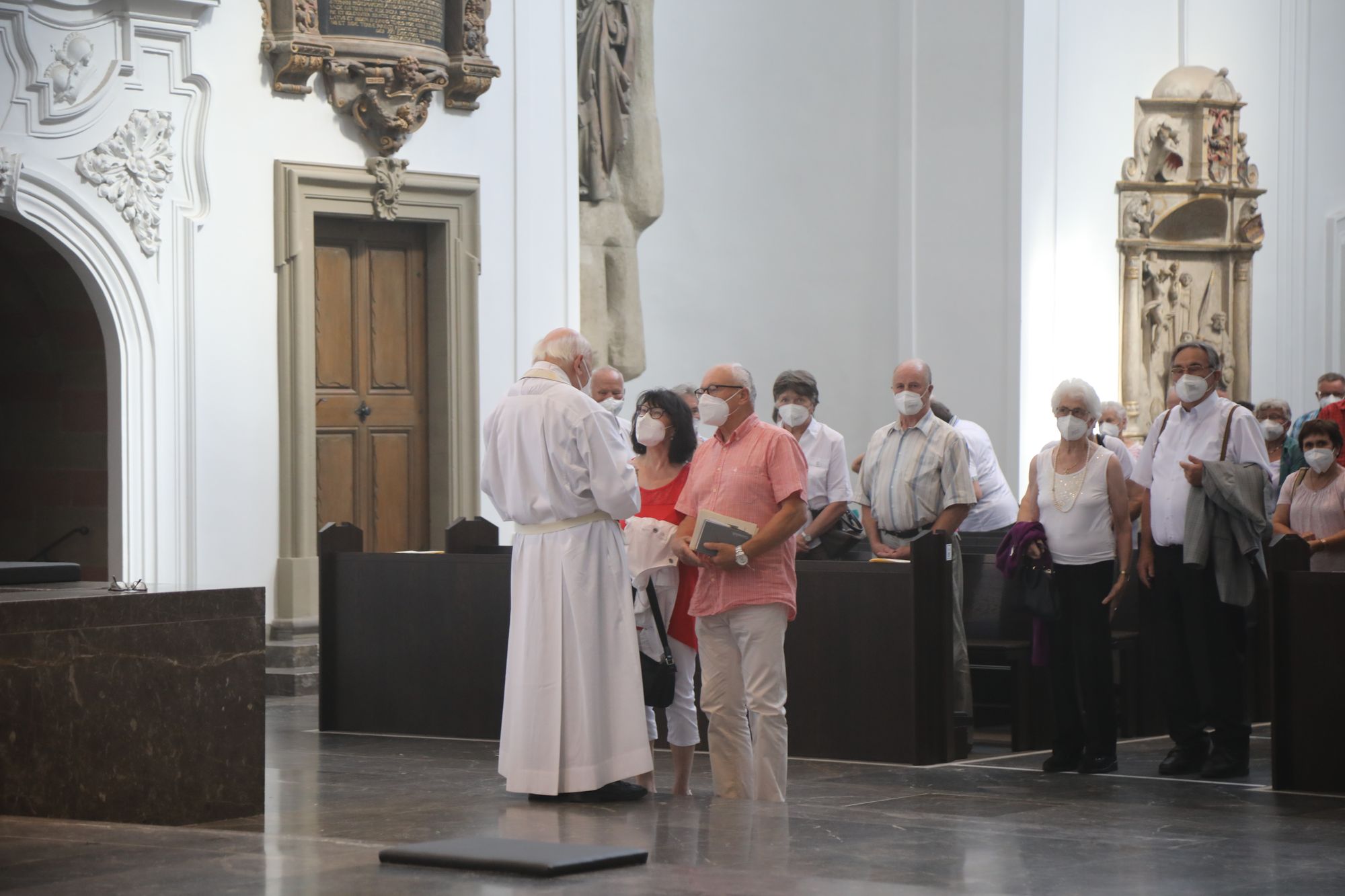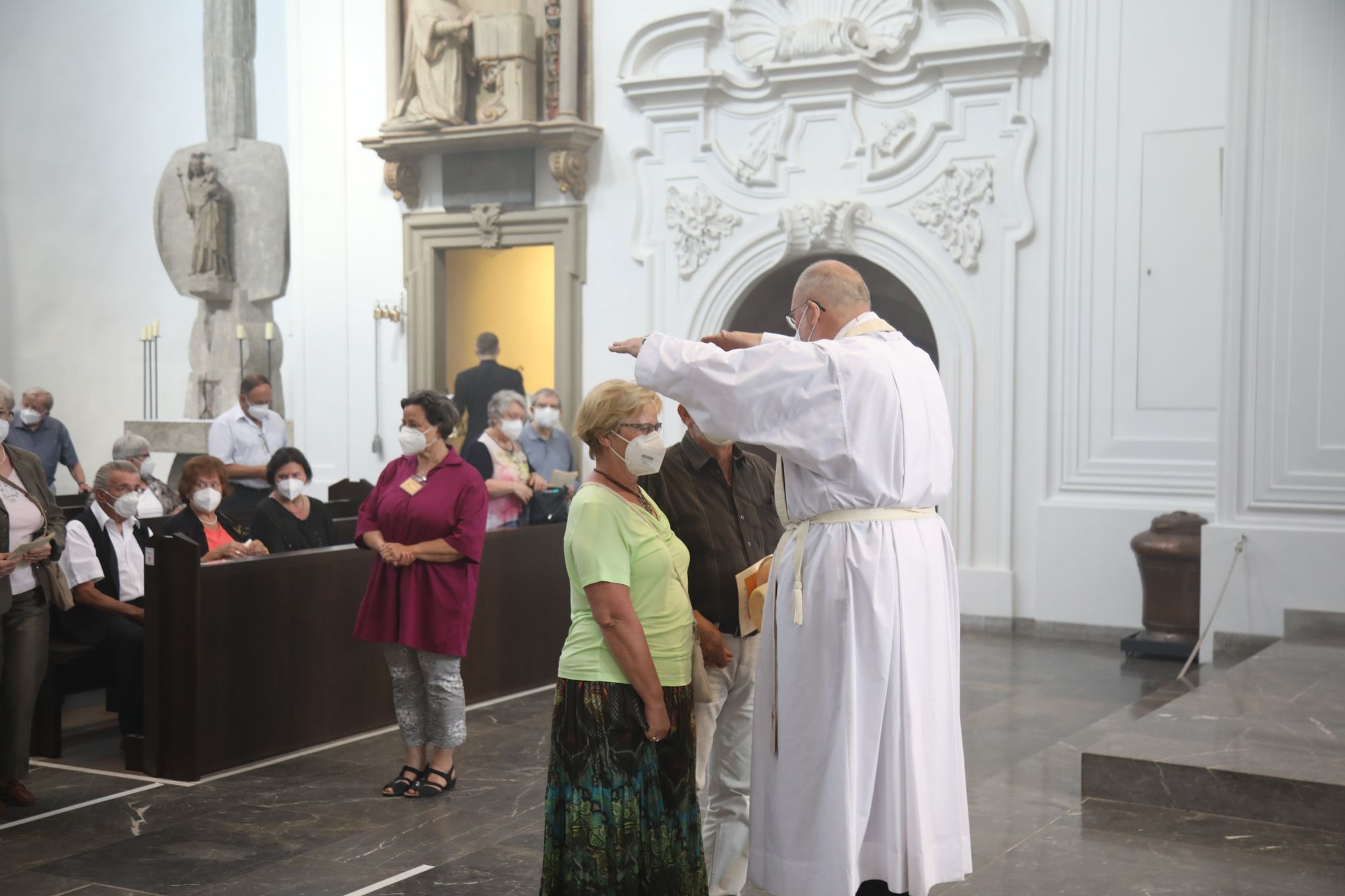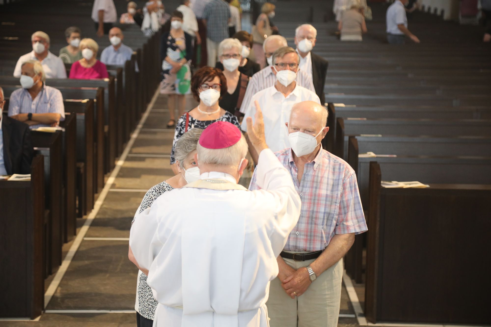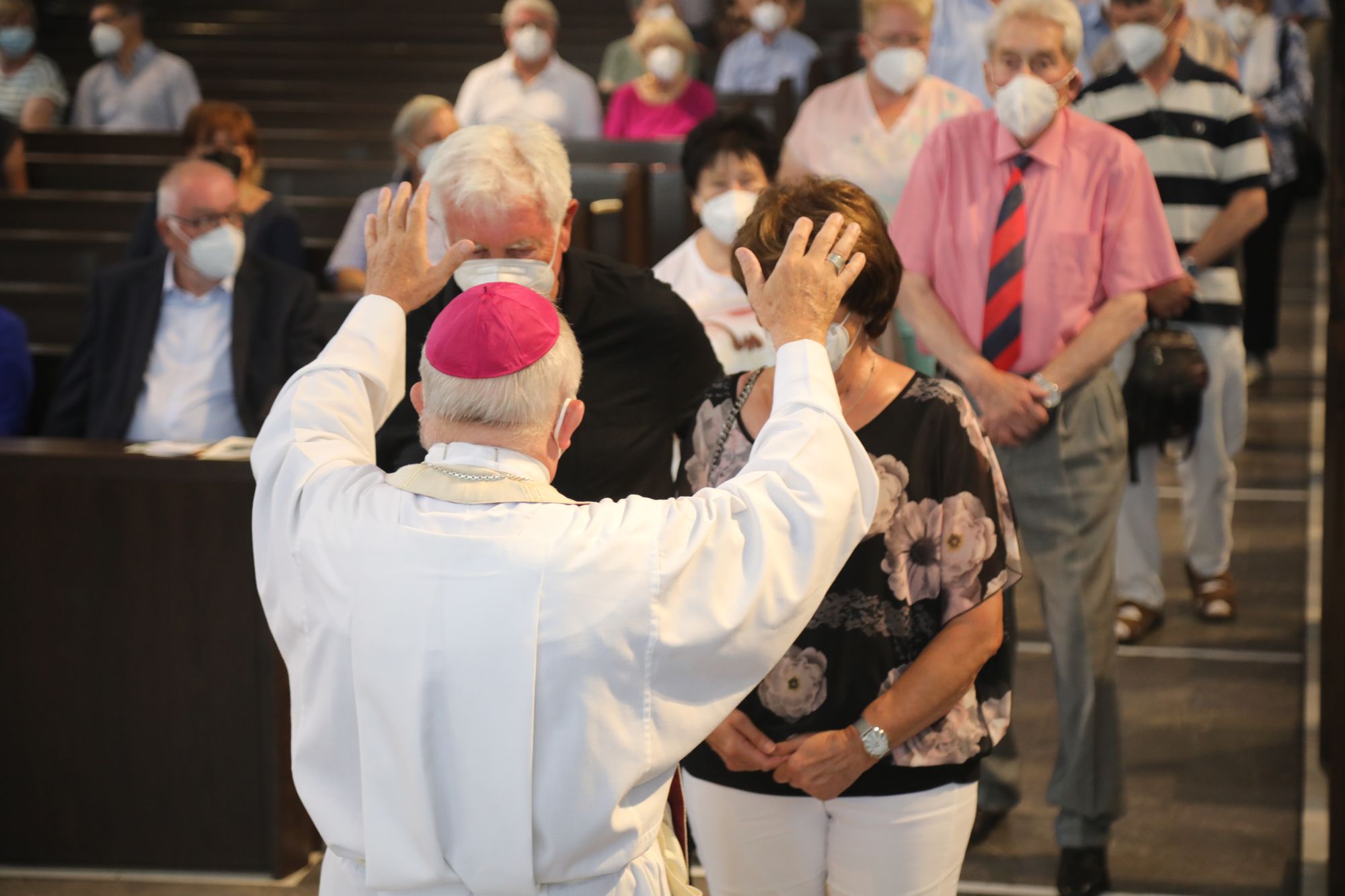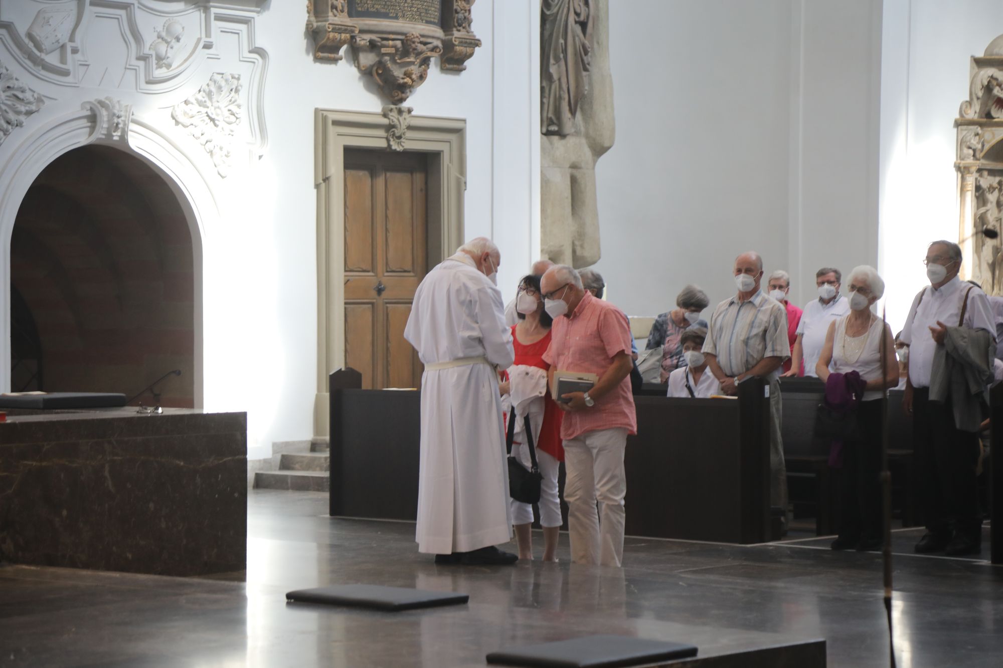 Eingeladen waren Ehejubilare, die in den Jahren 2020 und 2021 ihr goldenes, diamantenes oder eisernes Ehejubiläum feiern. Nach dem Gottesdienst ließen sich die Ehepartner von Weihbischof Boom und weiteren Priestern und Diakonen segnen. Die übliche Begegnung auf dem Kiliansplatz im Anschluss an den Gottesdienst musste aufgrund der Coronapandemie entfallen. Der Dankgottesdienst für Ehejubilare war der achte von insgesamt 18, die vor der diesjährigen Kiliani-Wallfahrtswoche unter den aktuellen Corona-Schutzmaßnahmen stattfinden.