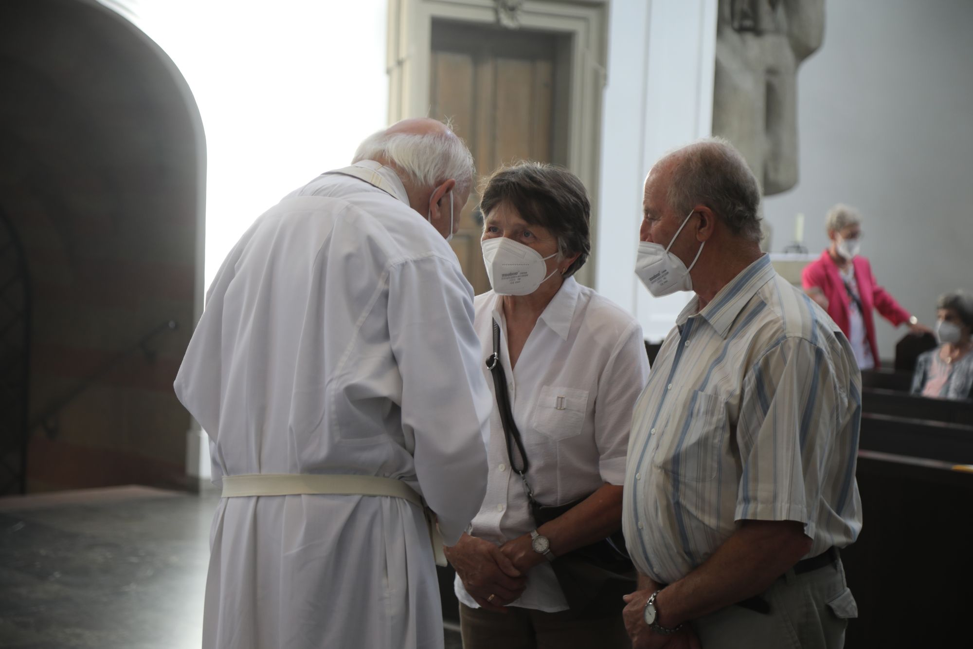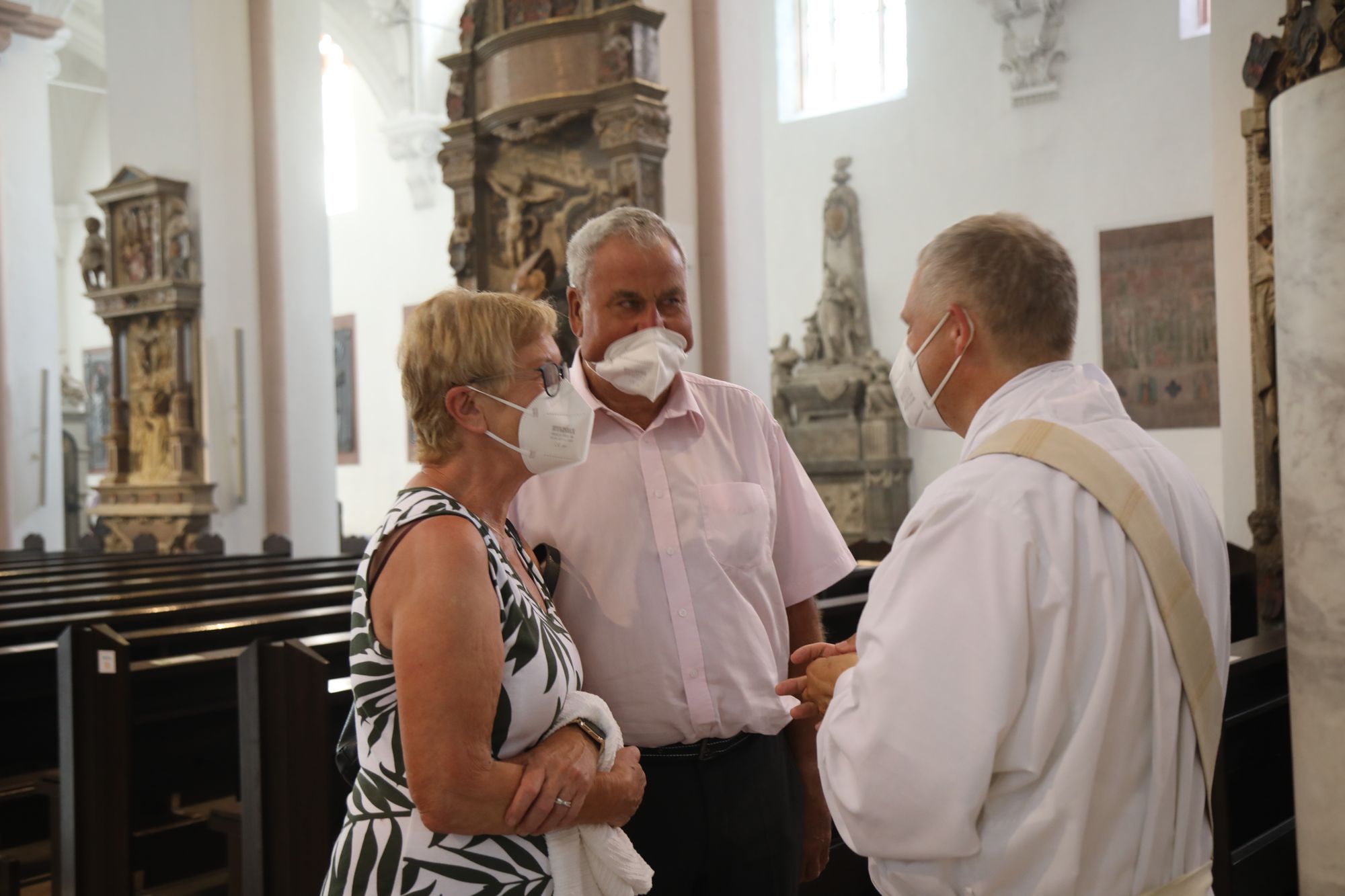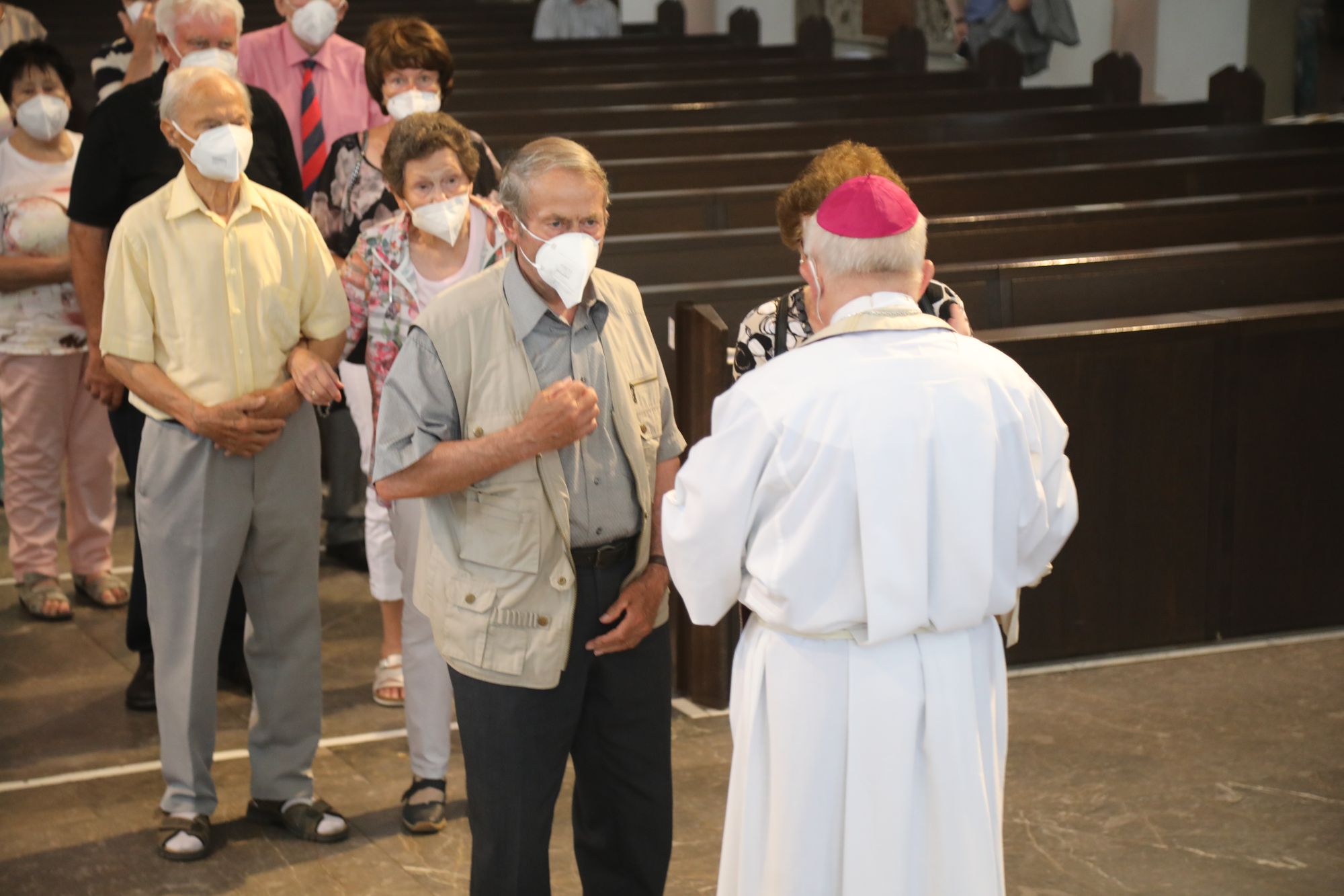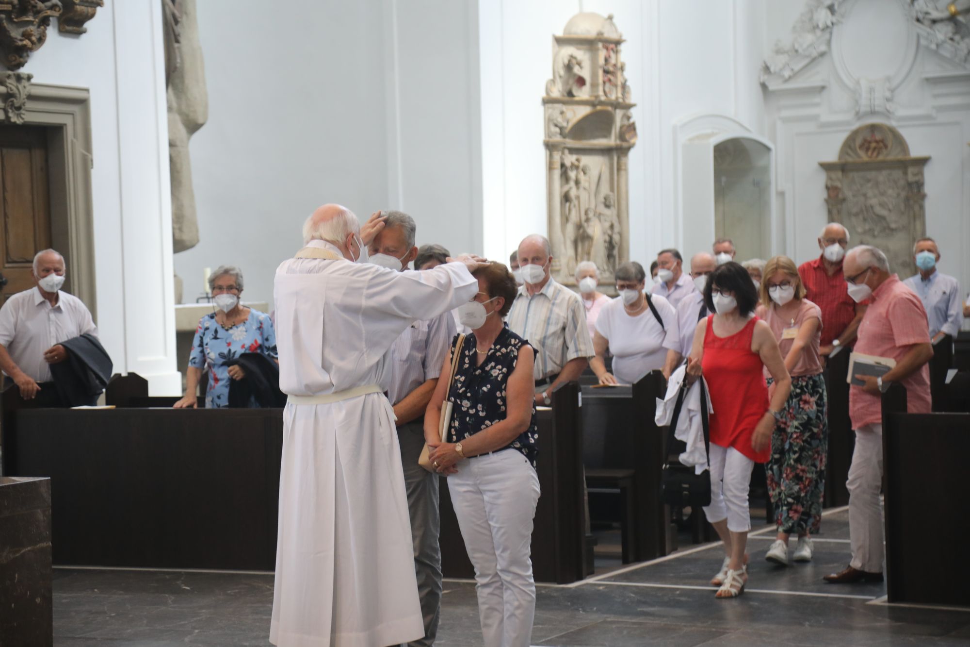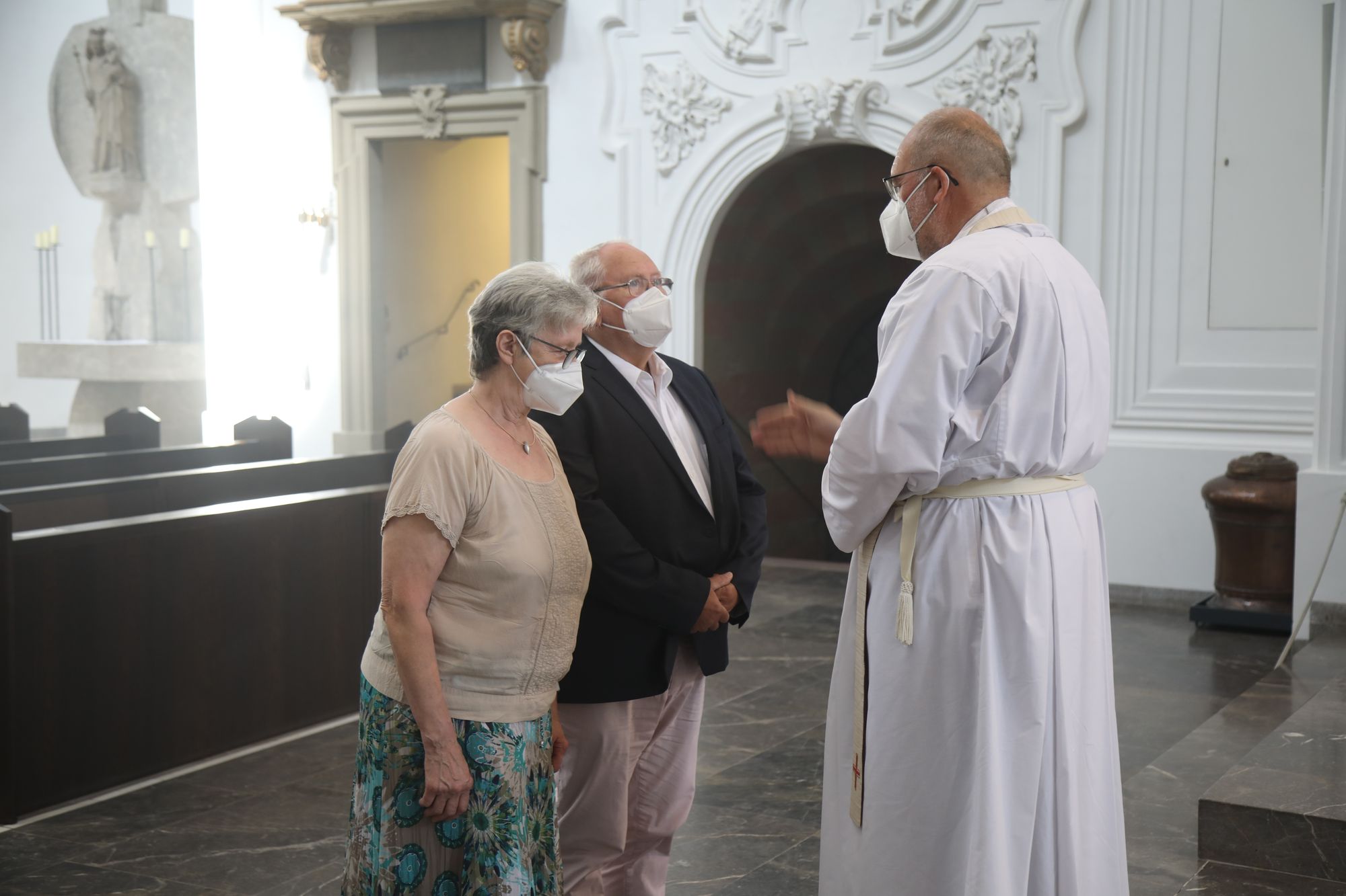 Eingeladen waren Ehejubilare, die in den Jahren 2020 und 2021 ihr goldenes, diamantenes oder eisernes Ehejubiläum feiern. Nach dem Gottesdienst ließen sich die Ehepartner von Weihbischof Boom und weiteren Priestern und Diakonen segnen. Die übliche Begegnung auf dem Kiliansplatz im Anschluss an den Gottesdienst musste aufgrund der Coronapandemie entfallen. Der Dankgottesdienst für Ehejubilare war der achte von insgesamt 18, die vor der diesjährigen Kiliani-Wallfahrtswoche unter den aktuellen Corona-Schutzmaßnahmen stattfinden.