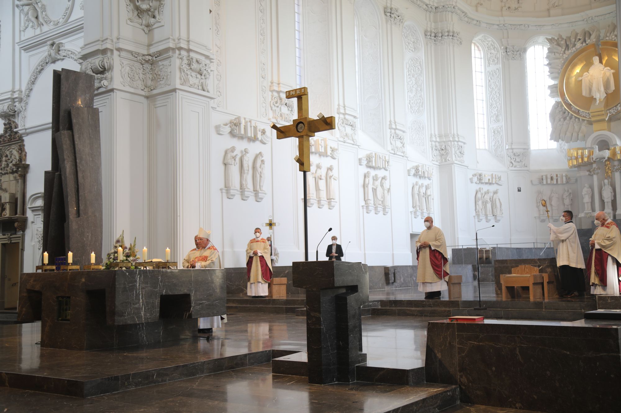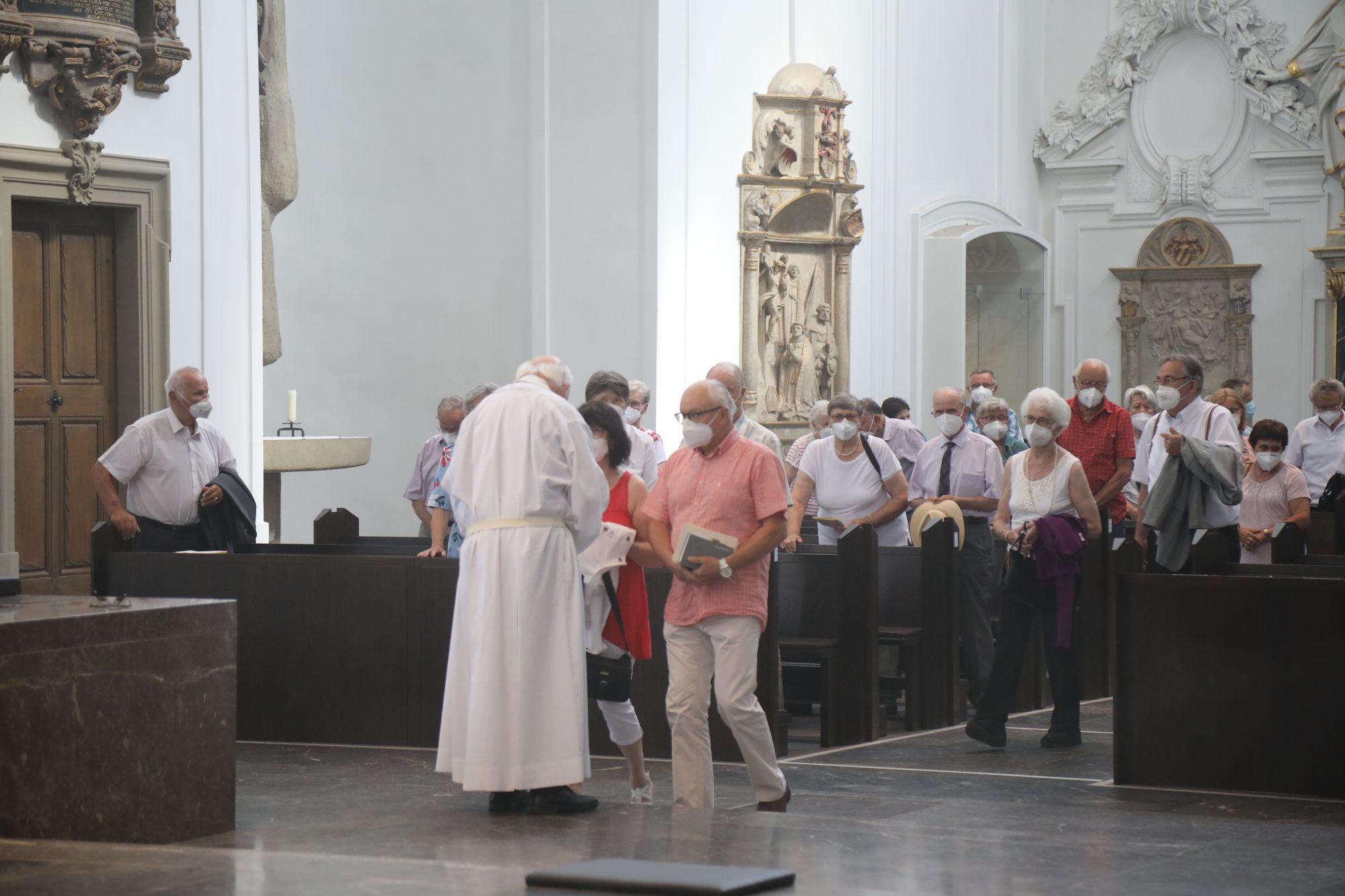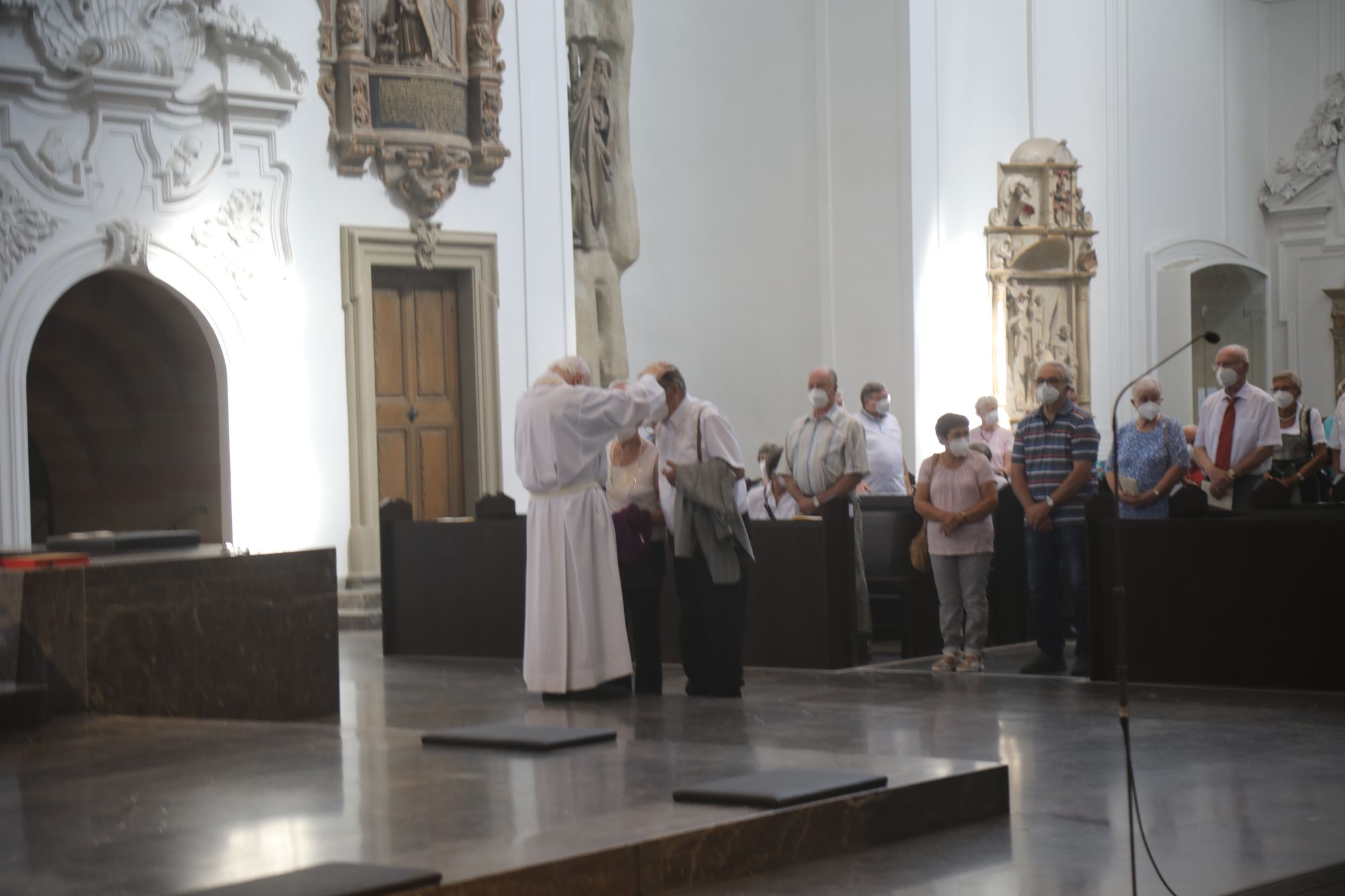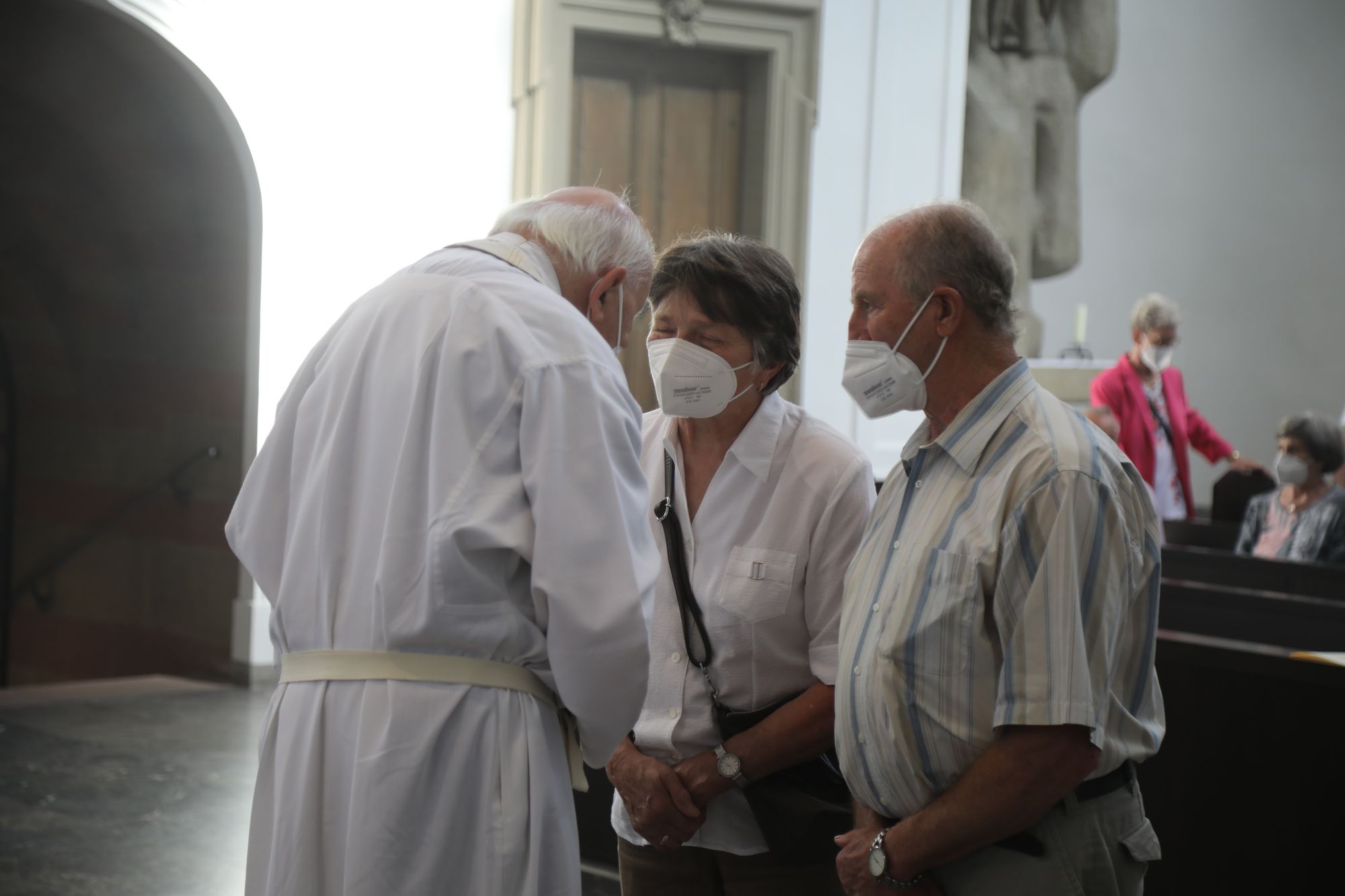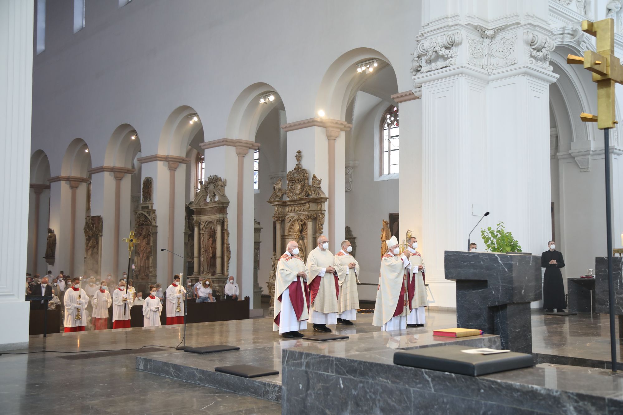 Eingeladen waren Ehejubilare, die in den Jahren 2020 und 2021 ihr goldenes, diamantenes oder eisernes Ehejubiläum feiern. Nach dem Gottesdienst ließen sich die Ehepartner von Weihbischof Boom und weiteren Priestern und Diakonen segnen. Die übliche Begegnung auf dem Kiliansplatz im Anschluss an den Gottesdienst musste aufgrund der Coronapandemie entfallen. Der Dankgottesdienst für Ehejubilare war der achte von insgesamt 18, die vor der diesjährigen Kiliani-Wallfahrtswoche unter den aktuellen Corona-Schutzmaßnahmen stattfinden.