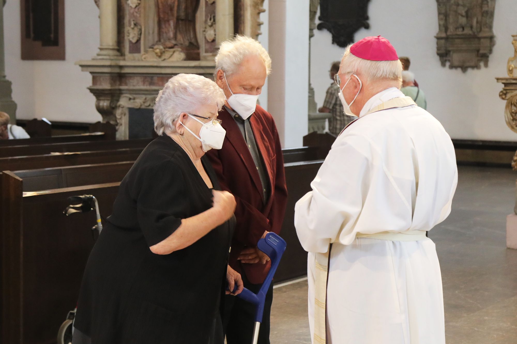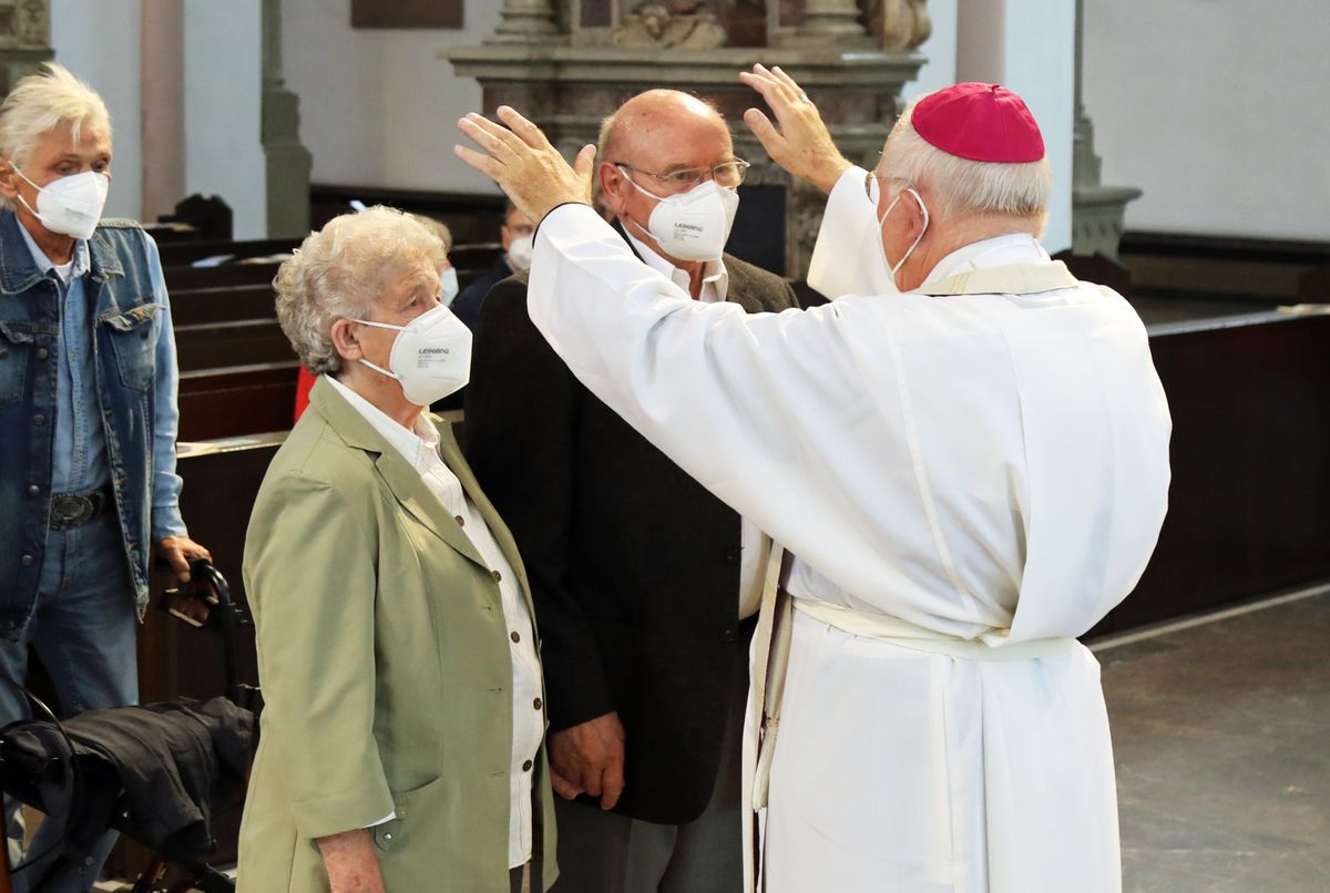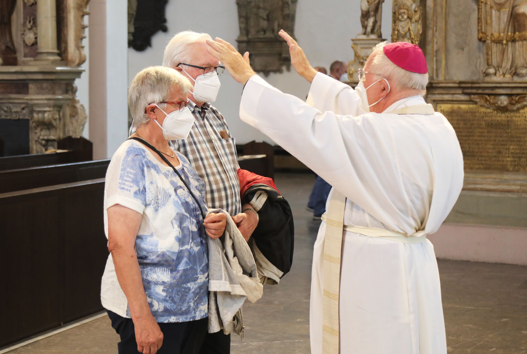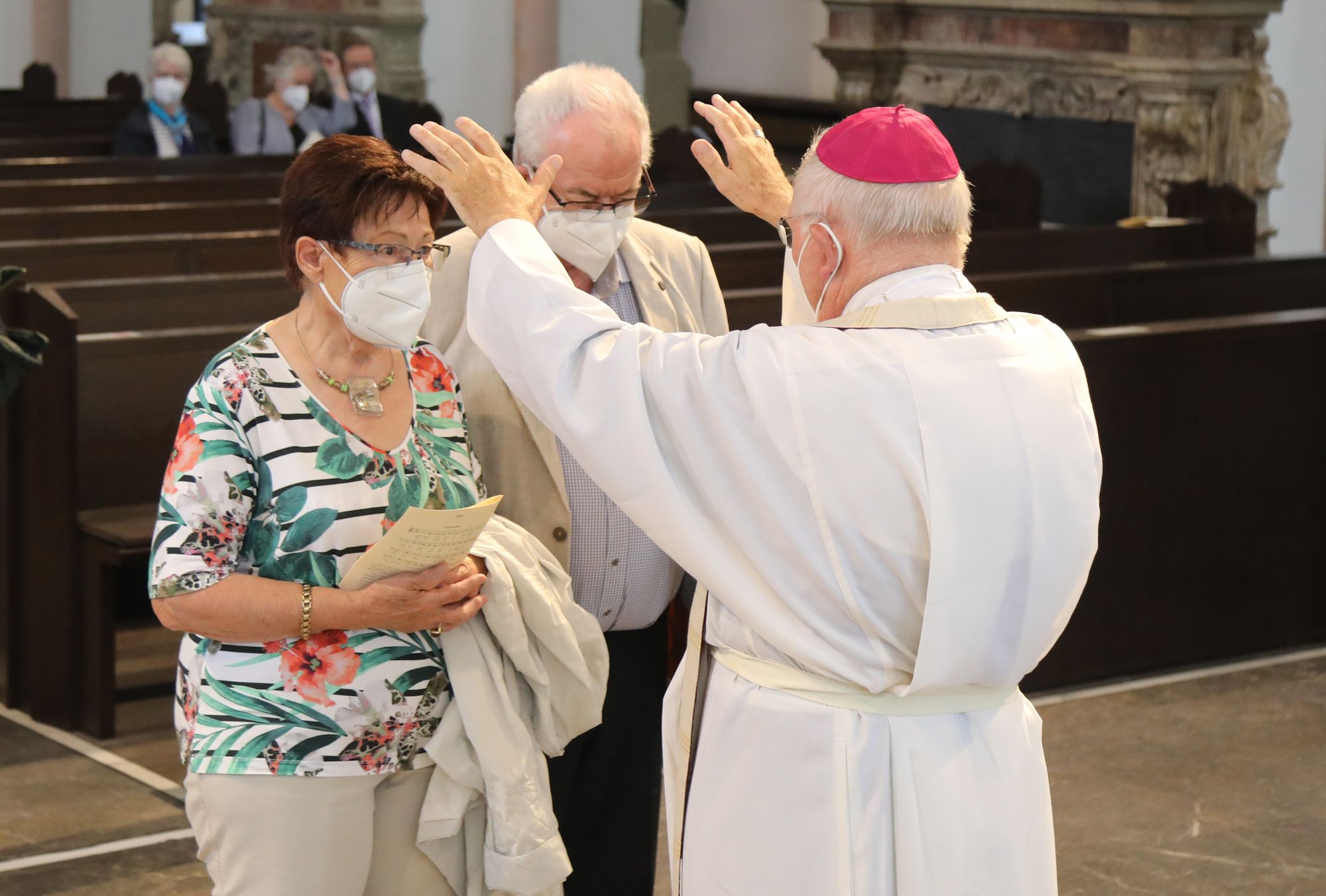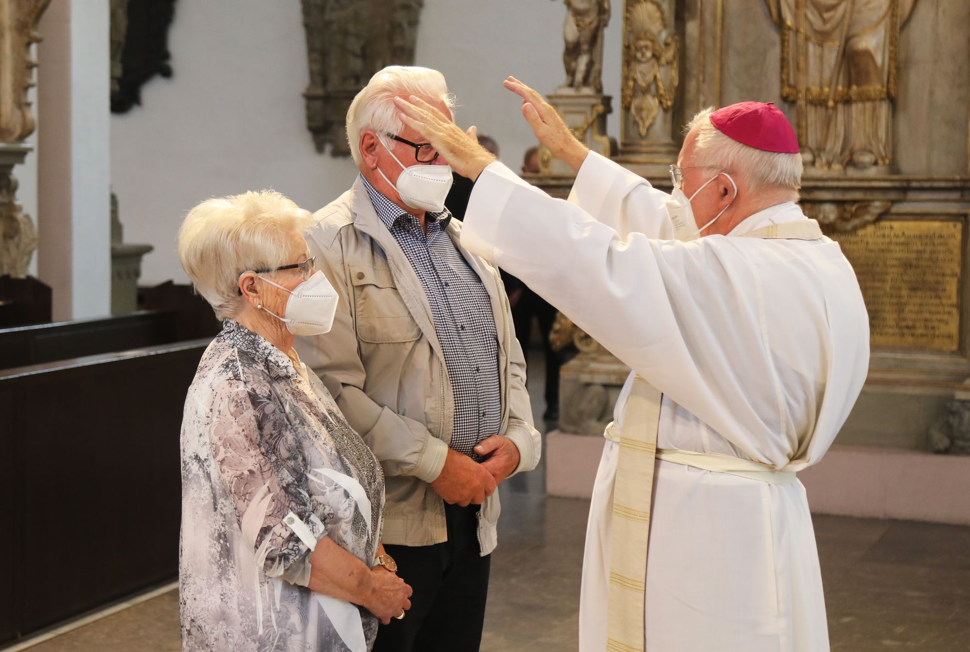 Eingeladen waren Ehejubilare, die in den Jahren 2020 und 2021 ihr goldenes, diamantenes oder eisernes Ehejubiläum feiern. Nach dem Gottesdienst ließen sich die Ehepartner von Weihbischof Boom und weiteren Priestern und Diakonen mit Abstand segnen. Aufgrund der Coronapandemie musste die übliche Begegnung auf dem Kiliansplatz im Anschluss an den Gottesdienst entfallen. Der Dankgottesdienst für Ehejubilare war der 14. von insgesamt 18, die vor der diesjährigen Kiliani-Wallfahrtswoche unter den aktuellen Corona-Schutzmaßnahmen stattfinden.