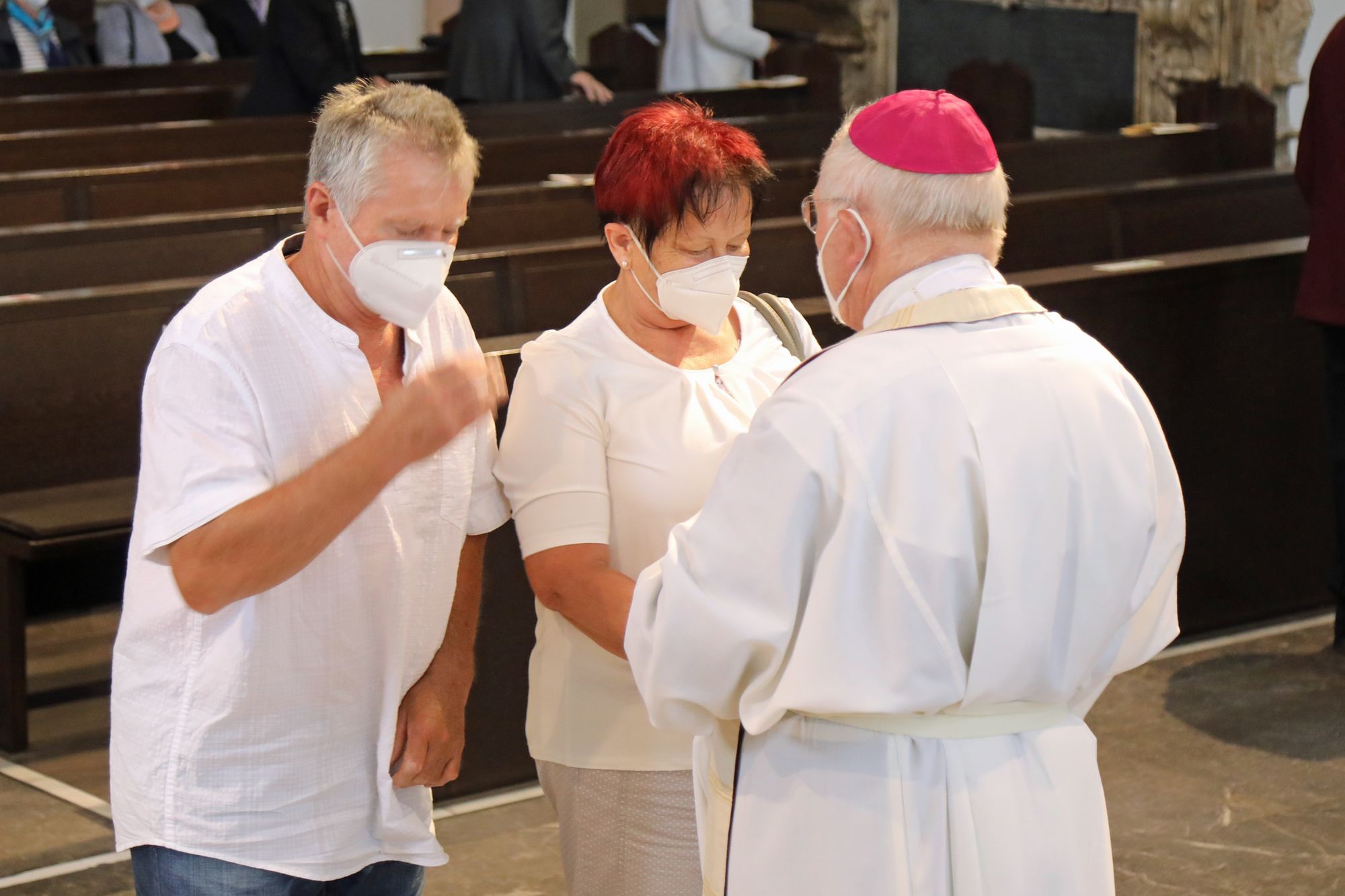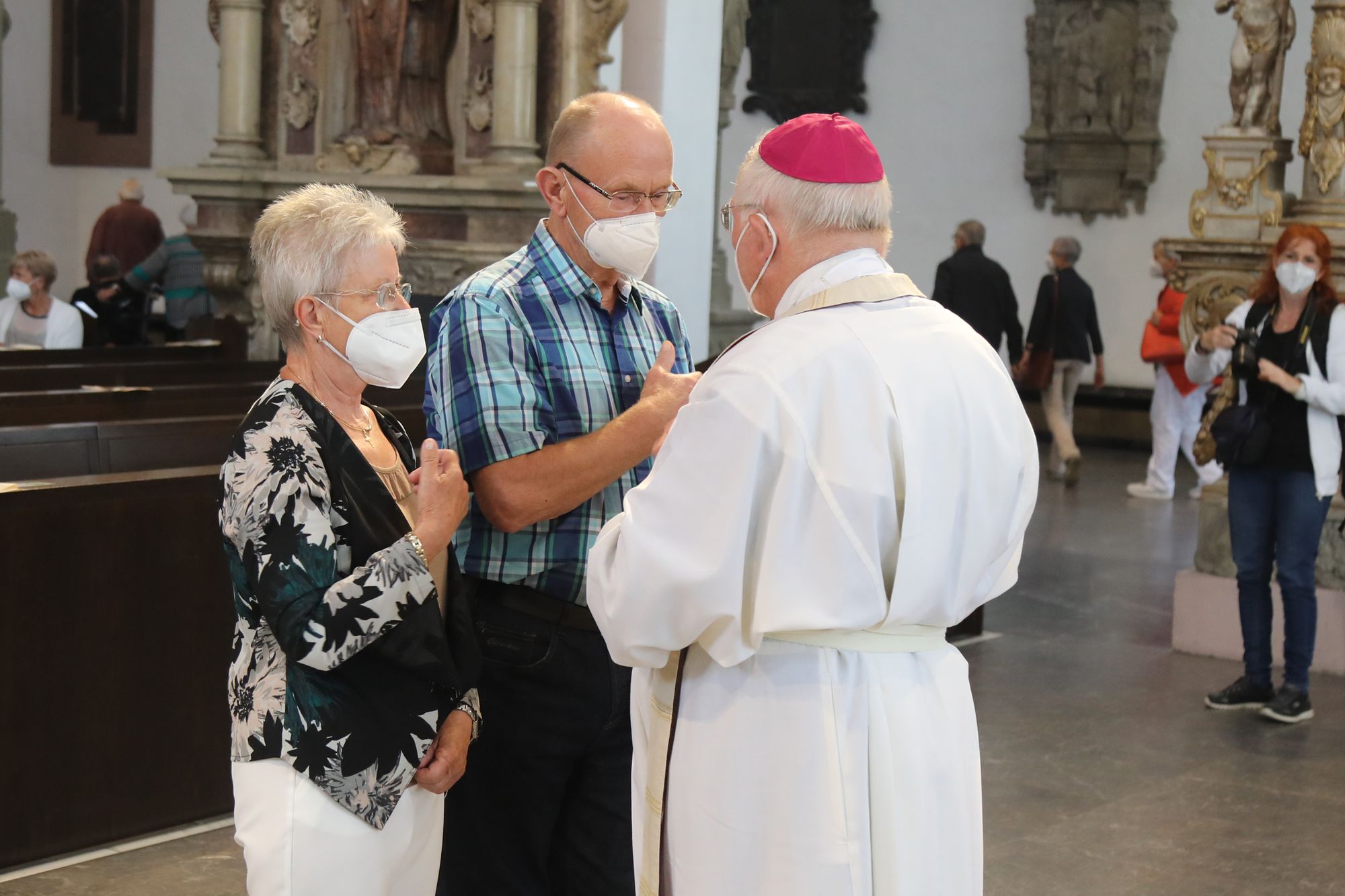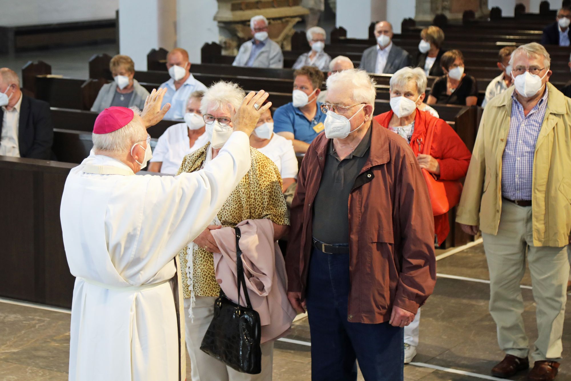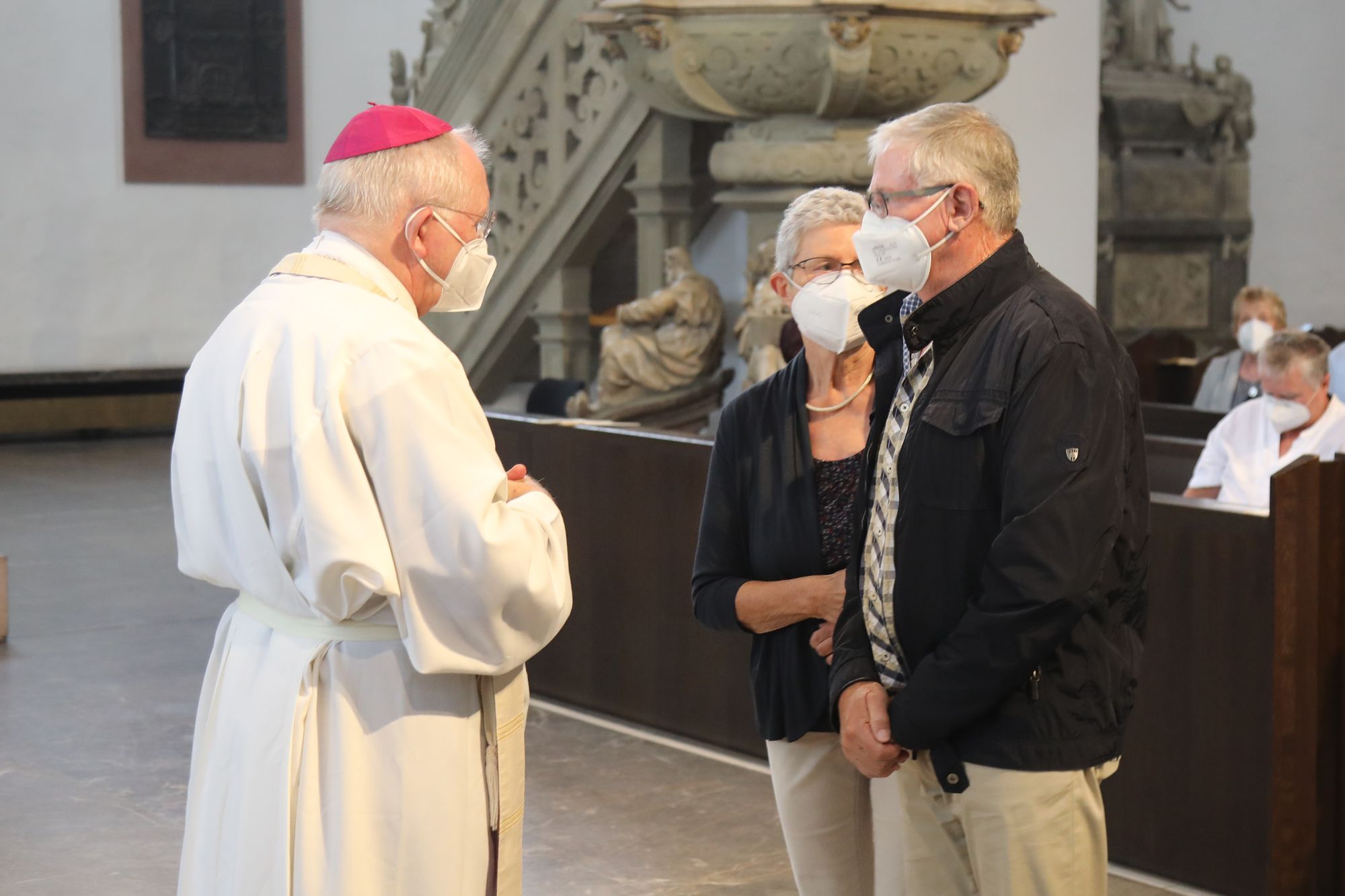Eingeladen waren Ehejubilare, die in den Jahren 2020 und 2021 ihr goldenes, diamantenes oder eisernes Ehejubiläum feiern. Nach dem Gottesdienst ließen sich die Ehepartner von Weihbischof Boom und weiteren Priestern und Diakonen mit Abstand segnen. Aufgrund der Coronapandemie musste die übliche Begegnung auf dem Kiliansplatz im Anschluss an den Gottesdienst entfallen. Der Dankgottesdienst für Ehejubilare war der 14. von insgesamt 18, die vor der diesjährigen Kiliani-Wallfahrtswoche unter den aktuellen Corona-Schutzmaßnahmen stattfinden.
