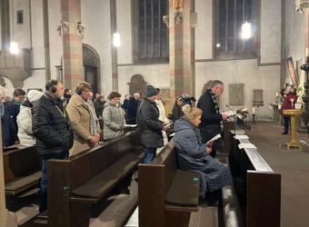 Von der Hoffnung sprach auch Pfarrer Dr. Matthias Leineweber, der dem Gebet vorstand. Er betonte: „Das Gebet ist keine Schwäche.“ Es gebe keinen Sieg im Krieg, sondern der Sieg sei der Frieden. „Jeder Krieg und jede Gewalt richtet sich gegen einen Bruder oder eine Schwester, weil wir alle Geschwister im Glauben sind.“ Er sicherte den Ukrainerinnen und Ukrainern volle Solidarität und Liebe zu.