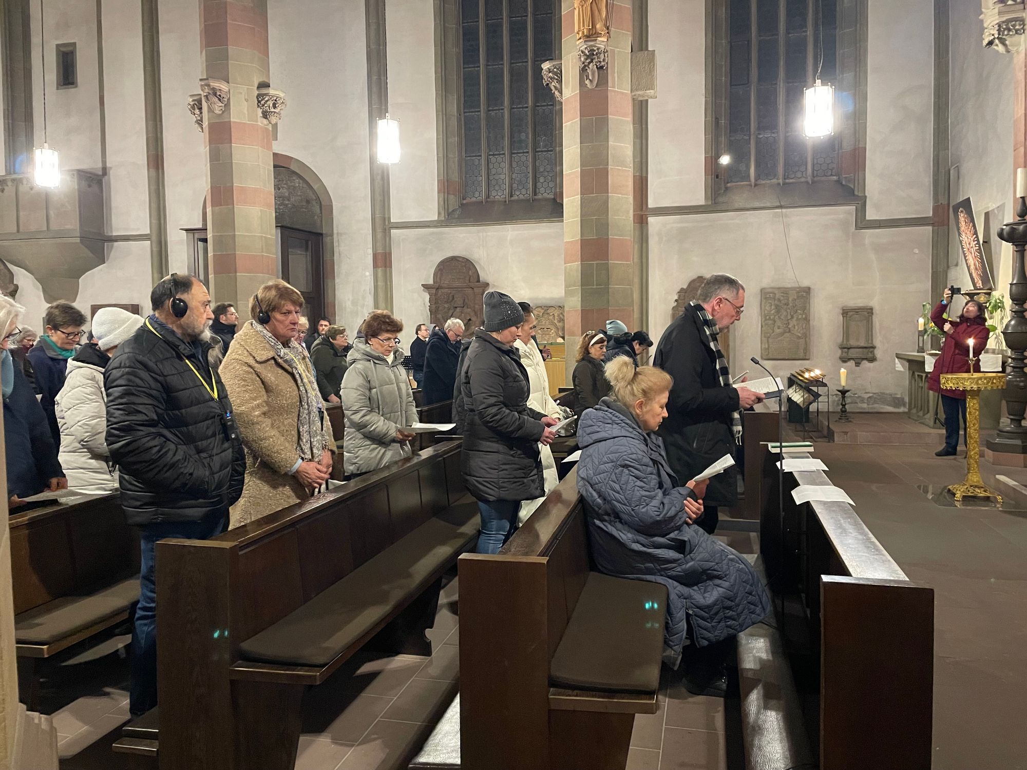 Zum Gedenken an die Kriegsopfer aus der Ukraine wurde ein Blumenstrauß auf den Altar getragen. Im Gebet wurde der Opfer aller Kriege gedacht und für ein Ende der weltweiten Gewalt gebetet. Bei der Nennung einzelner Regionen, in denen Krieg herrscht, wurden Kerzen entzündet.