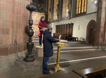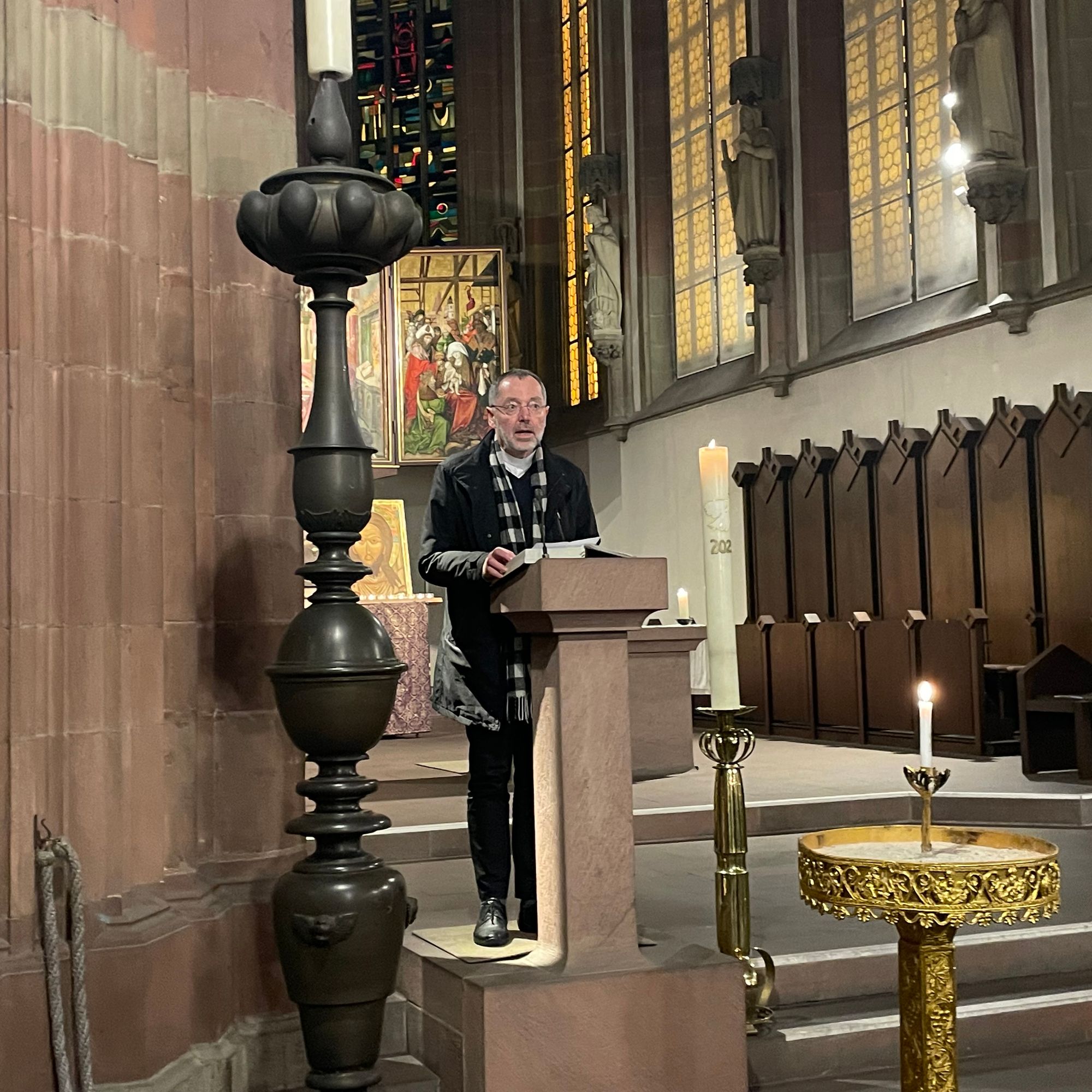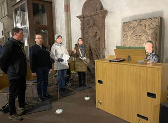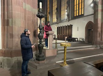 Auch Würzburgerinnen und Würzburger nahmen an dem Gebet teil, um ihre Solidarität zum Ausdruck zu bringen. Beispielsweise Johannes Reder. Der 30-Jährige engagiert sich bereits seit mehreren Jahren bei der Gemeinschaft Sant’Egidio: „Das ist mir einerseits wichtig, weil mir die Erinnerung an den Kriegsausbruch sehr präsent ist. Als der Krieg vor vier Jahren begonnen hat, hat mich das sehr beschäftigt. Und über diese vier Jahre sind auch viele Beziehungen zu ukrainischen Geflüchteten, die inzwischen in Würzburg leben, gewachsen.“ Das gemeinsame Gebet halte er für wichtig: „Ich glaube, einen Krieg zu beenden bedeutet zuallererst, seine Herzen zu öffnen und zu verändern. Und nur so können Wege des Dialogs begonnen werden. Ich glaube, so ist oftmals das Gebet der erste Schritt, um etwas an der Situation ändern zu können. Gleichzeitig glaube ich aber auch, dass das Gebet das Leid der Menschen lindern kann. Sie finden einen Ort, wo sie ihre Fragen, Sorgen und Nöte hinbringen können.“