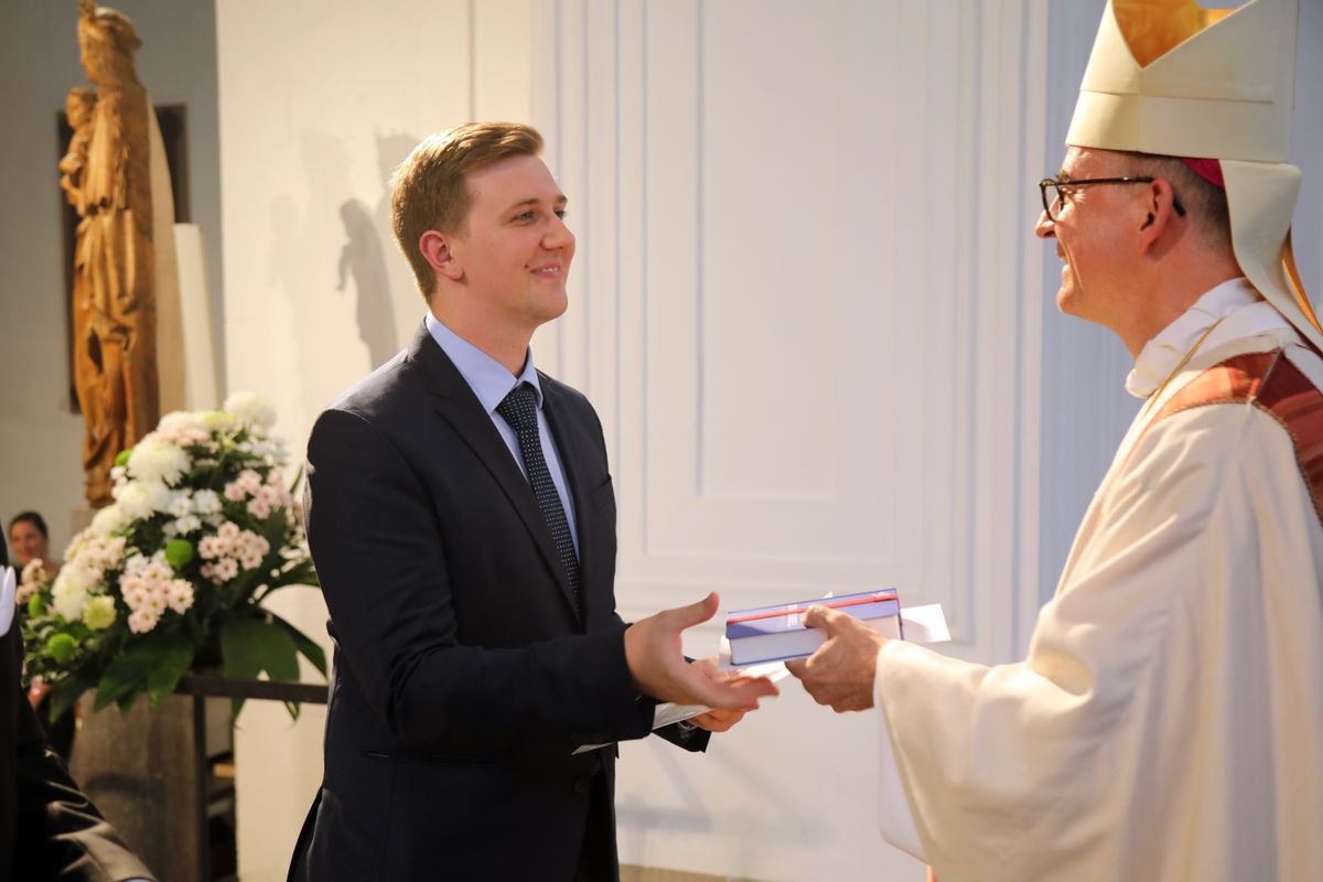 Bischof Dr. Franz Jung beauftragt Lukas Lunk als Pastoralreferenten.