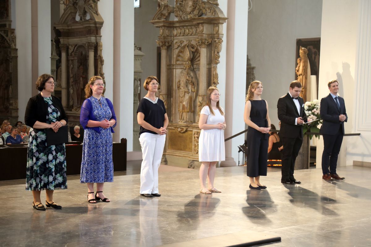 Würzburg (POW) Bischof Dr. Franz Jung hat bei einem Gottesdienst am Freitagabend, 18. Juli, im Würzburger Kiliansdom fünf Frauen und zwei Männer zum Dienst als Gemeinde- oder Pastoralreferenten und -referentinnen beauftragt. Maria Düchs (50), Angelika Joachim (53), Susanne Köhler (48) und Annette Sobán (30) begrüßte er als Gemeindereferentinnen. Elisabeth Baumann (27), Kevin Krämer (29) und Lukas Lunk (28) ernannte er zur Pastoralreferentin beziehungsweise -referenten. Mit den neu Beauftragten gibt es derzeit 131 Pastoralreferentinnen und -referenten sowie 102 Gemeindereferentinnen und -referenten im Bistum Würzburg.