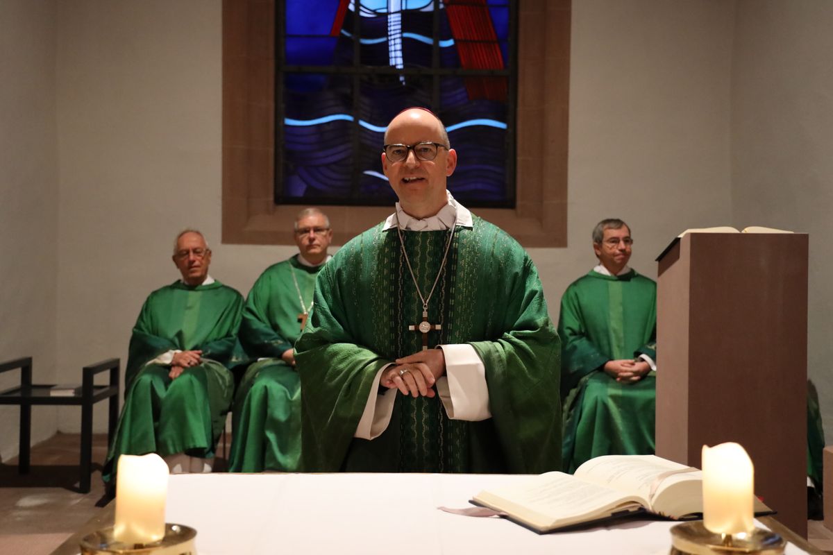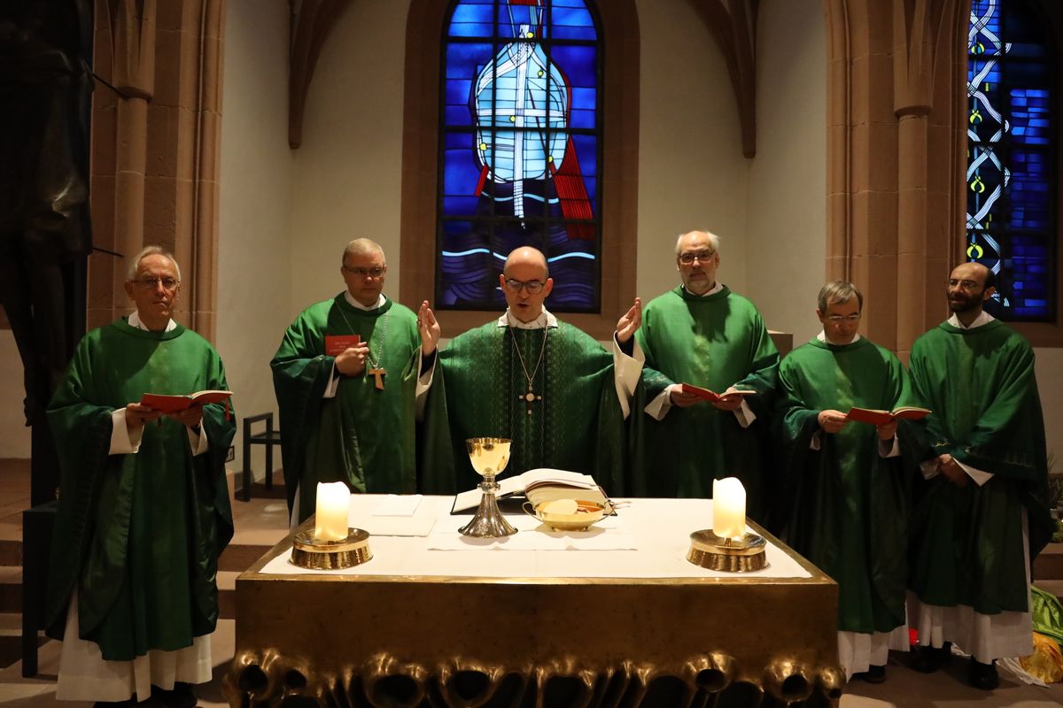 Würzburg (POW) Wie der Verwalter im Lukasevangelium seien alle Menschen aufgerufen zu erkennen, dass es so nicht mehr weitergehen könne. „Wir müssen alle sehen, dass es einen Einfluss auf die gesamte Erde und Umwelt hat, wie sich die Lage am Amazonas entwickelt.“ Das hat Bischof Dr. Franz Jung am Freitag, 8. November, bei einem Gottesdienst in der Sepultur des Würzburger Kiliansdoms vor den Teilnehmern einer Fachtagung zur Amazonassynode betont. „Wir müssen uns auch fragen lassen, ob wir bereit sind, wirklich umzukehren. Das heißt auch, den bisherigen Lebensstil kritisch zu hinterfragen“, betonte der Bischof. Der Verwalter im biblischen Gleichnis wisse, dass er nur durch ein Netzwerk von Freunden gerettet werden könne. „Gelingt es uns, Allianzen herzustellen, die tragen?“ Der Bischof ermunterte die Gläubigen, auf Jesu Beistand zu vertrauen und diesen zu bitten, dass er an der Seite der Kirche den Weg der Erneuerung mitgehe.