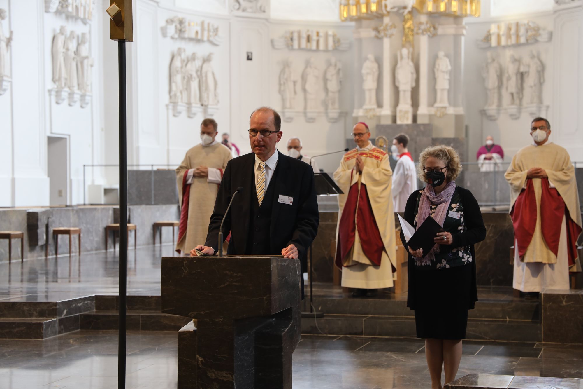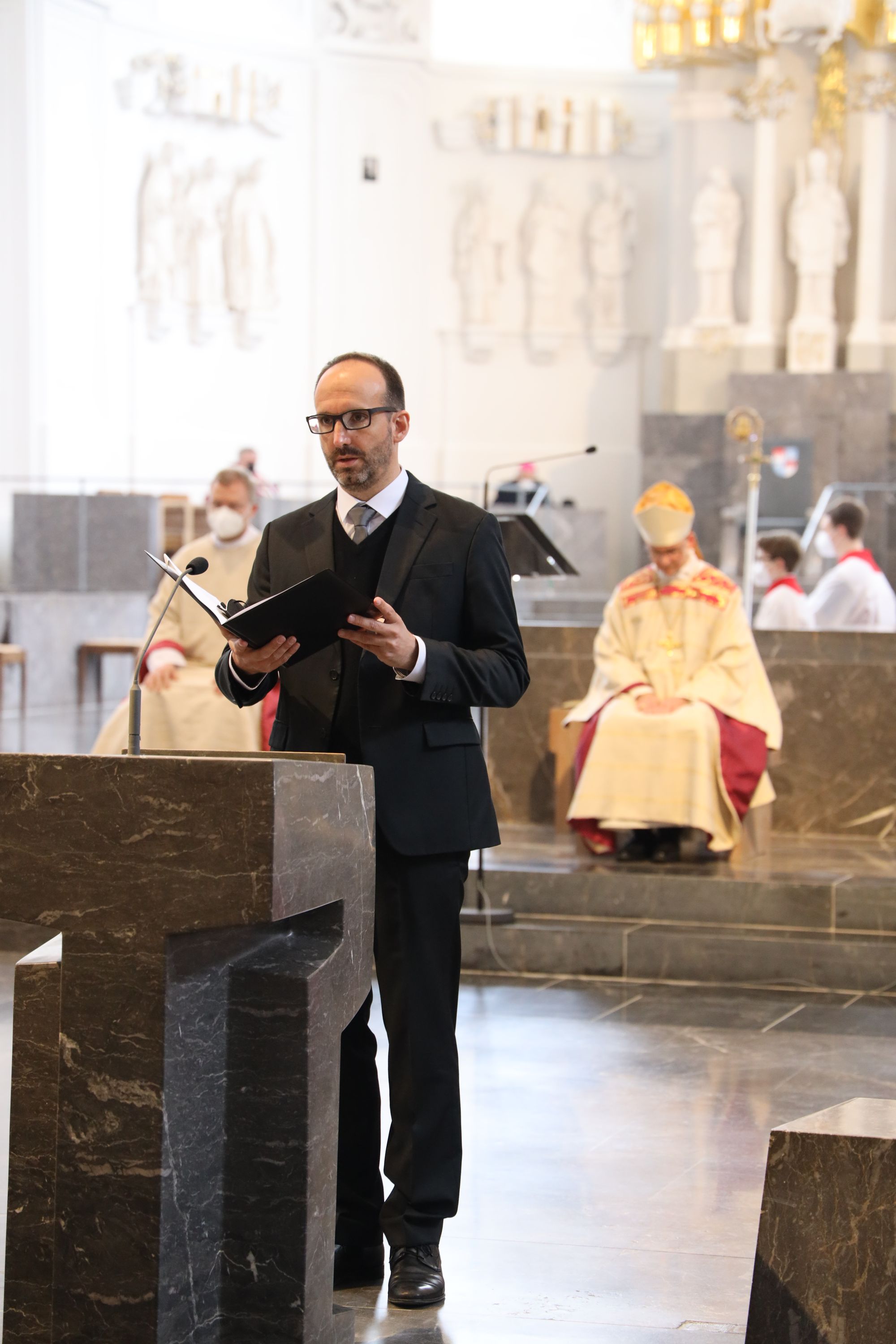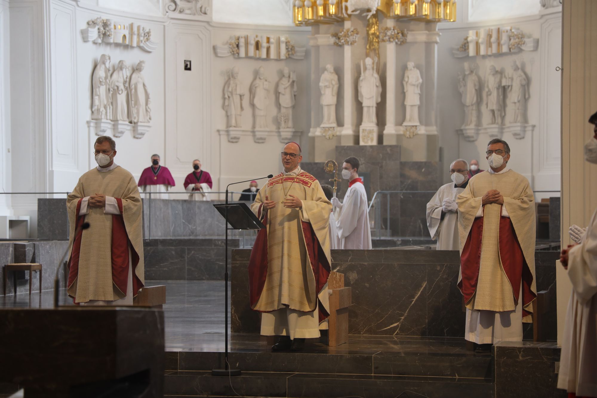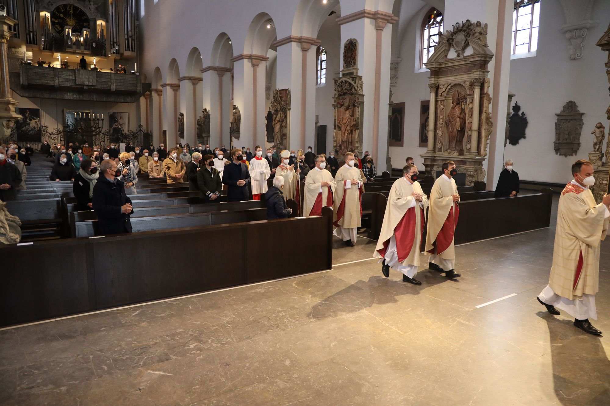 Musikalisch gestalteten Domorganist Professor Stefan Schmidt sowie das Vokalensemble am Würzburger Dom und die Domkapelle unter der Leitung von Domkapellmeister Christian Schmid den Gottesdienst mit Joseph Haydns „Missa brevis Sancti Joannis de Deo, Hob. XXII:7“ und Wolfgang Amadeus Mozarts „Alma Dei creatoris, KV 277“.