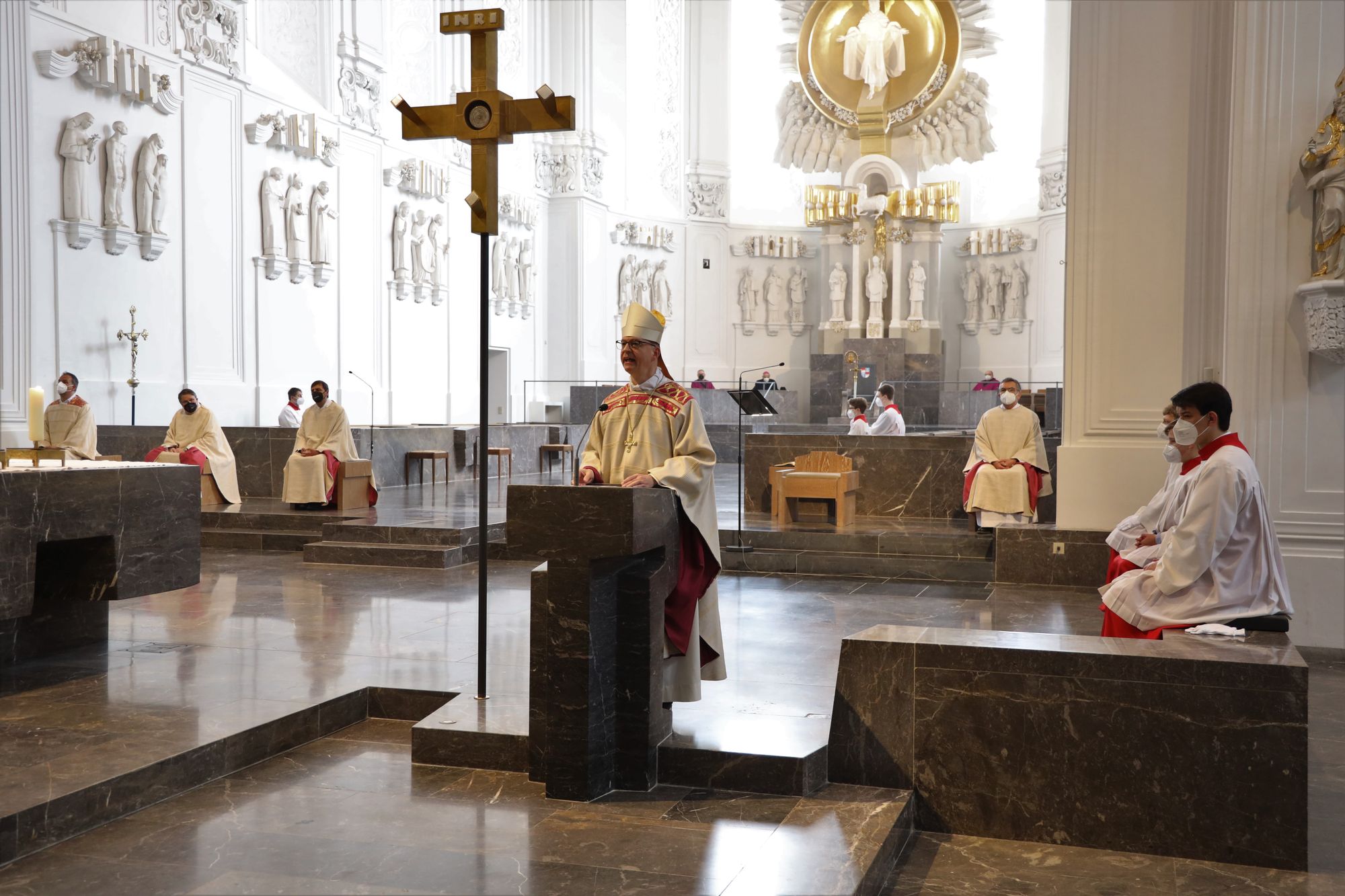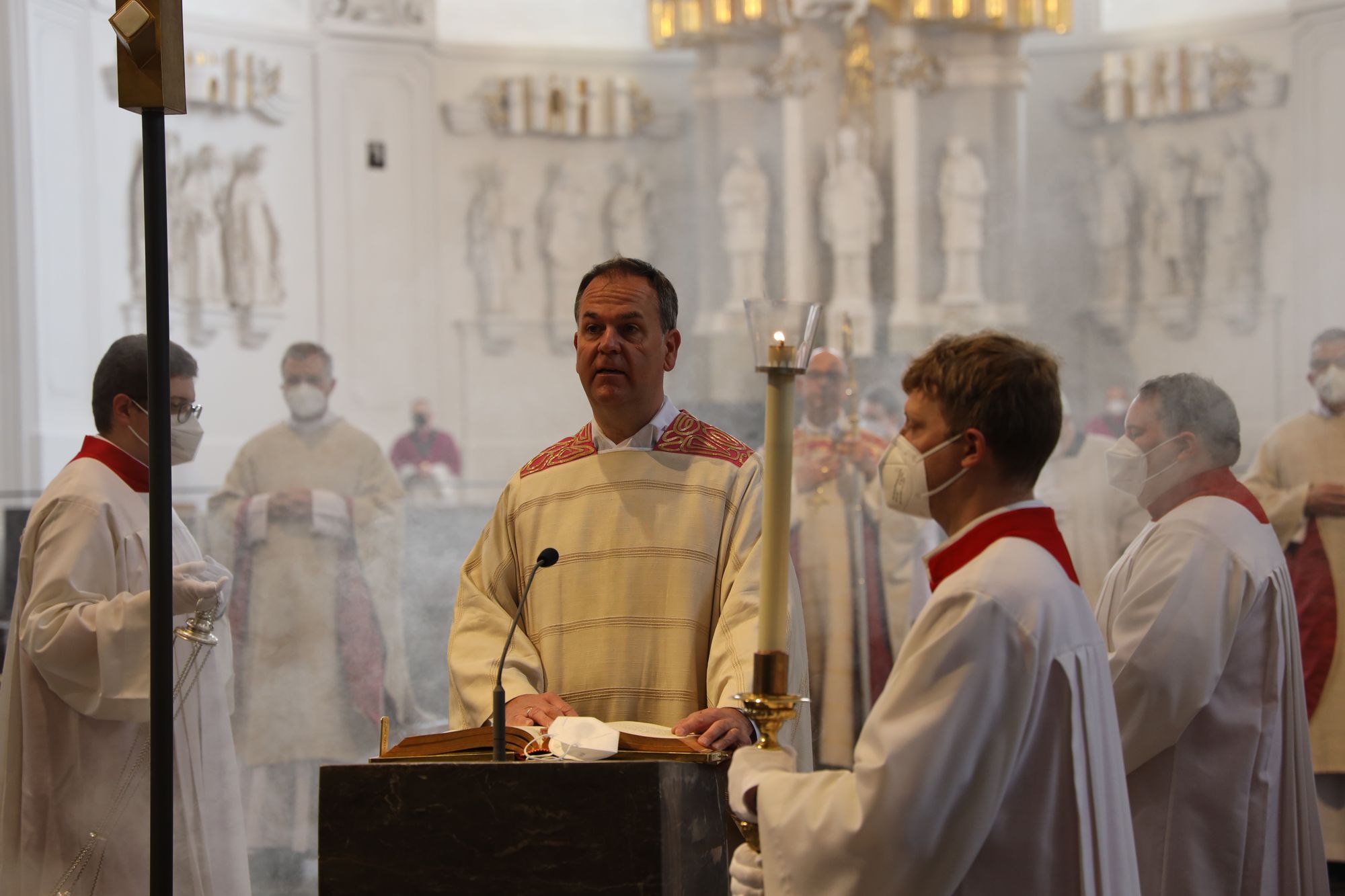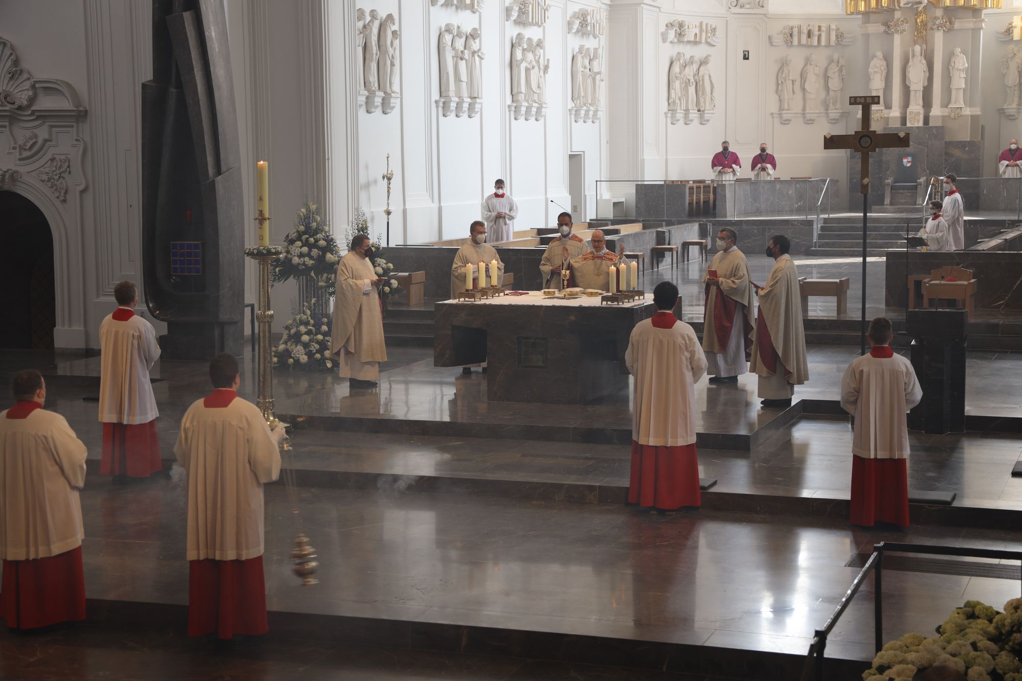 Musikalisch gestalteten Domorganist Professor Stefan Schmidt sowie das Vokalensemble am Würzburger Dom und die Domkapelle unter der Leitung von Domkapellmeister Christian Schmid den Gottesdienst mit Joseph Haydns „Missa brevis Sancti Joannis de Deo, Hob. XXII:7“ und Wolfgang Amadeus Mozarts „Alma Dei creatoris, KV 277“.