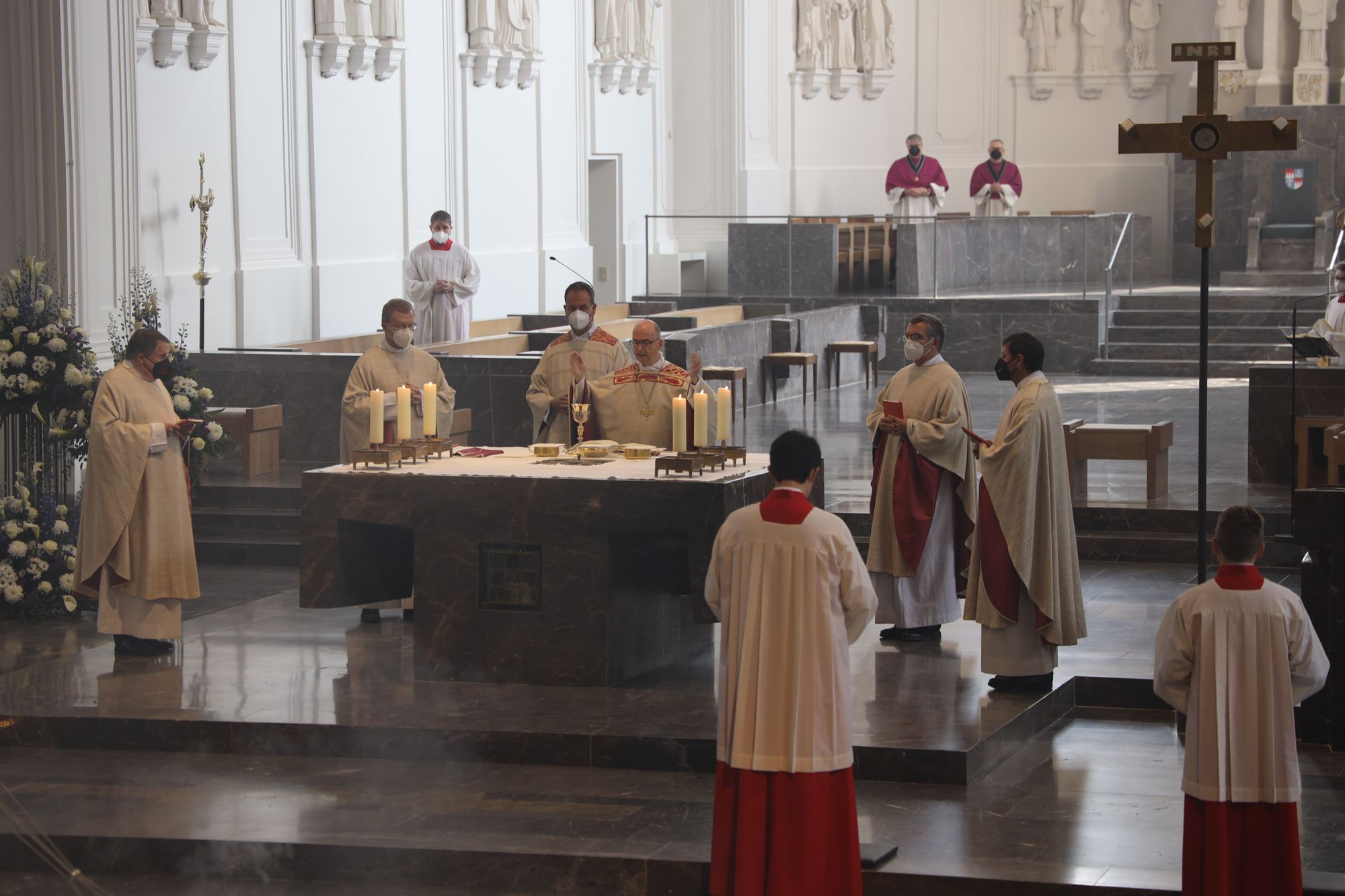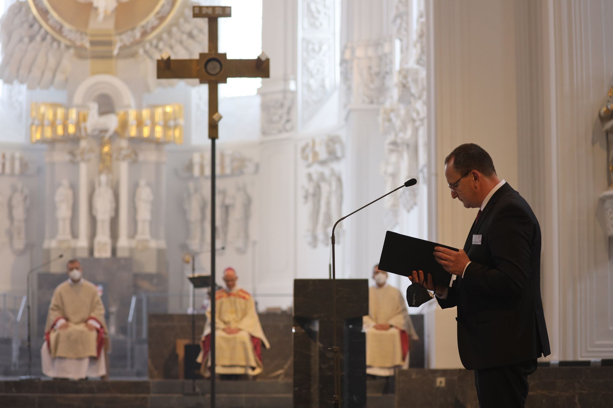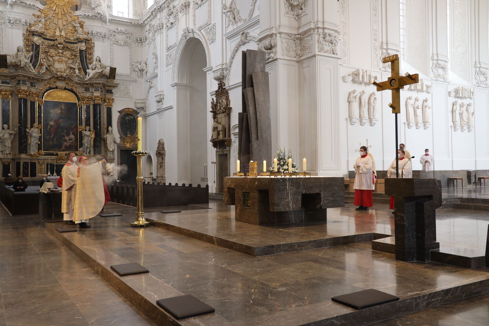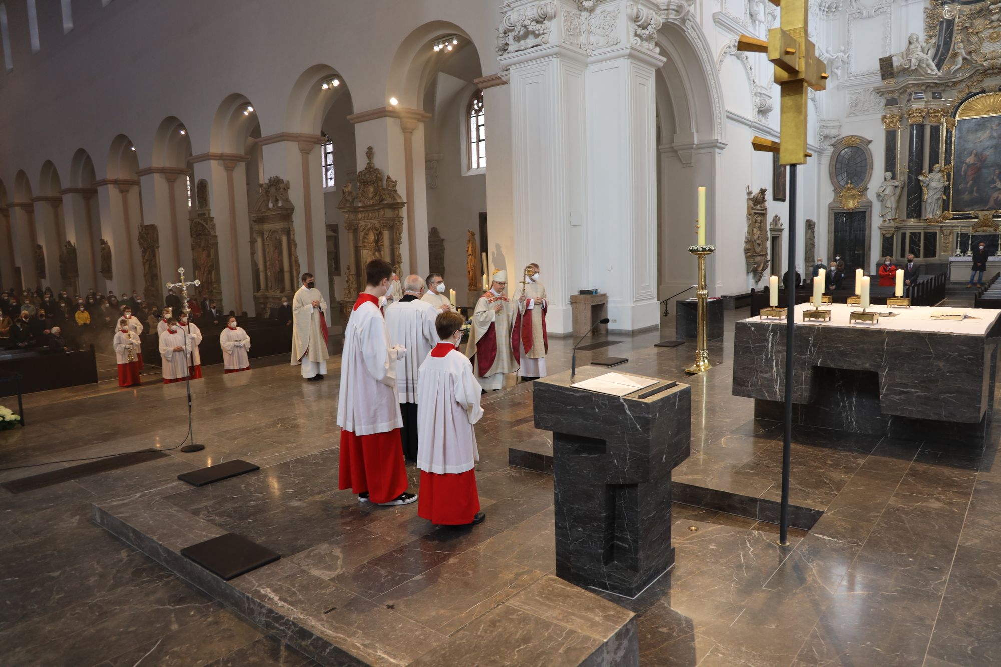 Musikalisch gestalteten Domorganist Professor Stefan Schmidt sowie das Vokalensemble am Würzburger Dom und die Domkapelle unter der Leitung von Domkapellmeister Christian Schmid den Gottesdienst mit Joseph Haydns „Missa brevis Sancti Joannis de Deo, Hob. XXII:7“ und Wolfgang Amadeus Mozarts „Alma Dei creatoris, KV 277“.