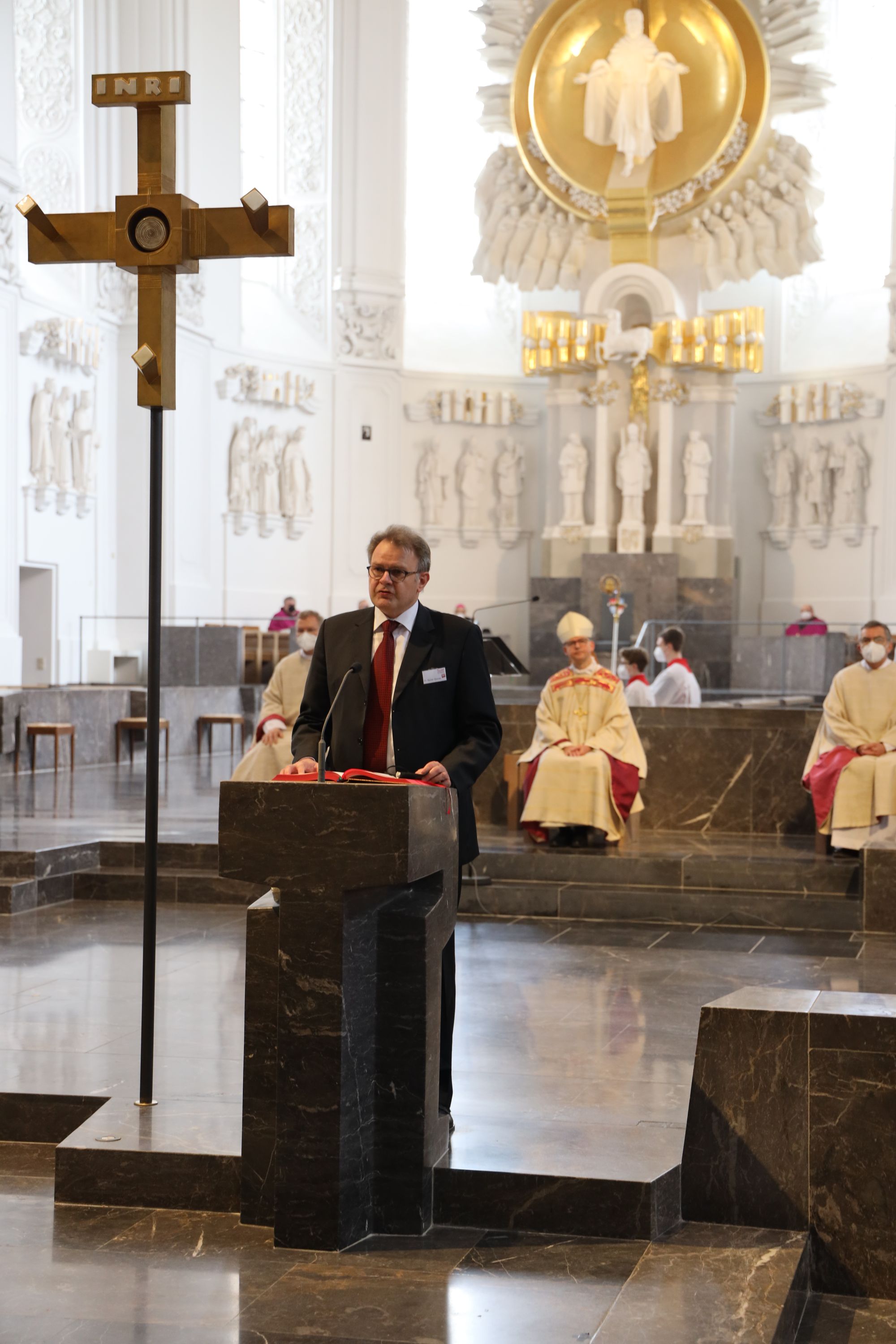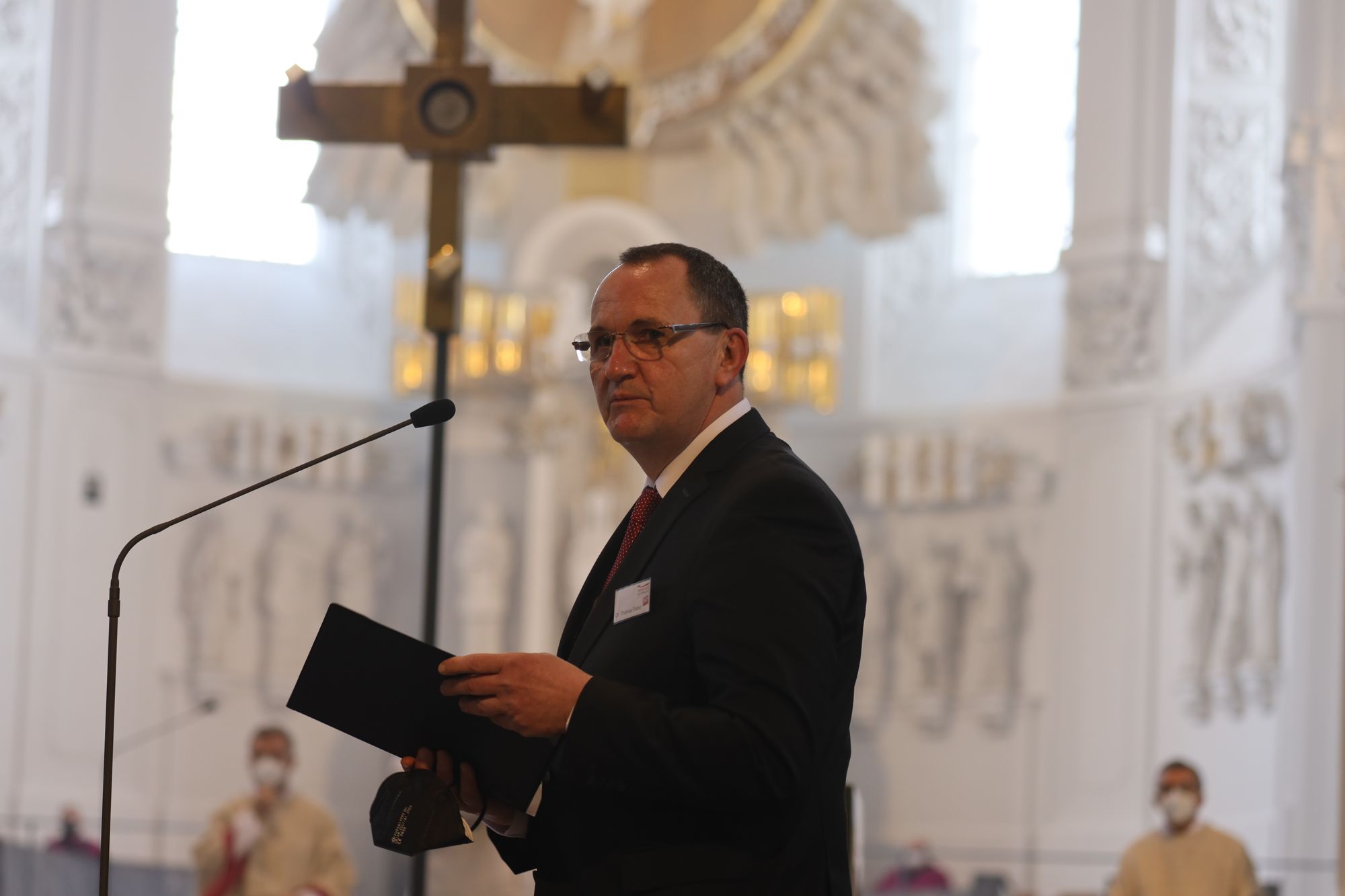 Am Ende des Gottesdiensts zeigte Dr. Thomas Franz, Leiter von „Theologie im Fernkurs“, sich dankbar, dass das Jubiläum auch in der Pandemie gefeiert werden konnte, wenn auch mit einem Jahr Verzögerung. „Im zweiten Anlauf haben wir es geschafft. Wenn auch in reduzierter Form, konnte das Jubiläum heute liturgisch und gestern mit einem digitalen Studientag begangen werden.“ Seine Einrichtung könnte ihre Bildungsarbeit nicht leisten ohne die zahlreichen Theologen und Theologinnen, die als Autoren und Autorinnen der Lehrbriefe, als Referenten und Referentinnen der Studienveranstaltungen, als Korrektorinnen und Korrektoren, Prüfer und Prüferinnen für „Theologie im Fernkurs“ tätig seien. „Von wichtiger Bedeutung sind die Mitglieder des Wissenschaftlichen Beirats und der Projektbeiräte des Religionspädagogischen und Pastoraltheologischen Kurses sowie der Zentralen Prüfungskommission. In 50 Jahren hat sich eine lange Liste mit Hunderten von Namen gefüllt“, erklärte Franz.