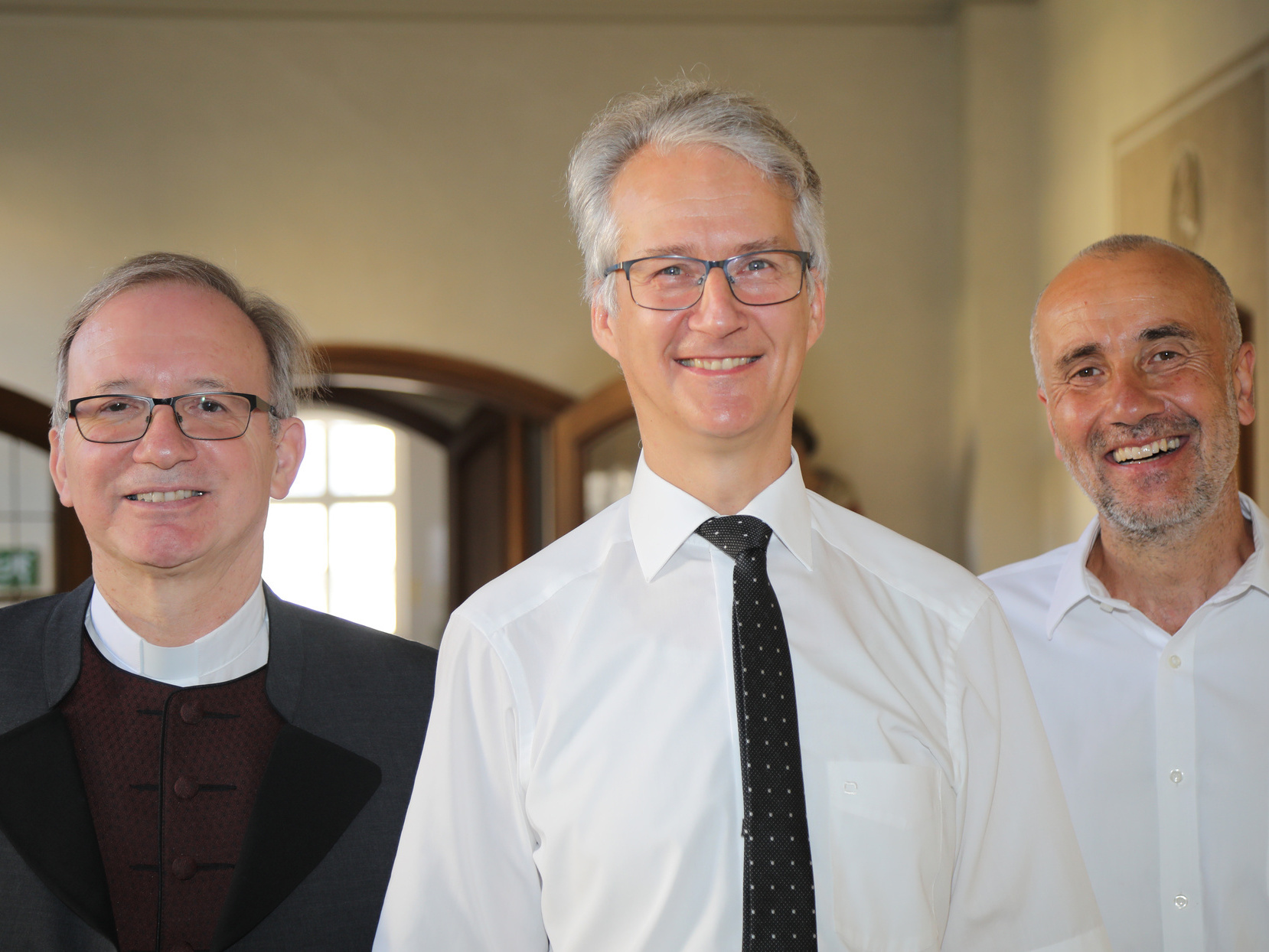 Für die Mitarbeitervertretung (MAV) überbrachte Dr. Martin Schwab Glück- und Segenswünsche. Er würdigte den bisweilen tiefschwarzen Humor, mit dem Faatz die Zusammenarbeit erleichtere. Zudem spreche dieser kritische Dinge an, auch wenn das mintunter unbequem sei. „Nur dann aber kann sich ein System weiterentwickeln.“ Zudem sei die Leidenschaft für das Bistum bei Faatz spürbar, dank derer Gottes Wort weiterhin auf fruchtbaren Boden fallen könne, hob Schwab hervor. „Wesentliche Dinge stehen nicht in meinem Lebenslauf, sondern zwischen den Zeilen“, erklärte der Geehrte. Wer sich seinen dienstlichen Lebenslauf vor Augen halte, könne leicht zu dem irrigen Ergebnis kommen: „Der Mann kann nichts. Immer wieder versetzt worden, immer wieder neue Aufgaben und andere dafür abgegeben, im erlernten Beruf gerade mal dreieinhalb Jahre eingesetzt.“ Er dankte allen Wegbegleitern der zurückliegenden Jahre. „Unterm Strich habe ich weit mehr empfangen als gegeben.“ Aufgaben habe er, Christ, Ehemann, Vater und Diakon dagegen sei er, betonte Faatz weiter. „Was immer ich in meinen Aufgabenfeldern tue, auch, was ich an Leitung wahrnehme, verstehe ich als Dienst.“ Er wolle gern dazu beitragen, dass sich die Gläubigen in den Gemeinden des Bistums mit den Kommunikationsformen der digitalen Gesellschaft vernetzen und dass Seelsorge und Verwaltung durch die Nutzung neuer Technologien ihren Dienst noch besser versehen können.