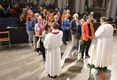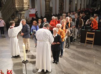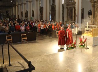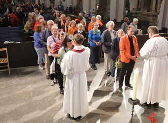 „Ich möchte Sie jetzt zu einer geistlichen Erfahrung einladen“, nahm Weihbischof Reder den Faden auf. Er forderte die Frauen und Männer auf, sich einen Augenblick der Stille zu nehmen, „um in unsere Herzen hineinzuhorchen, was Gott jetzt zu uns spricht. Teilen wir dann, wenn wir wieder in unseren Heimatorten sind, in den Vorstandssitzungen und Mitgliederversammlungen, einander dieses Wort der Hoffnung mit.“ Eine Minute lang herrschte im Dom konzentriertes Schweigen.