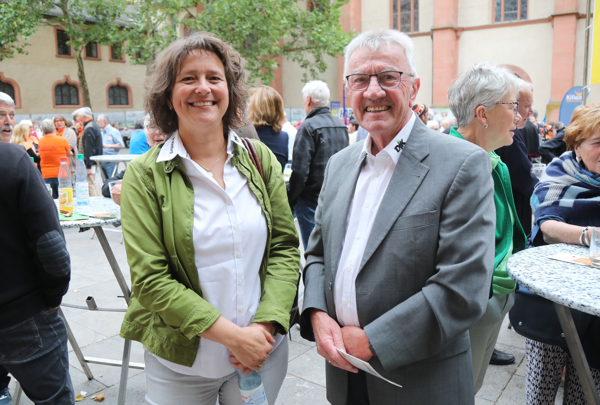 Der Gottesdienst kam bei den Teilnehmerinnen und Teilnehmern sehr gut an. „Sehr schön und kurzweilig“, „Anders als die anderen Wallfahrtsgottesdienste“, „Schön, dass die Verbände so stark eingebunden waren“, war zu hören. Auch Selbstbewusstsein war zu spüren. „Unser Verband steht für Verbundenheit und Zusammenhalt. Das ist das, was vielen jungen Menschen verloren gegangen ist“, sagten beispielsweise Barbara Pfeuffer und Hans Georg Schmidt vom Vorstand der Kolpingsfamilie Ochsenfurt. Man müsse sie von den sozialen Medien wieder in die reale Welt bringen, sagte Schmidt: „Verbände und Vereine können da Schwung reinbringen.“ Gerade in Ochsenfurt gebe es viele Vereine und Angebote für die Jugend, ergänzte Pfeuffer.