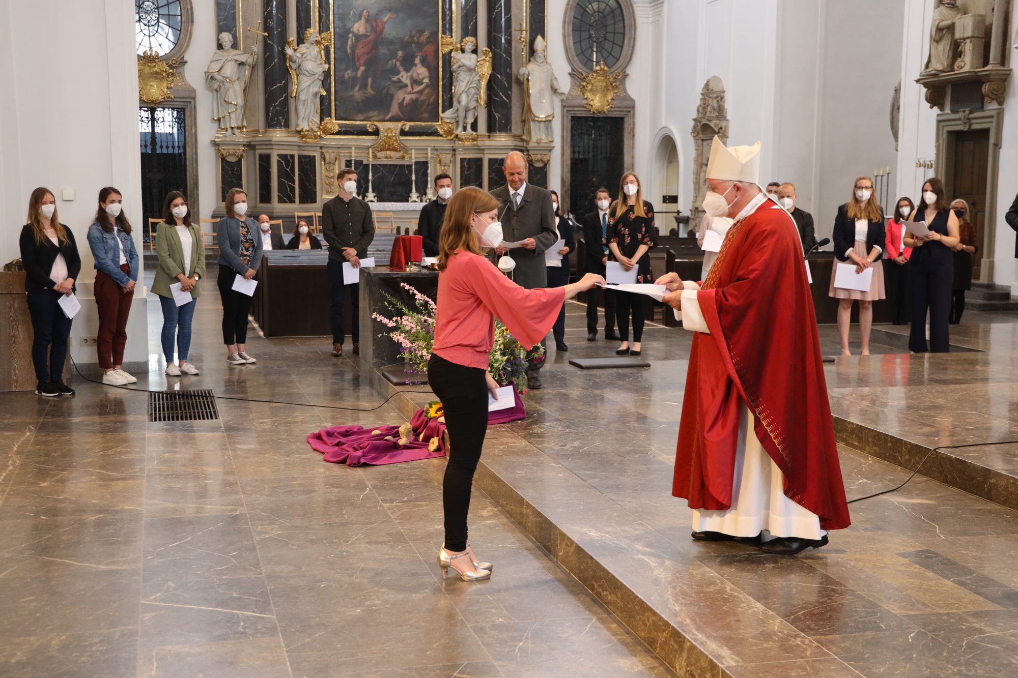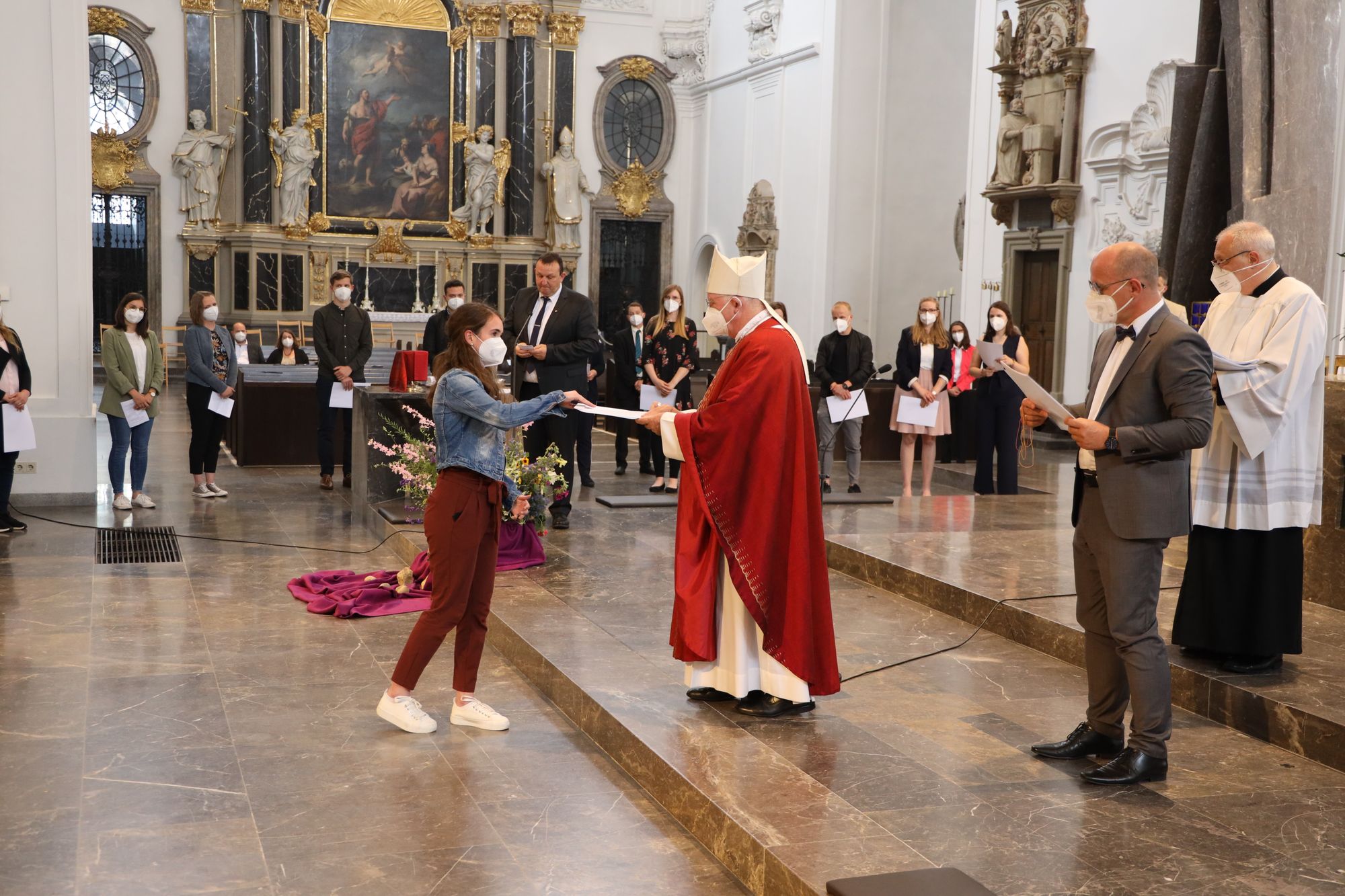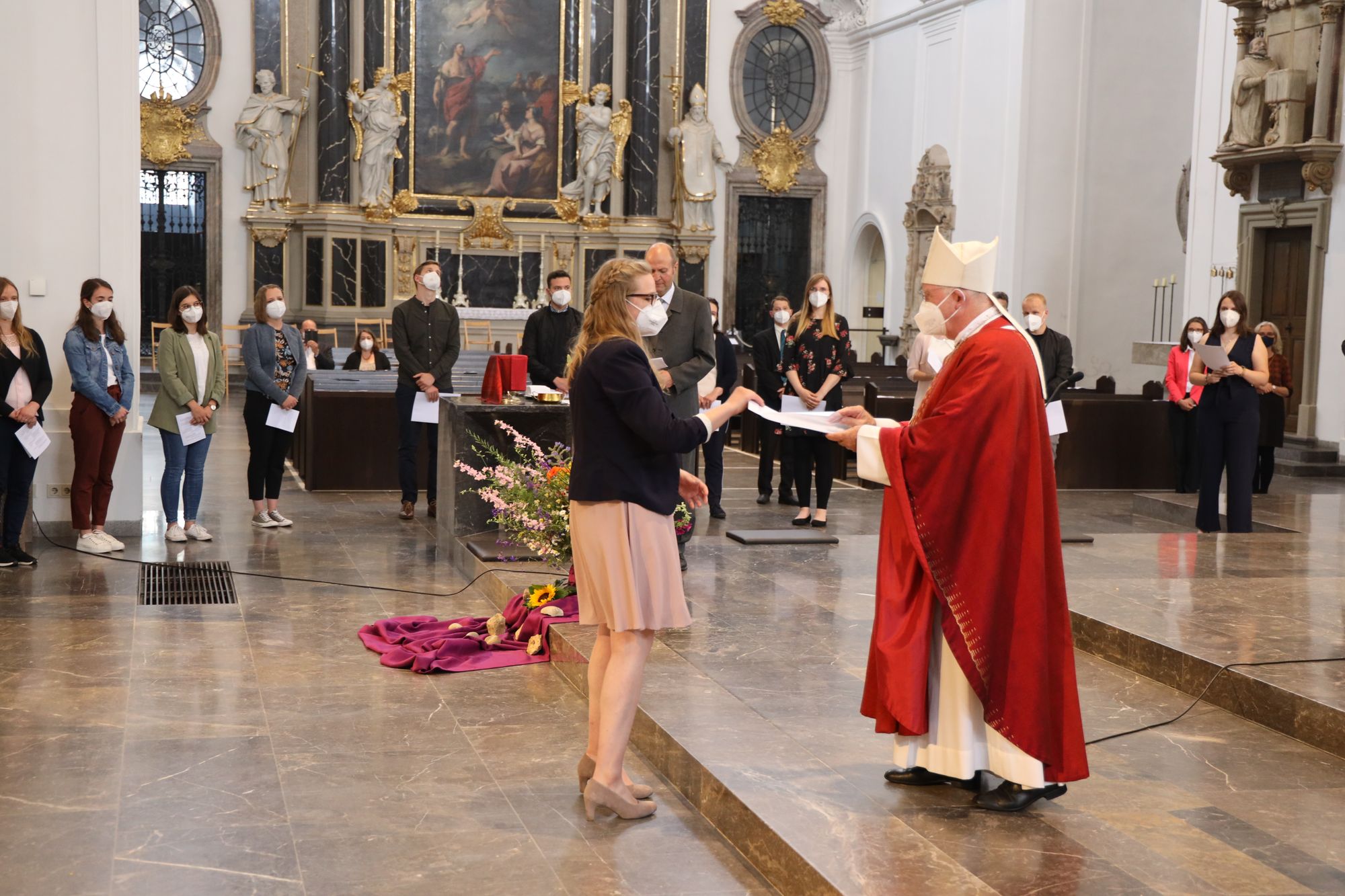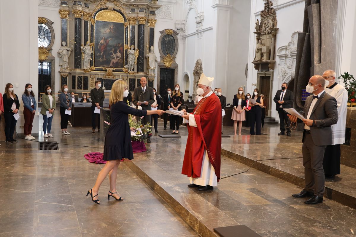 Für das Lehramt an Mittelschulen bekamen die Missio canonica: Miriam Abert aus Haßfurt, Julia Ferdinand aus Schweinfurt, Elena Holzwert aus Bad Neustadt, Julia Meyer aus Gerbrunn, Valerie Paul aus Bergtheim, Bastian Rößner aus Zeil am Main, Philipp Schell aus Würzburg und David Seifried aus Aschaffenburg.