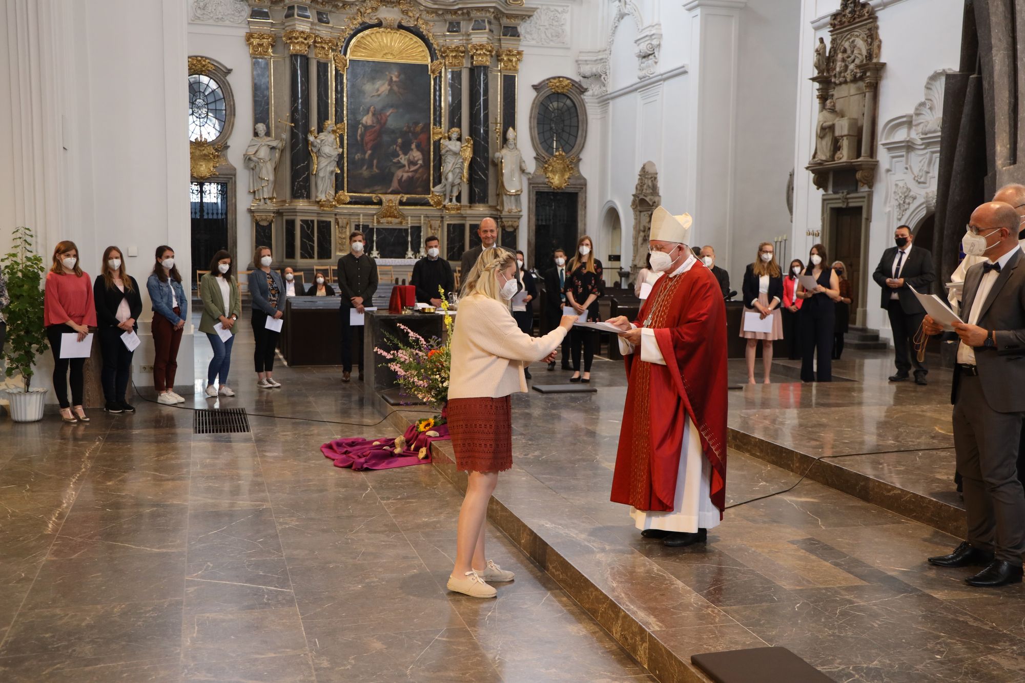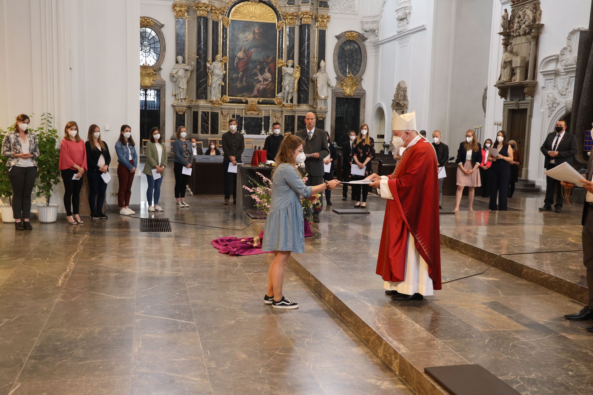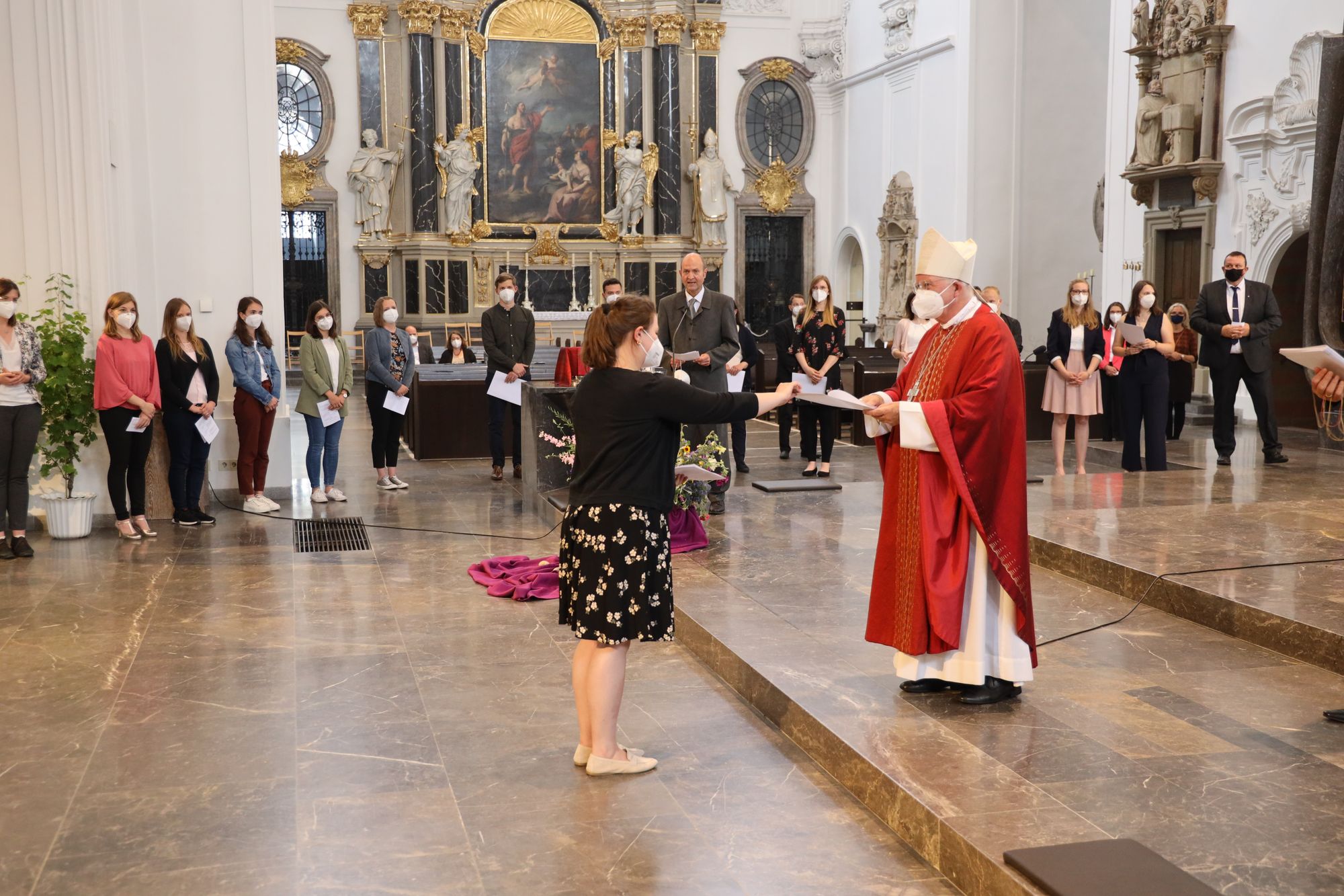 Für das Lehramt an Mittelschulen bekamen die Missio canonica: Miriam Abert aus Haßfurt, Julia Ferdinand aus Schweinfurt, Elena Holzwert aus Bad Neustadt, Julia Meyer aus Gerbrunn, Valerie Paul aus Bergtheim, Bastian Rößner aus Zeil am Main, Philipp Schell aus Würzburg und David Seifried aus Aschaffenburg.